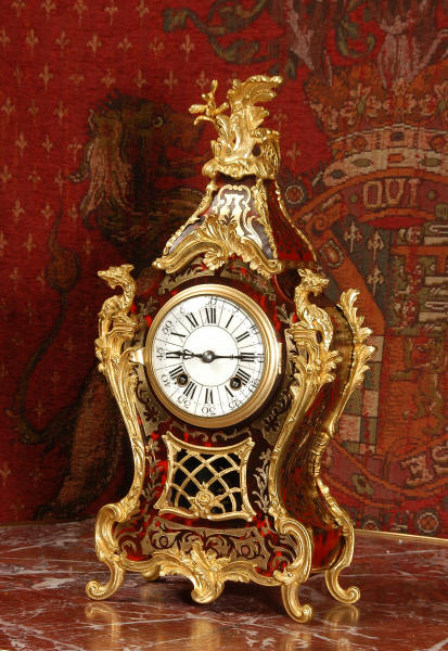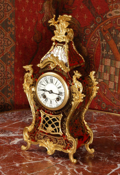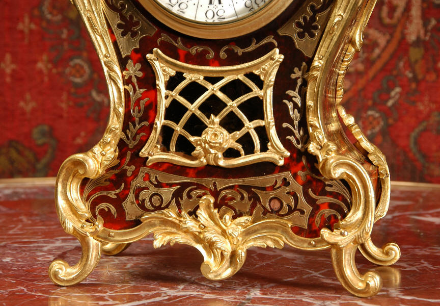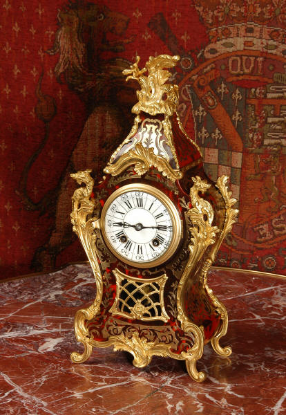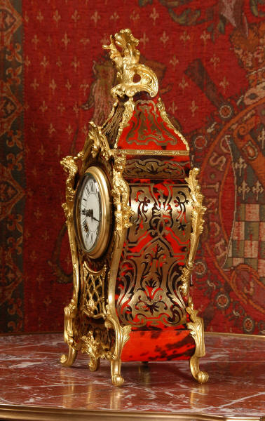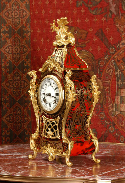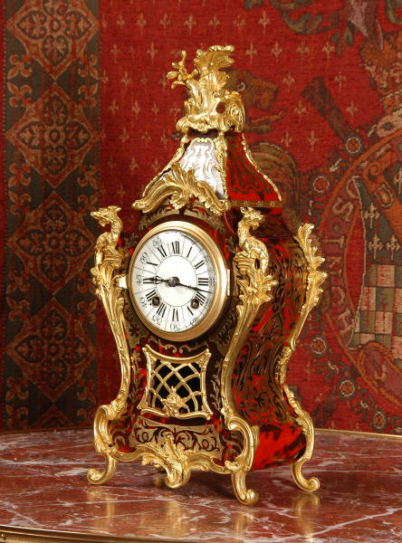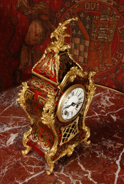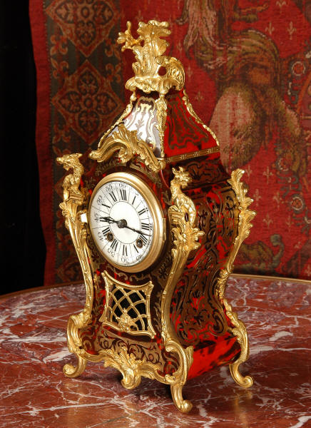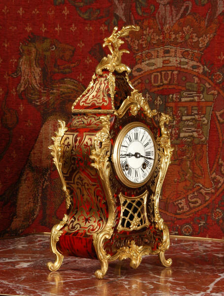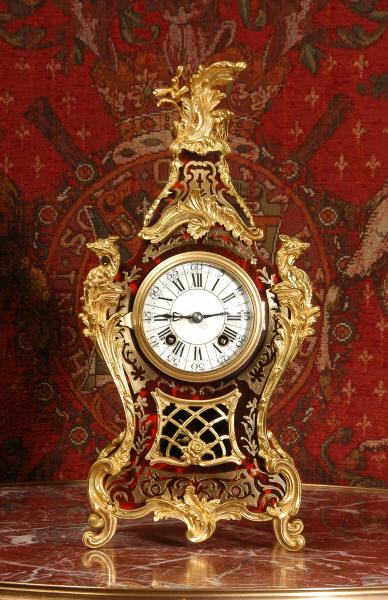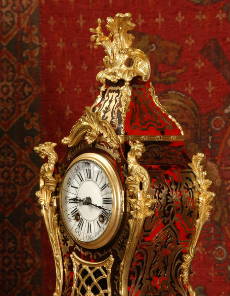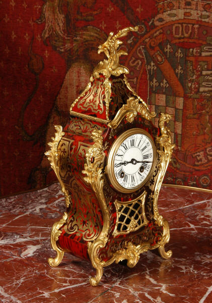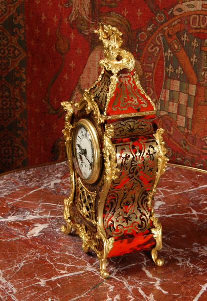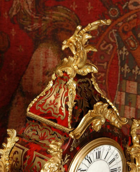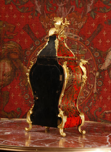 work in the Rococo style. Ornate Brass is delicately inlaid into the red veneer