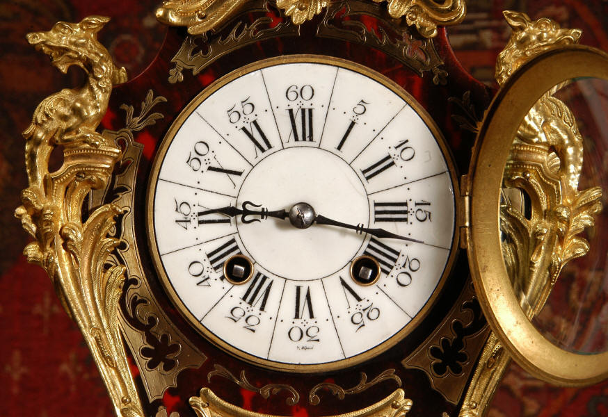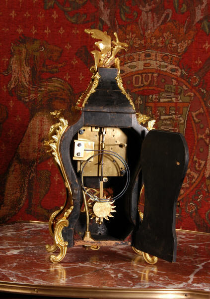 our clockmaker. Ormolu pendulum is original. It runs for 8 days on one