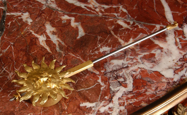 pendulum to be seen swinging within the case. It is the original ormolu sunburst