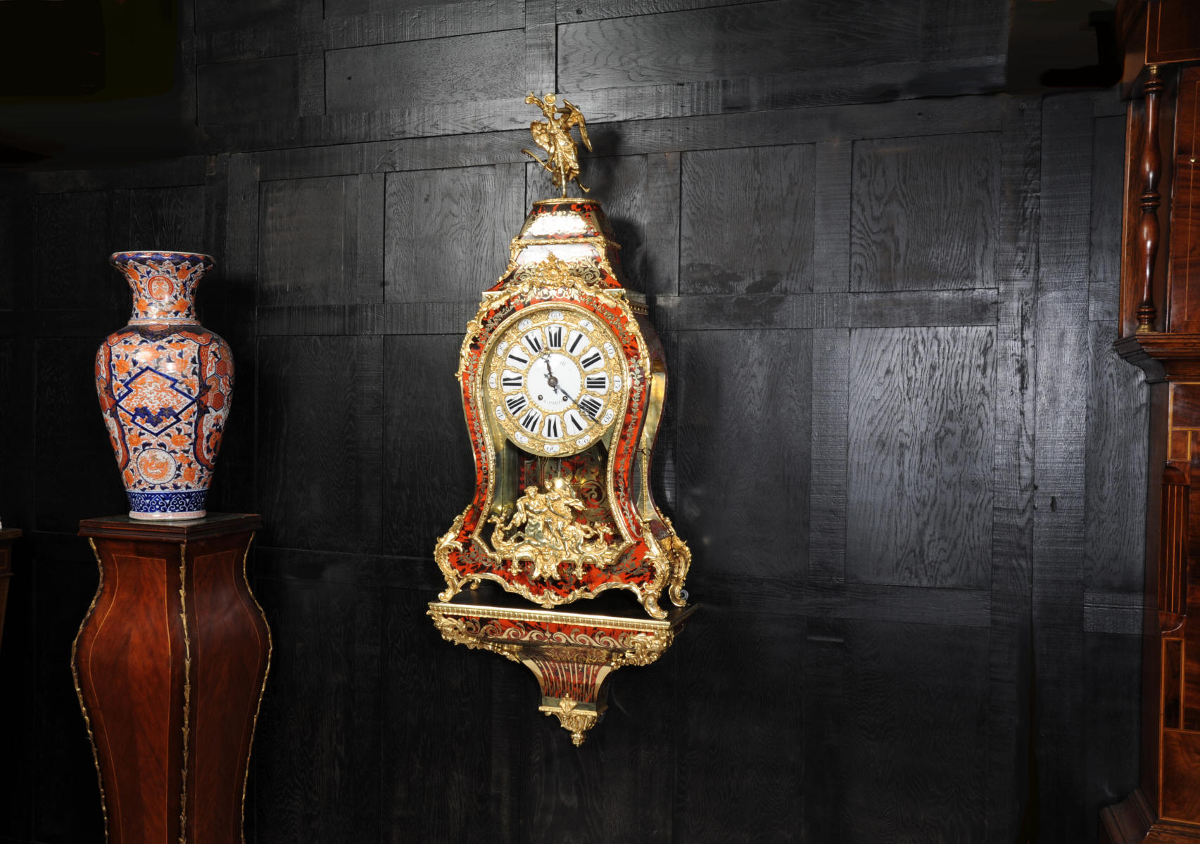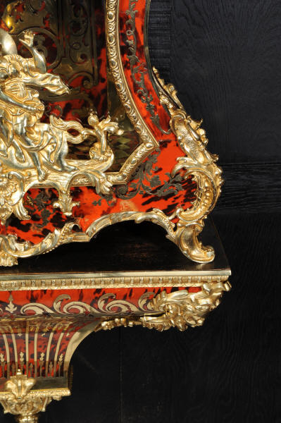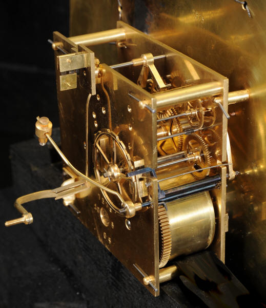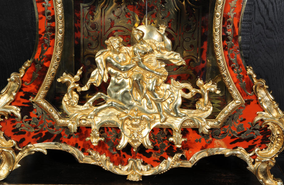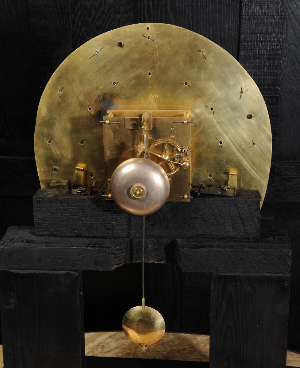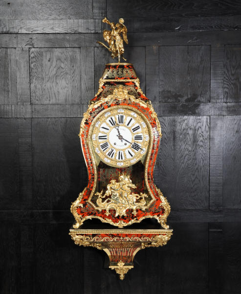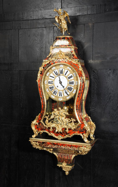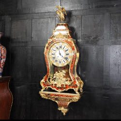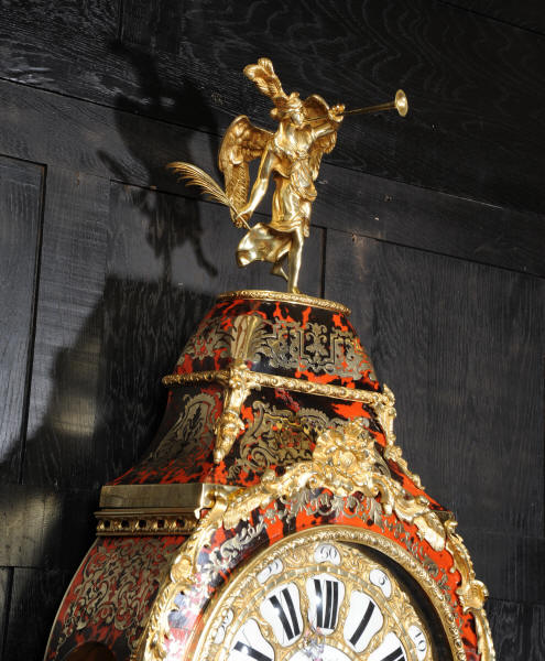 The very large dial is ormolu mounted with 24 individual enamel cartouches for the hours and minutes and one to the centre which is signed for the Paris retailer, Lenoir. It is fitted with the original beautifully hand cut and blued steel hands.. The French movement is by A. D. Mougin and is of the highest quality. It is the very large square plated version of the Pendule de Paris movement. It is in excellent clean and running condition having been fully overhauled by our clockmaker. The large pendulum is original and the clock is complete with original winding key and front door key. It runs for 8 days on one wind and strikes the hours and halves on a large bell. Click the video clip below to hear the bell and watch the clock running! Condition of the case is excellent, the shell veneer is excellent with only very minor losses. Brass inlay is also excellent, very slight losses and only some very very slight lifting in places. Ormolu is also excellent, clean, bright. Dial is also excellent with just some slight chipping to the '60', restoration to the 5 and 10 and some light hairlines to the centre cartouche. The front door lock is fully working with original key.