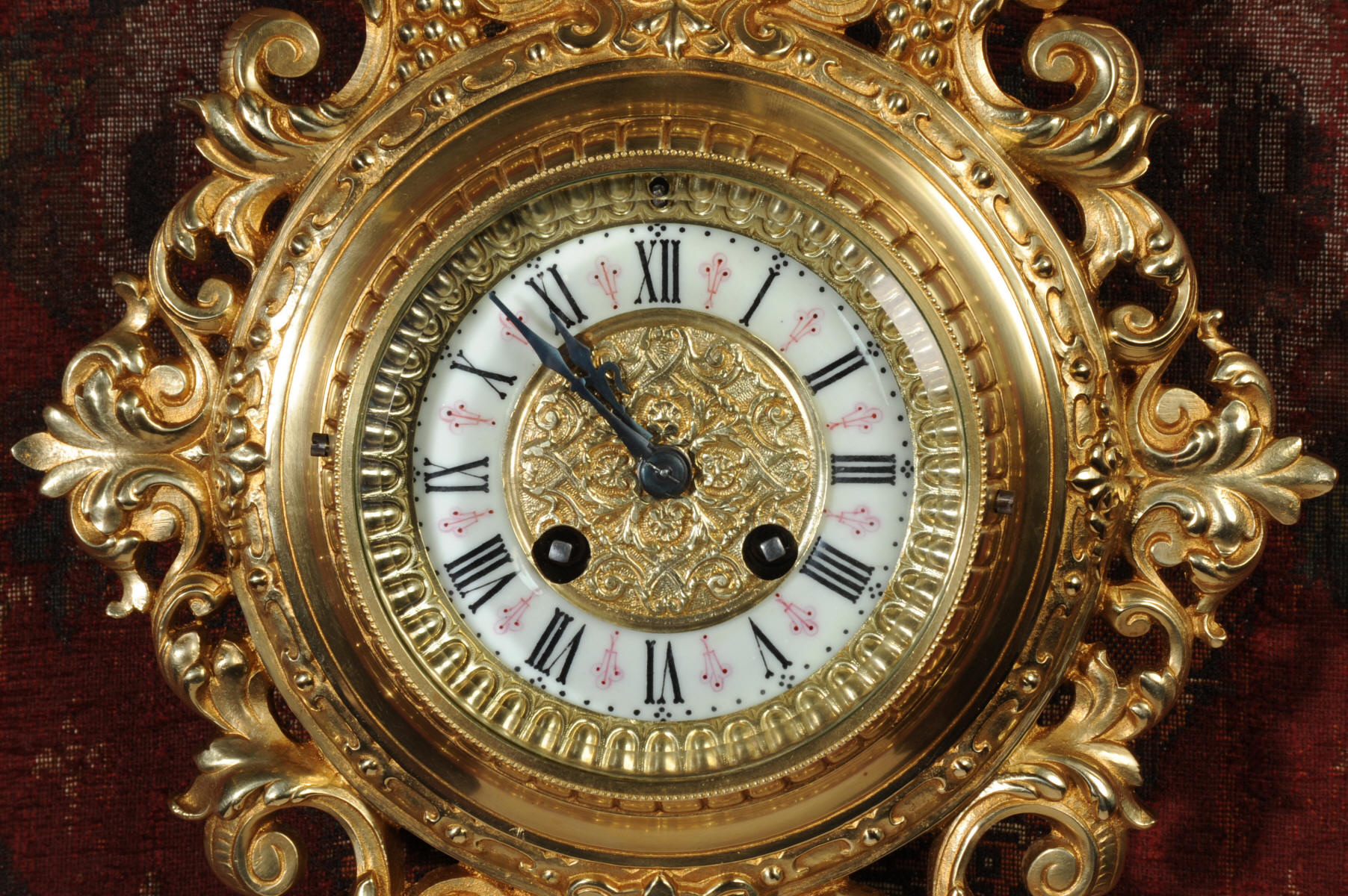 The French movement is by Japy Freres and is of high quality. The makers 'Medaille D'Honneur' mark is on the movement backplate. It is in excellent clean and running condition having been fully overhauled by our clockmaker. Pendulum is original. It runs for 8 days and strikes the hours and halves on a bell. Click the video clip below to hear the bell and watch the clock running!