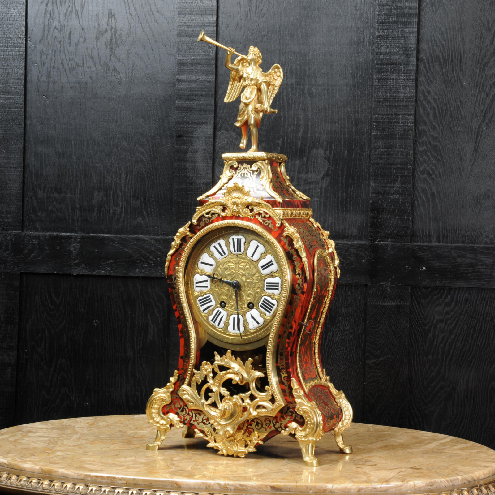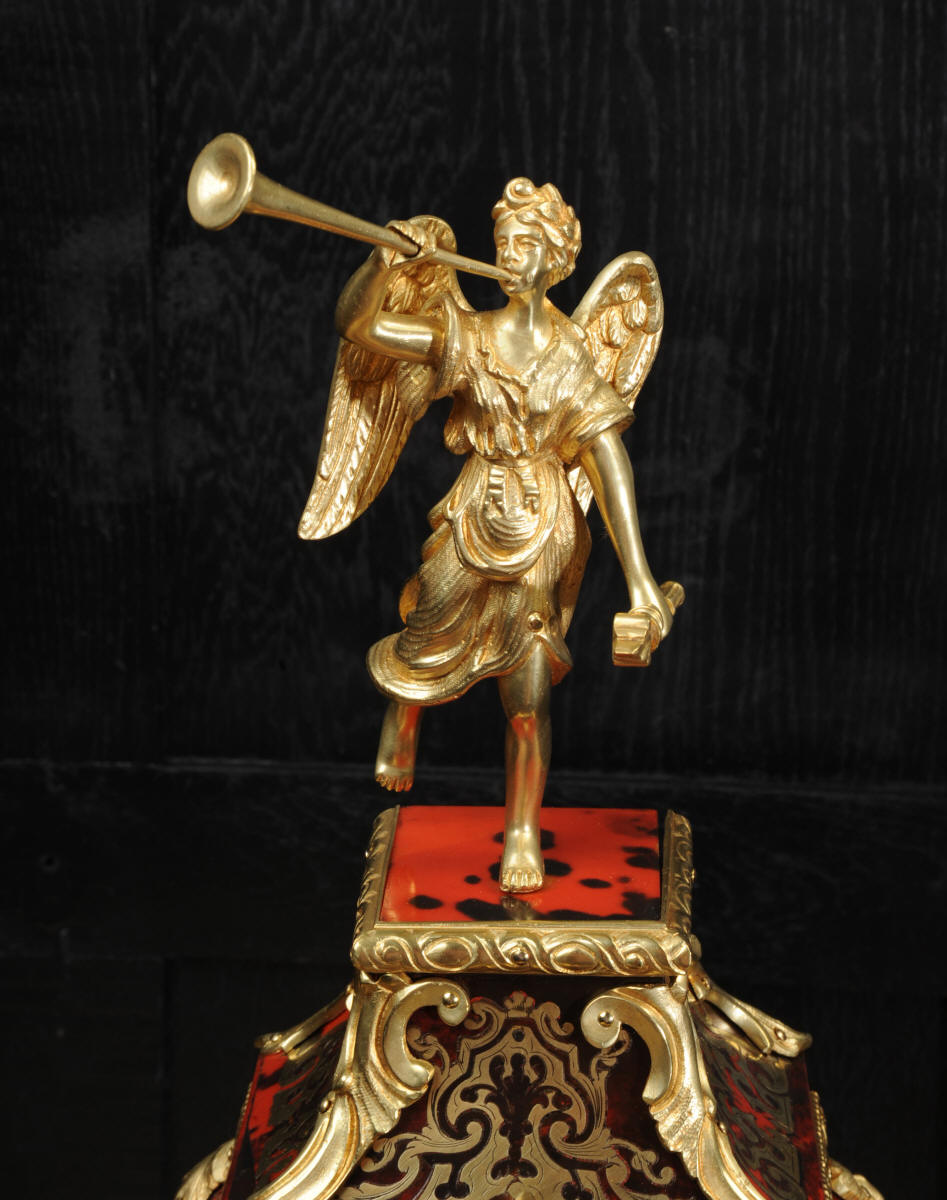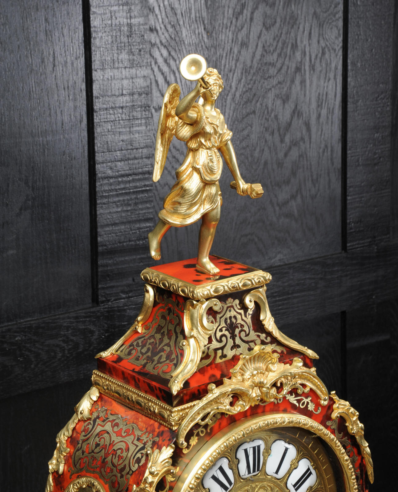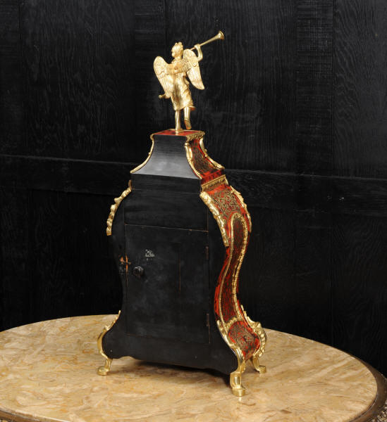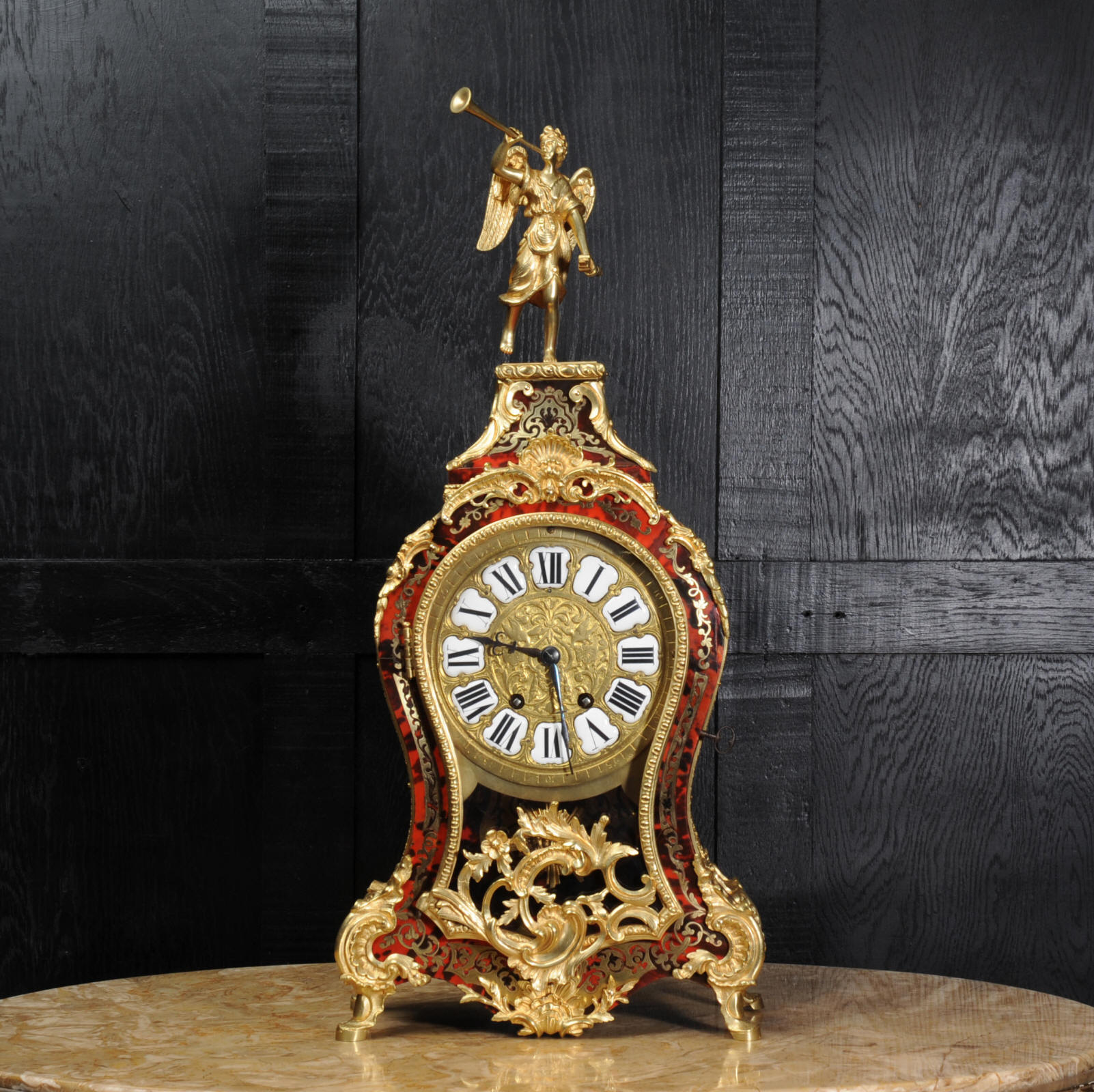 The dial is also gilt bronze with 12 individual enamel cartouches and blued steel hands. The French movement is by H & F of Paris and is of the highest quality. It is the large square plated version of the Pendule de Paris movement. It is in excellent clean and running condition having been fully overhauled by our clockmaker. The large sunburst pendulum is original and the clock is complete with original front door key. It runs for 8 days on one wind and strikes the hours and halves on a large bell. Click the video clip below to hear the bell and watch the clock running! Condition of the case is excellent, the veneer is excellent with only very minor losses. Brass inlay is also excellent, very slight losses and only some very very slight lifting in places. Ormolu is also excellent, clean and bright. Dial is also excellent with just some very slight nibbles to the cartouches. The front door lock is fully working with original key.