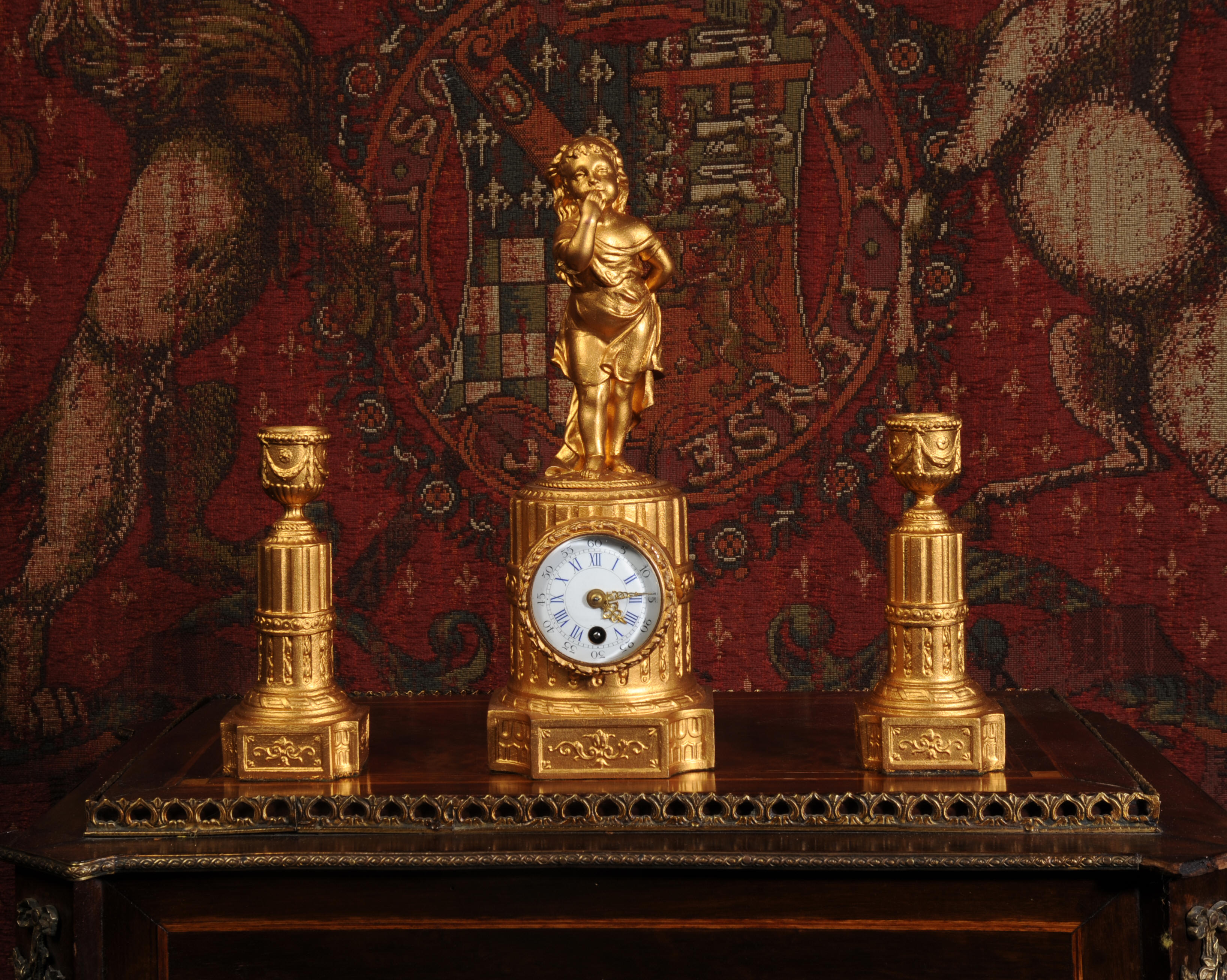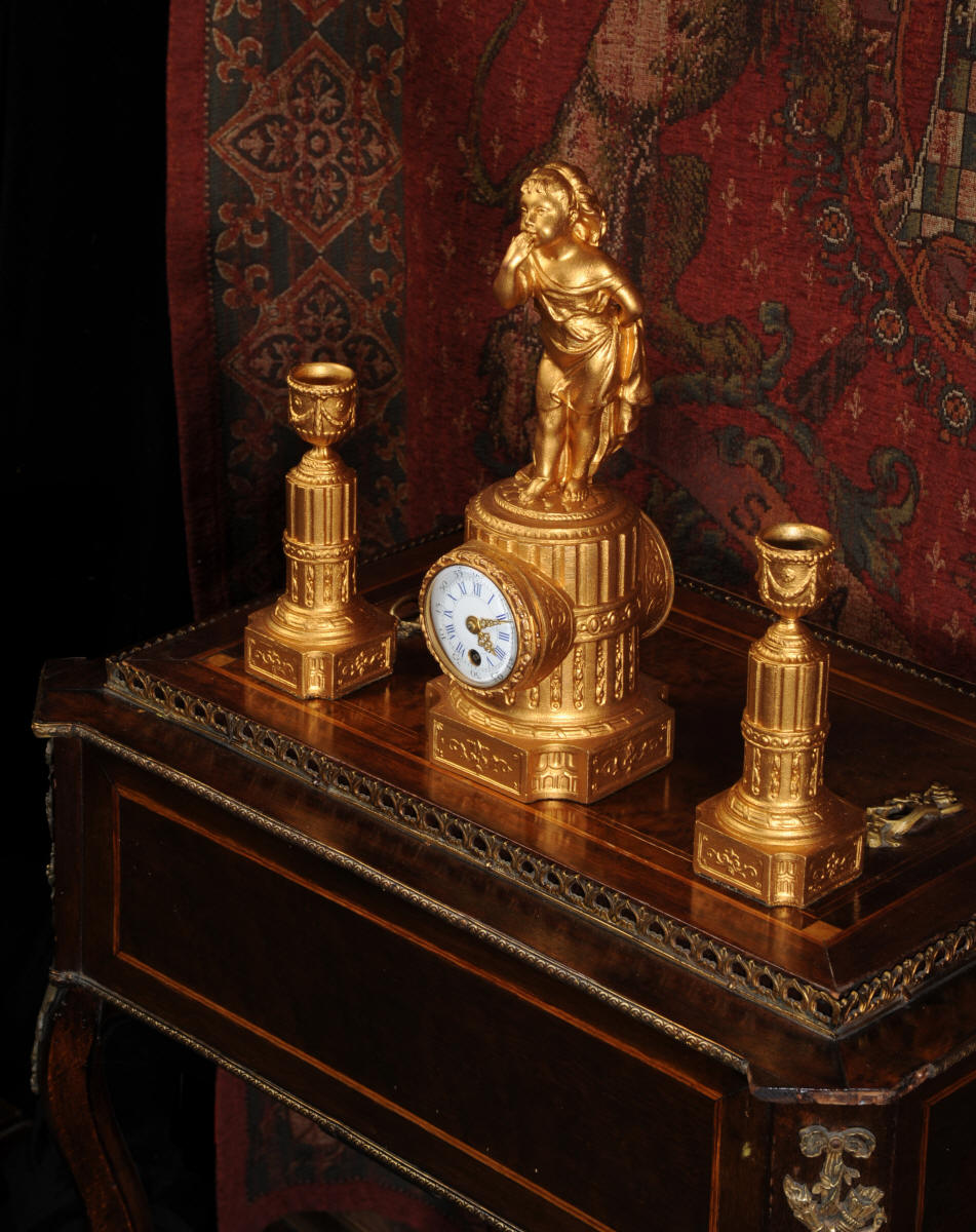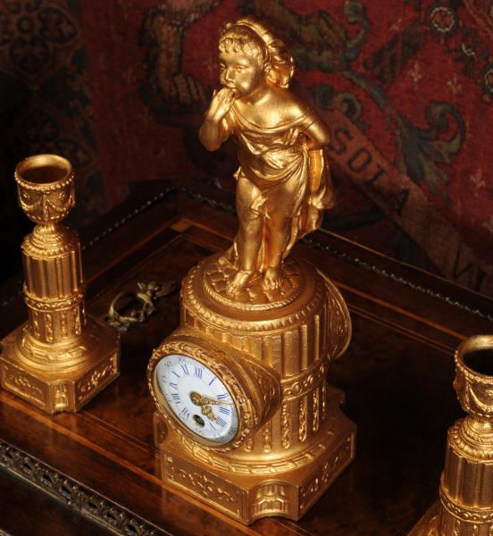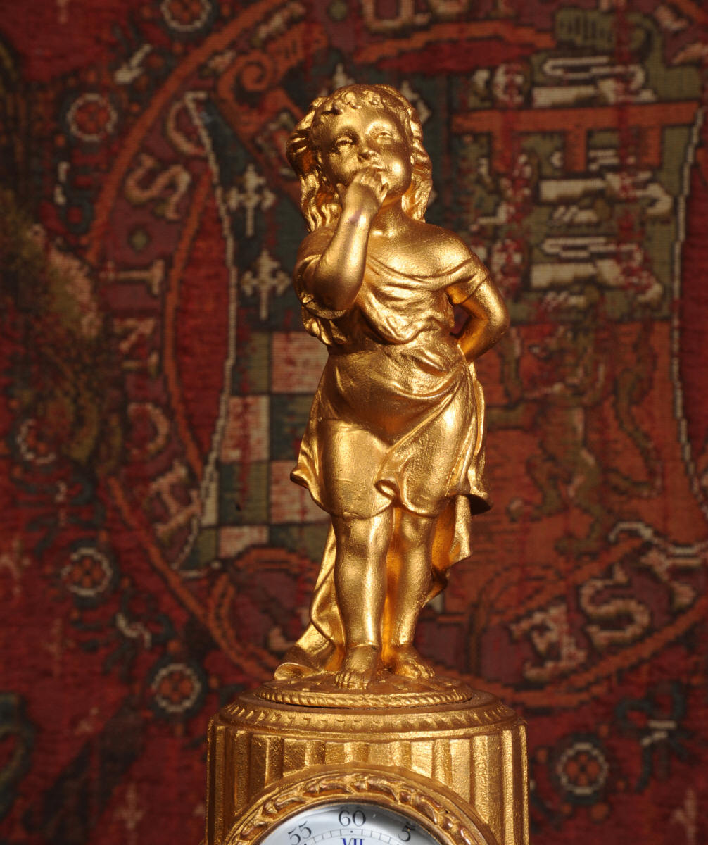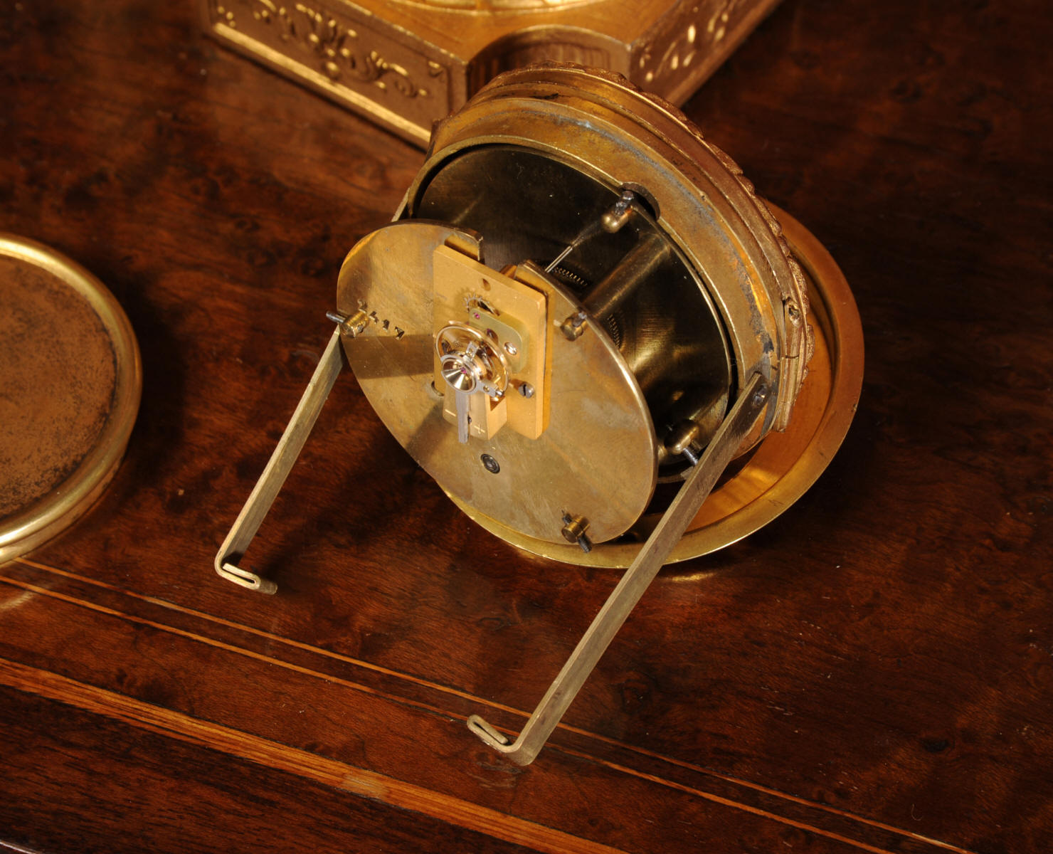The tiny French movement is of good quality and is in excellent clean and running condition having been fully overhauled by our clockmaker. It runs for 8 days and is has a platform escapement, therefore requires no setting up. Click the video clip below to hear and watch the clock running!