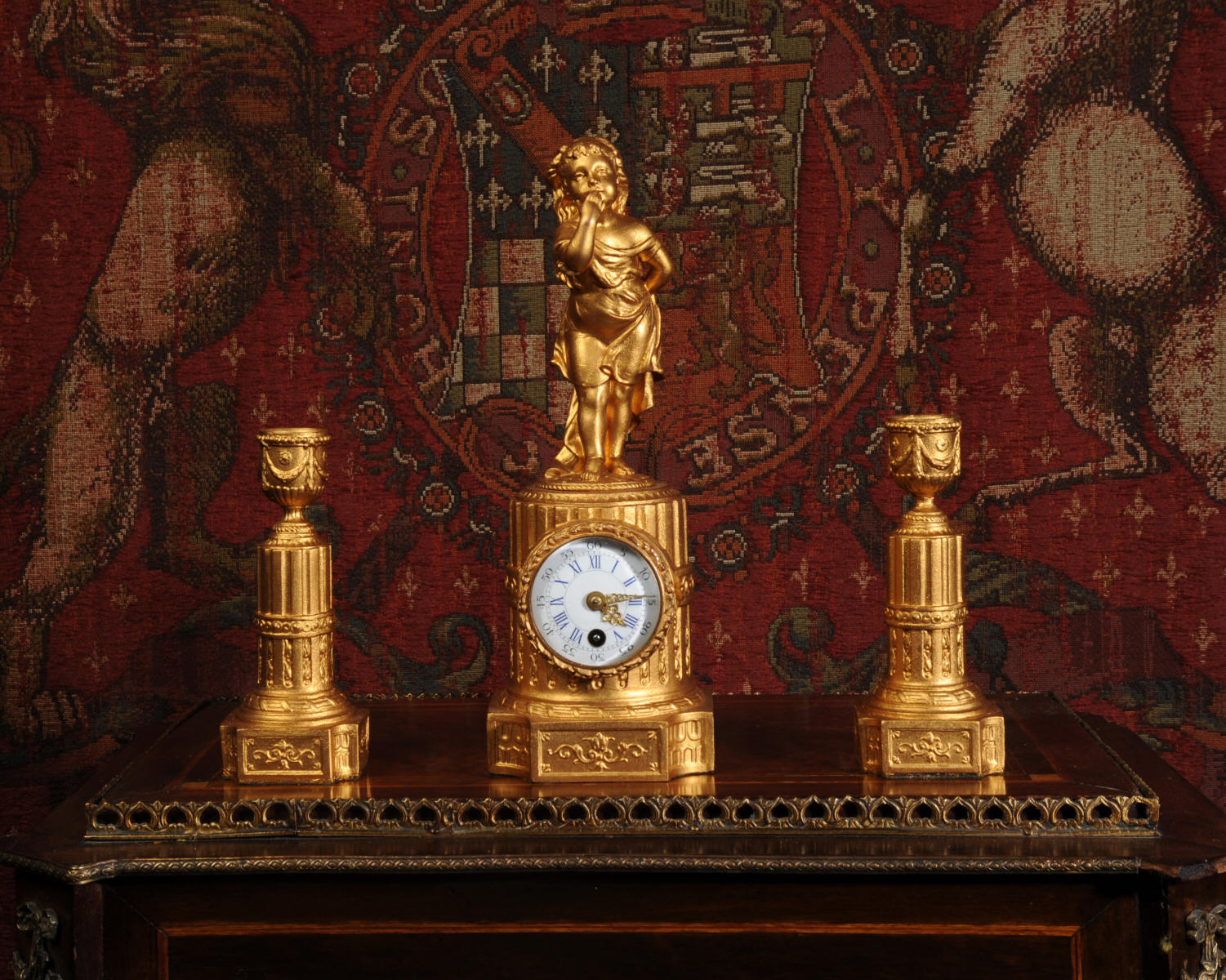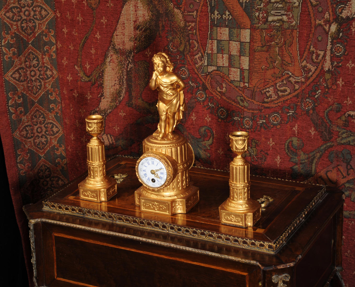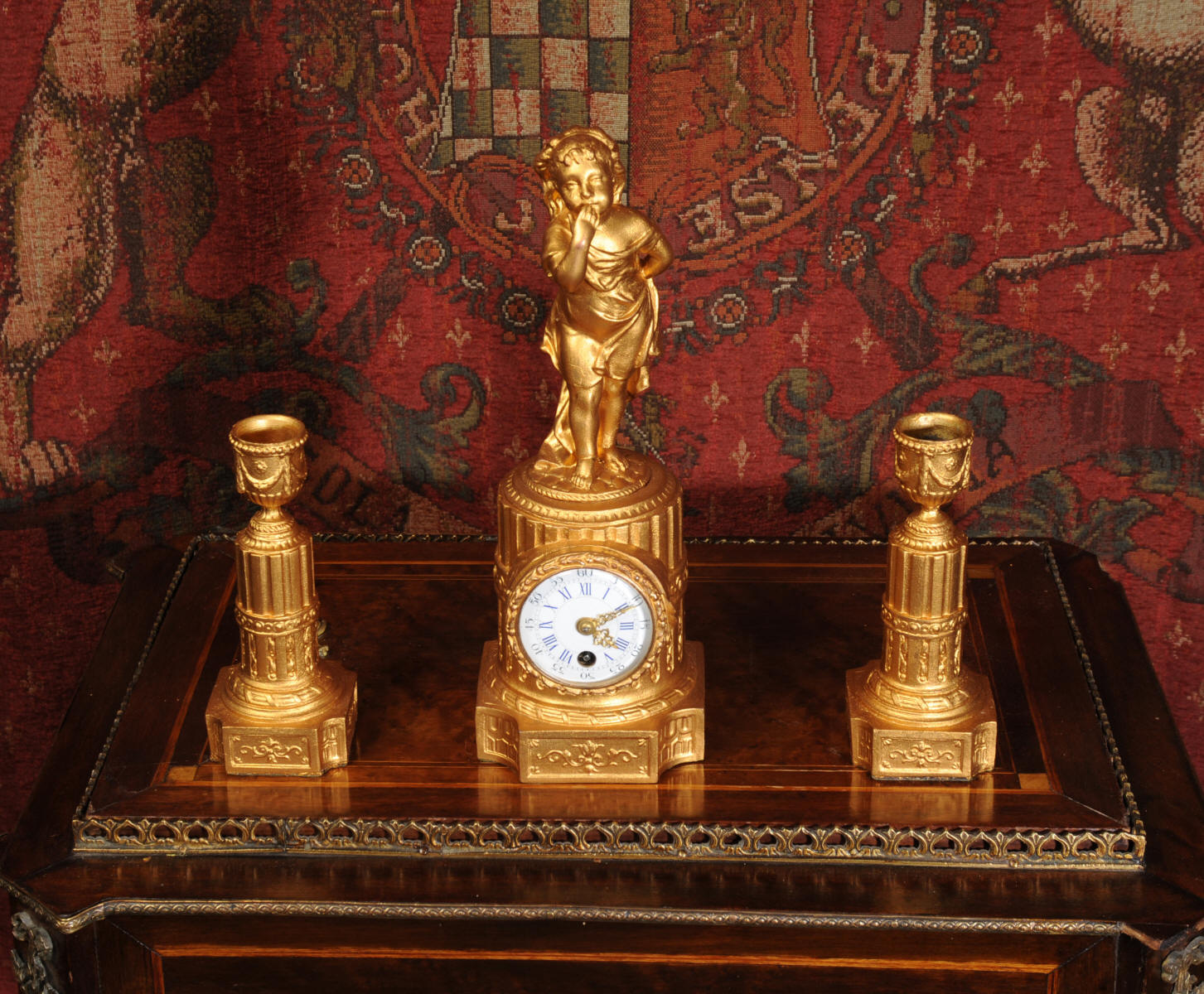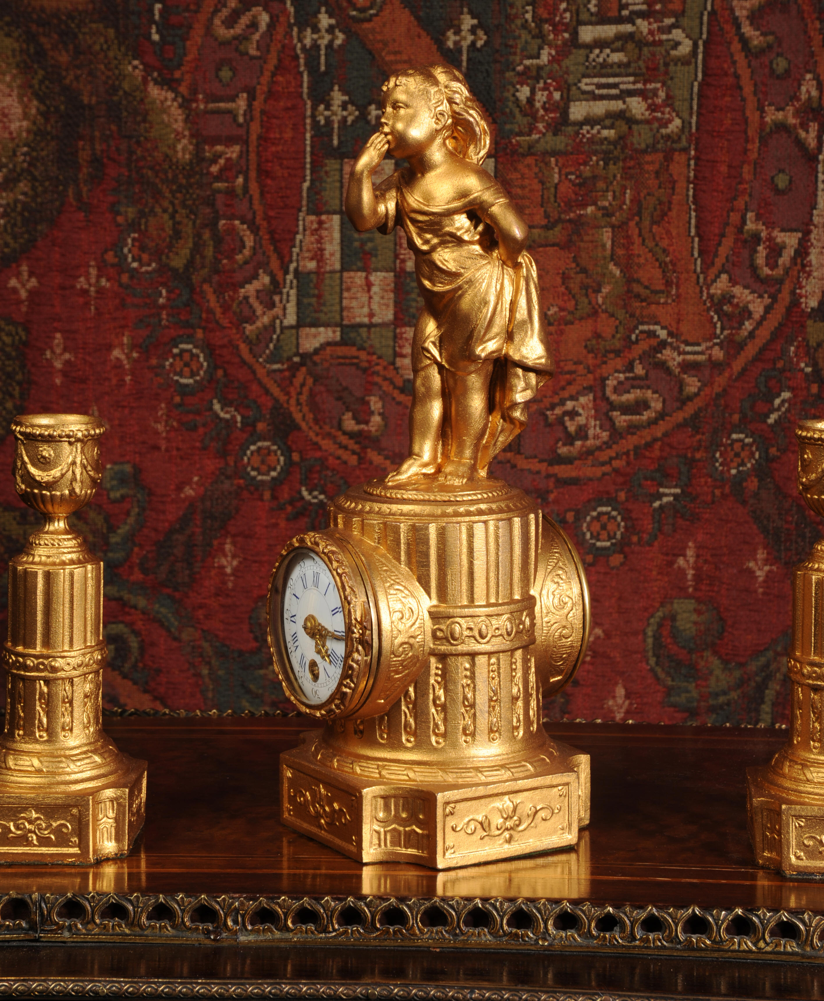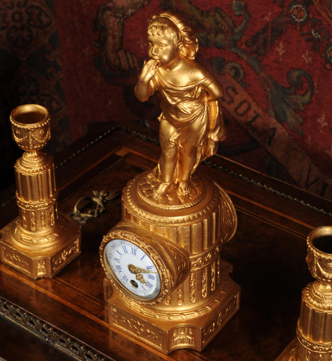 The tiny French movement is of good quality and is in excellent clean and running condition having been fully overhauled by our clockmaker. It runs for 8 days and is has a platform escapement, therefore requires no setting up. Click the video clip below to hear and watch the clock running!