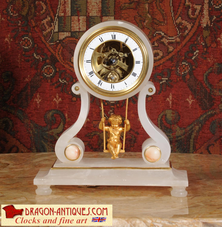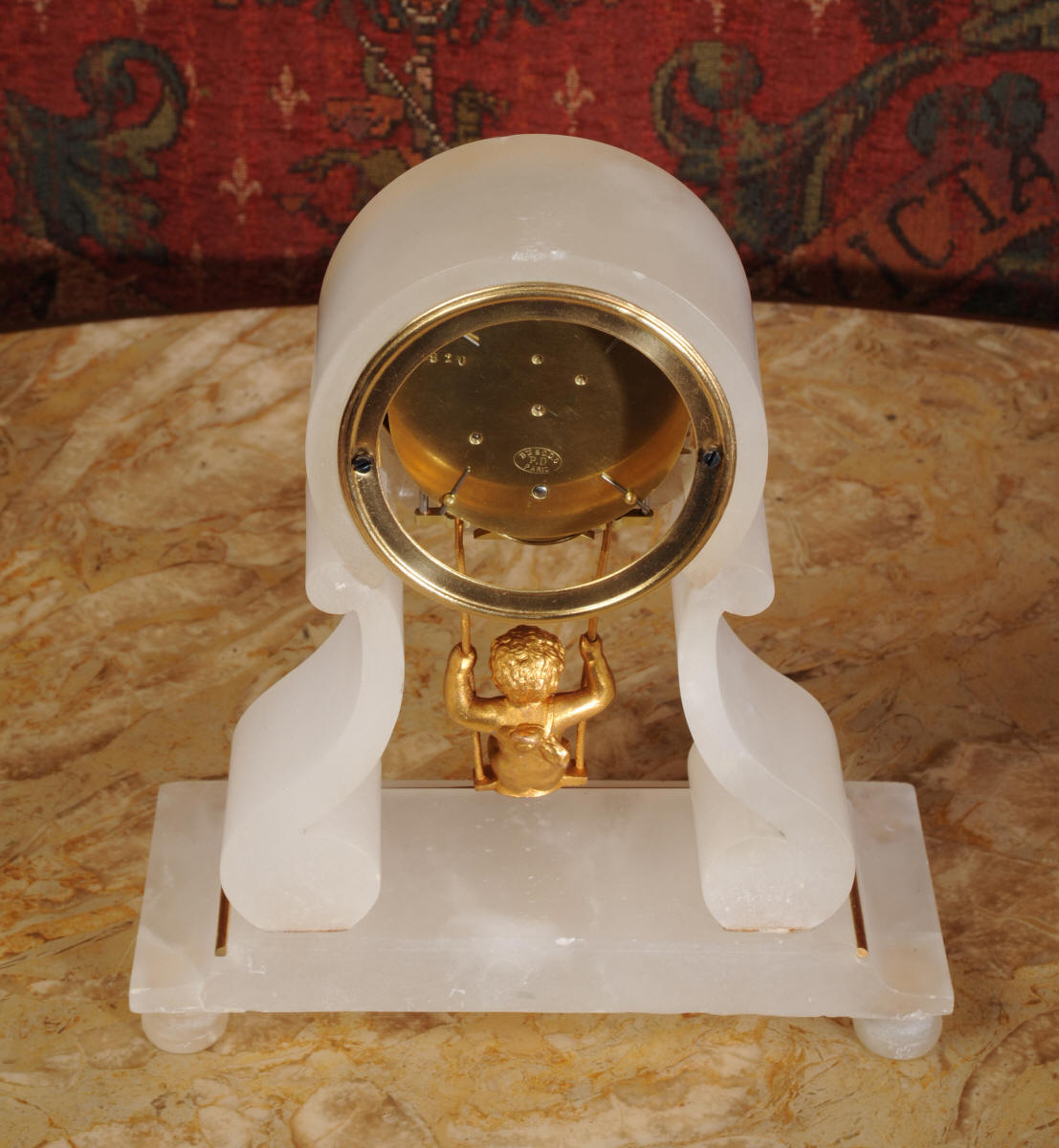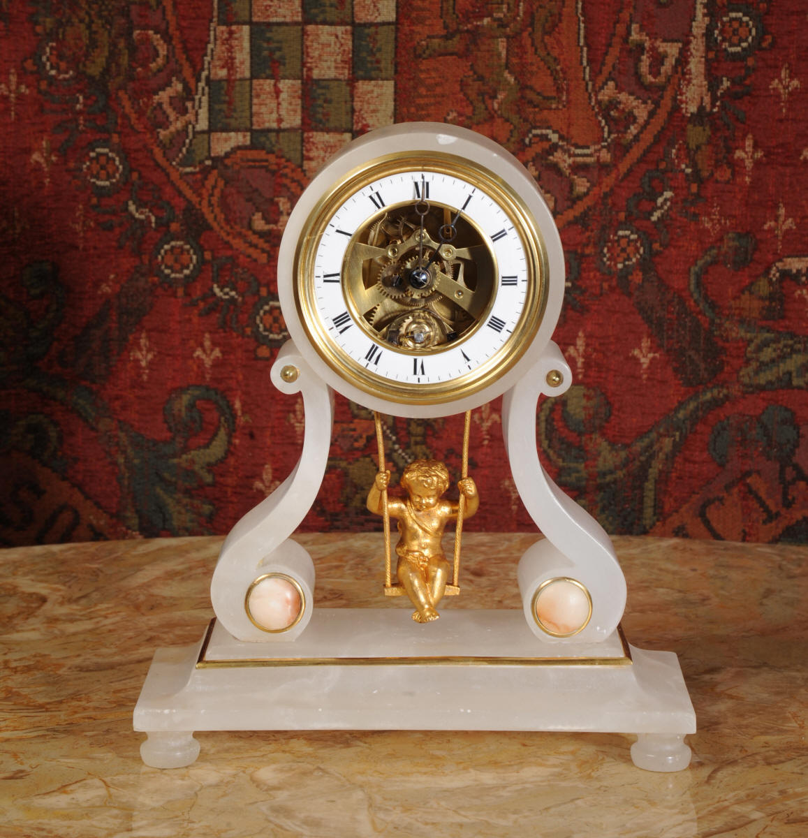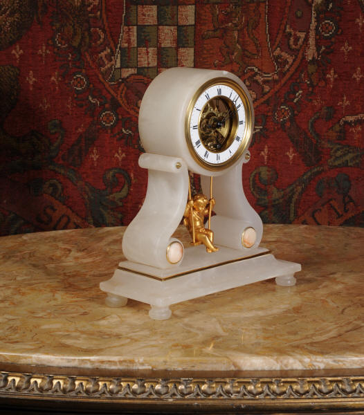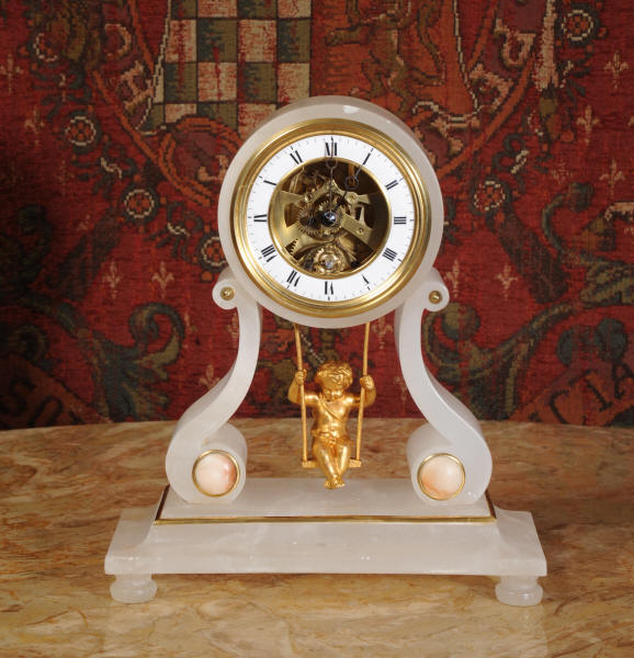 Cherub On A Swing Boudoir Clock with visible escapement