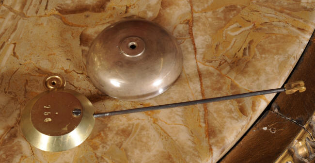 The French movement is of high quality and is in excellent clean and running condition having been fully overhauled by our clockmaker. Pendulum is an old replacement. It runs for 8 days and strikes the hours and halves on a bell. Click the video clip below to hear the bell and watch the clock running!