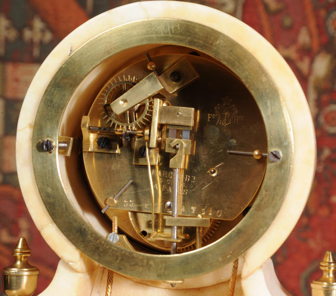 The French movement is by Farcot and is of lovely quality. We have fully overhauled it and tested it to ensure proper running. It runs for 8 days on one wind. Click the video clip below to watch the clock running!