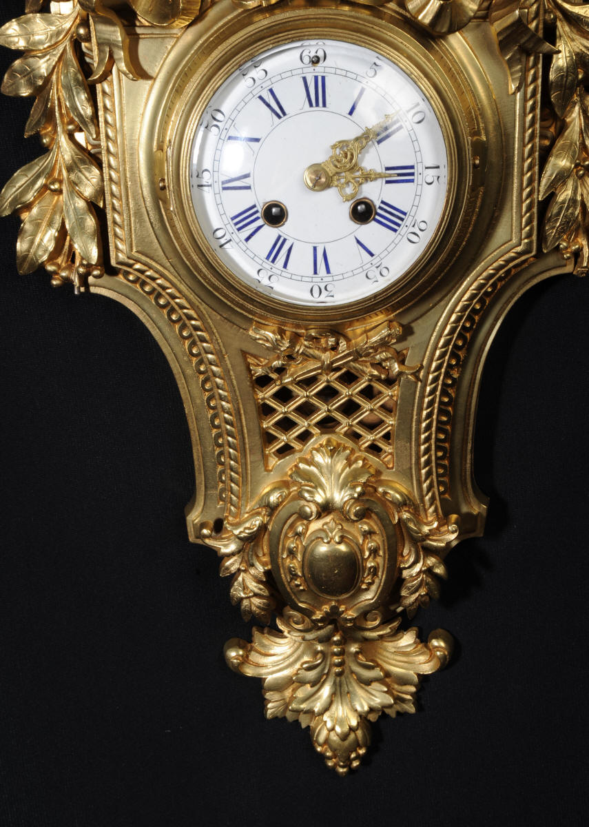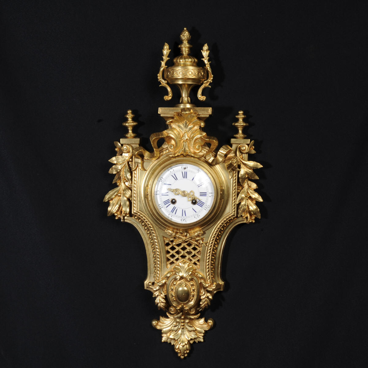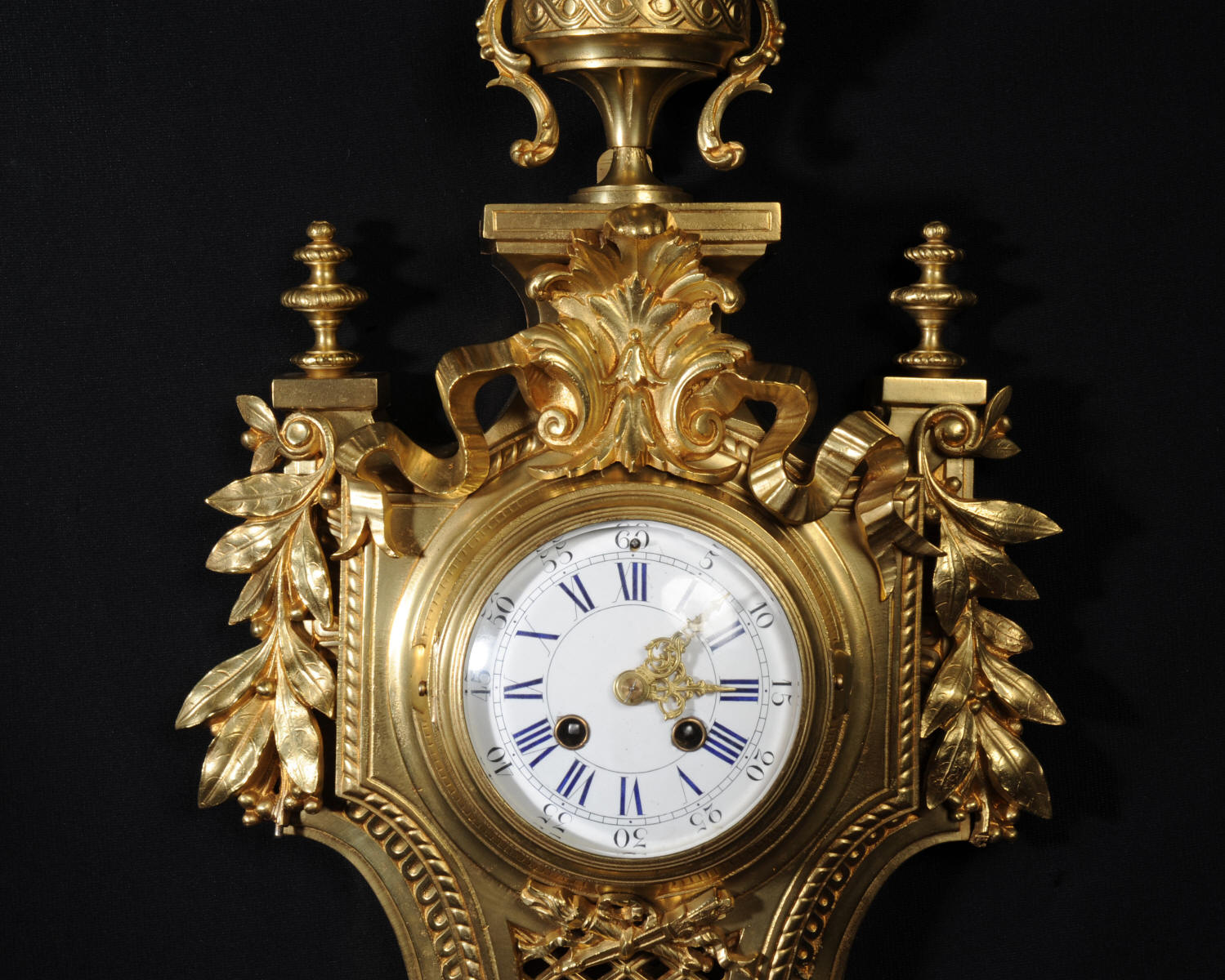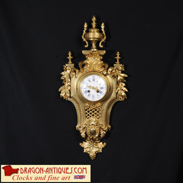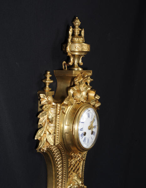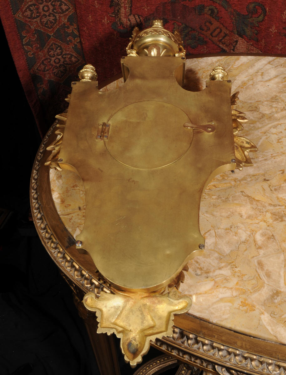 The large dial is enamel on copper, lettered in blue with separate minute and hour rings. The French movement is by Japy Freres and is of high quality and the Japy Freres mark is on the movement backplate. It is the more unusual Japy Freres design with pin-pallet escapement, rack strike and large detachable barrels within a split, shaped backplate. It is in excellent clean and running condition having been fully overhauled by our clockmaker. Pendulum is a replacement. It runs for 8 days and strikes the hours and halves on a bell. Click the video clip below to hear the bell and watch the clock running! Condition of the case is excellent beautifully clean and bright with hardly any wear or discolouration and there are no losses. The dial is also in good condition, a slight chip near the '30' that is barely visible with the bezel closed. The edge of the brass dial plate has been repaired / altered at some time but this is hardly noticeable. This is a stunning wall clock to grace your home!