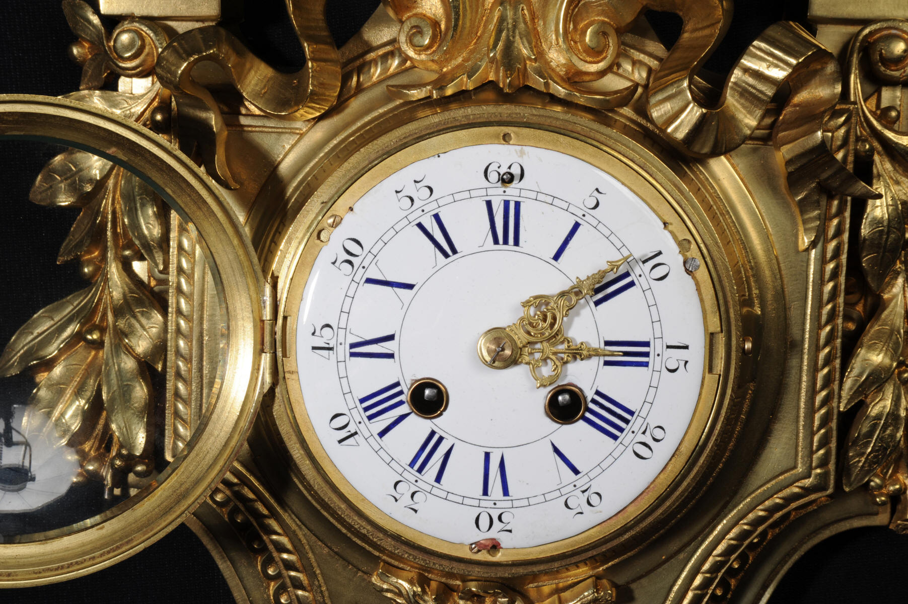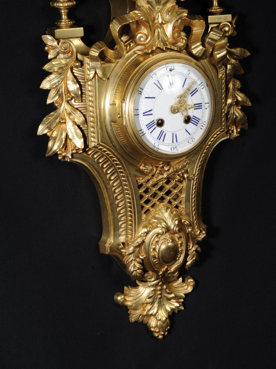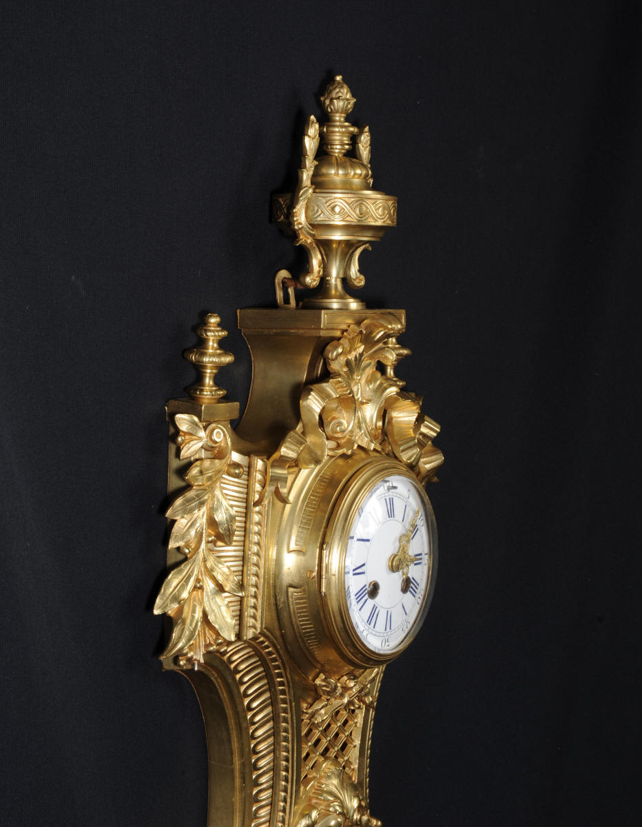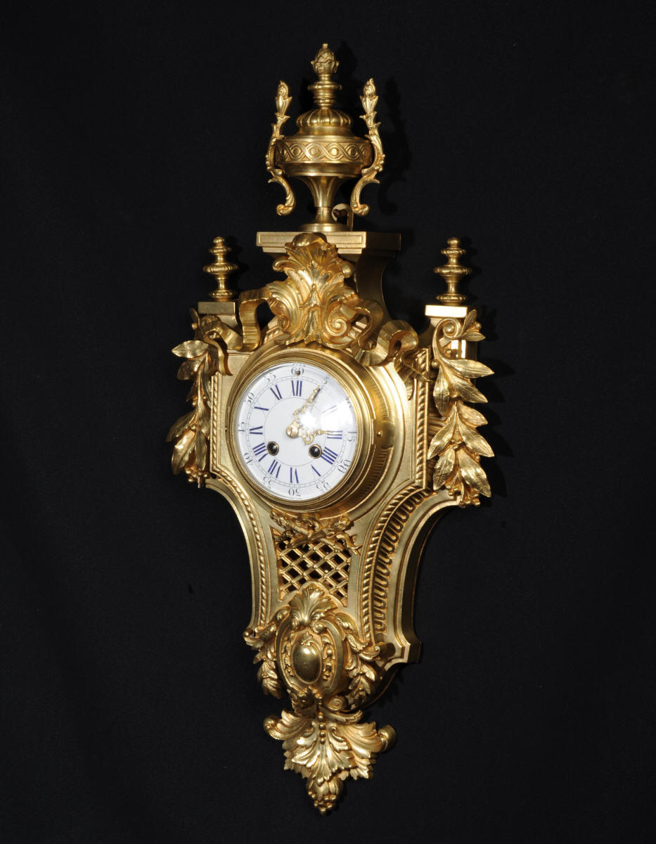 The large dial is enamel on copper, lettered in blue with separate minute and hour rings. The French movement is by Japy Freres and is of high quality and the Japy Freres mark is on the movement backplate. It is the more unusual Japy Freres design with pin-pallet escapement, rack strike and large detachable barrels within a split, shaped backplate. It is in excellent clean and running condition having been fully overhauled by our clockmaker. Pendulum is a replacement. It runs for 8 days and strikes the hours and halves on a bell. Click the video clip below to hear the bell and watch the clock running! Condition of the case is excellent beautifully clean and bright with hardly any wear or discolouration and there are no losses. The dial is also in good condition, a slight chip near the '30' that is barely visible with the bezel closed. The edge of the brass dial plate has been repaired / altered at some time but this is hardly noticeable. This is a stunning wall clock to grace your home!