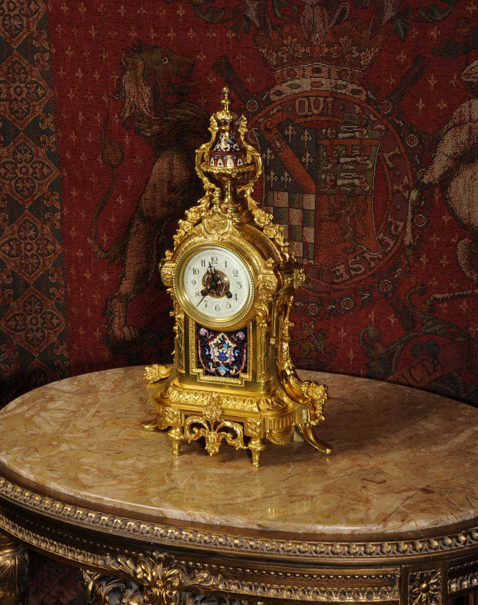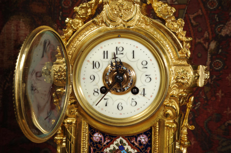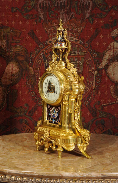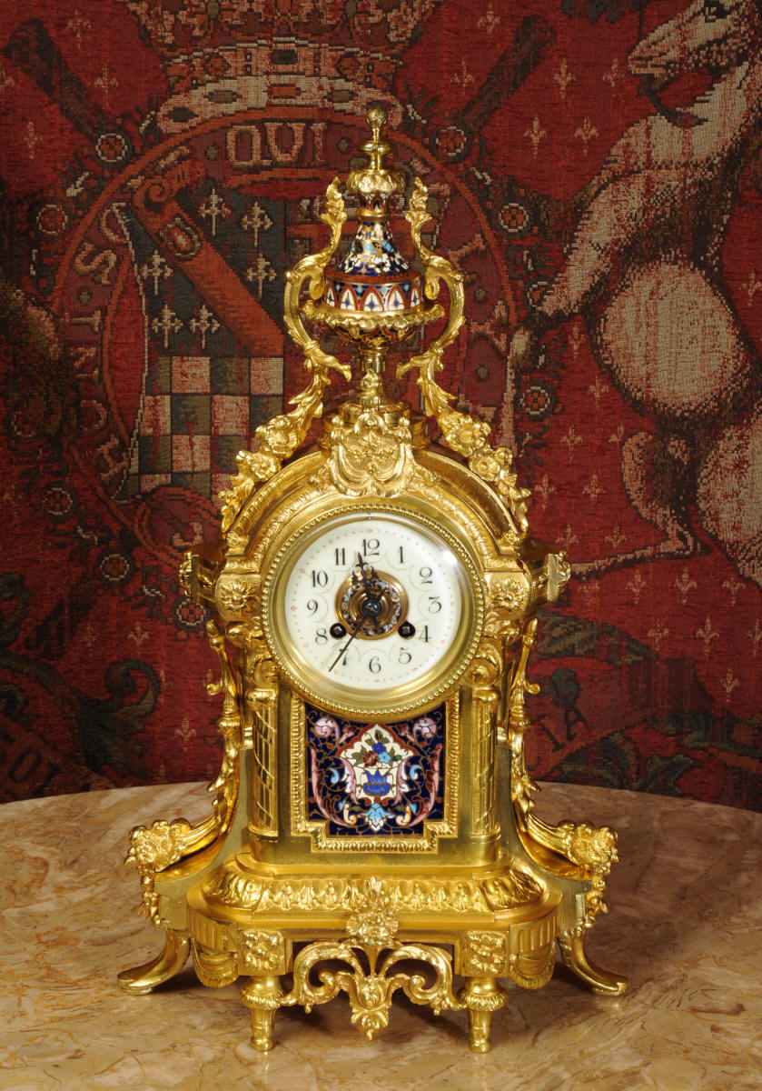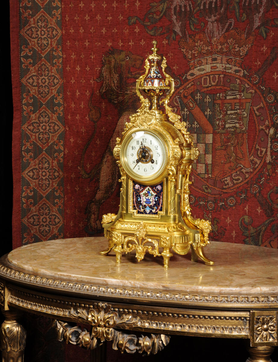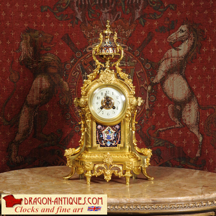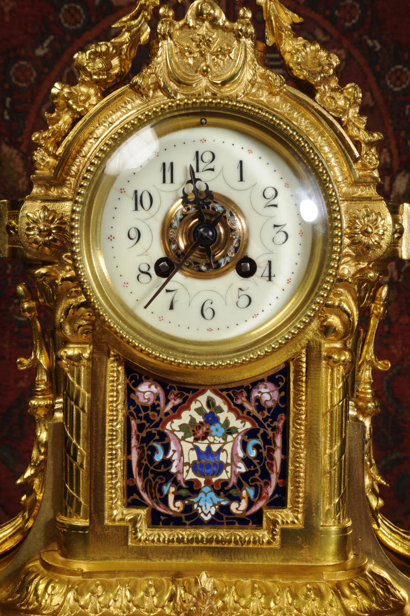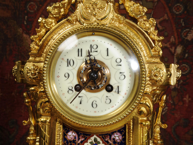 Enamel Mounted Ormolu Antique French Clock