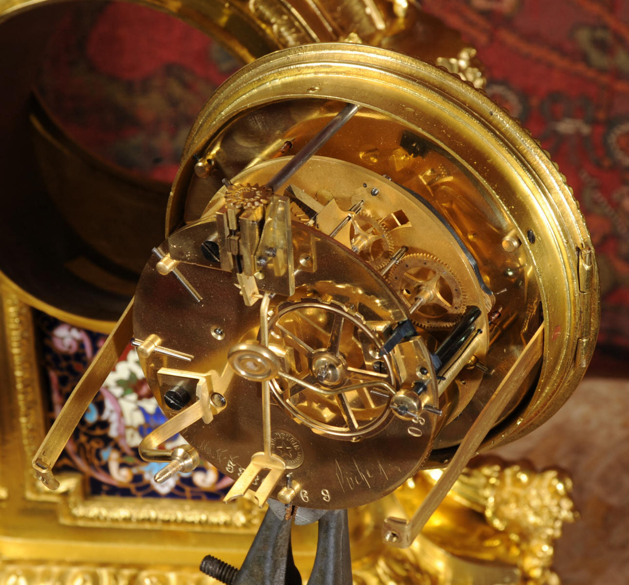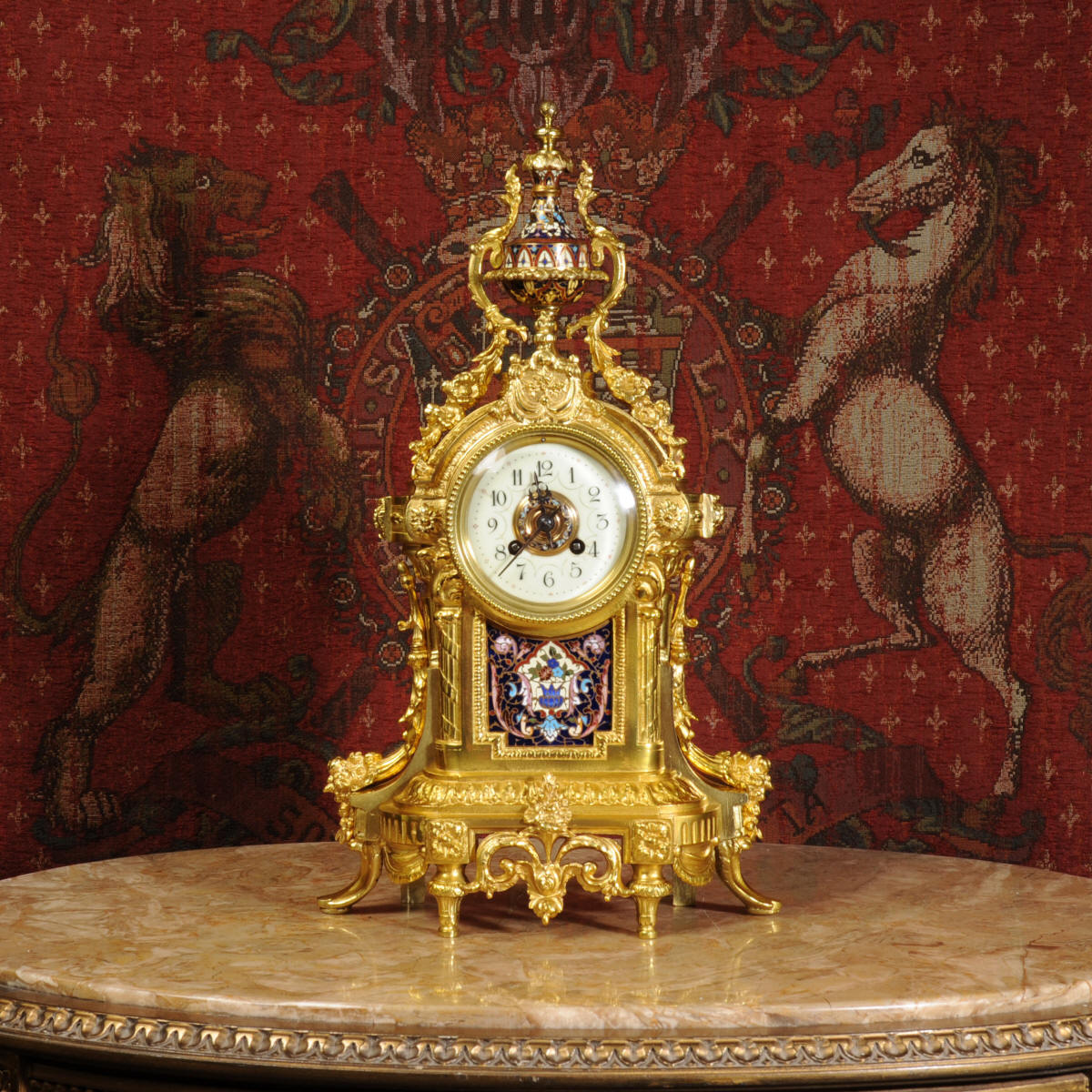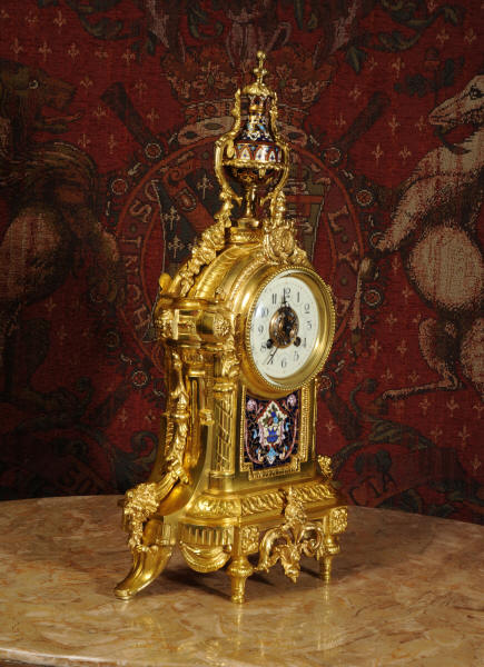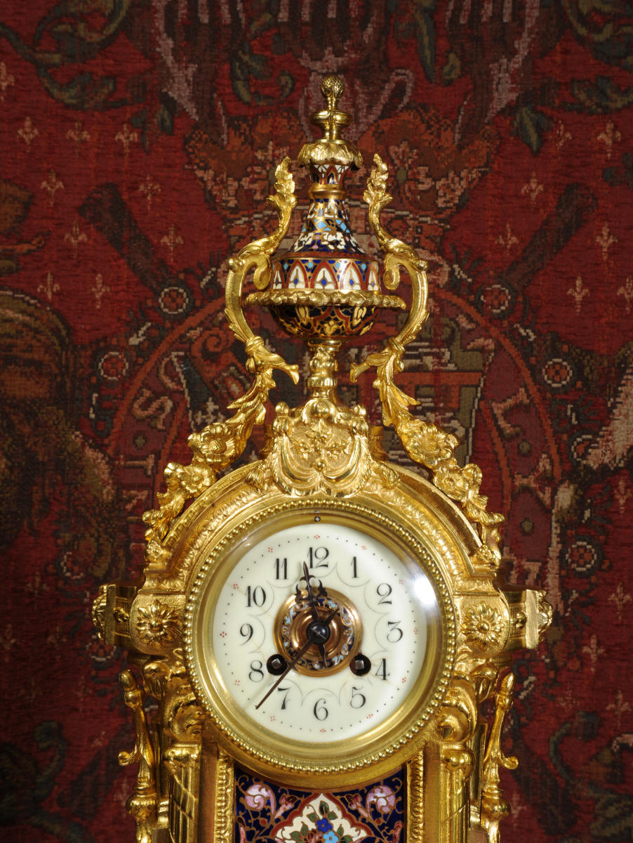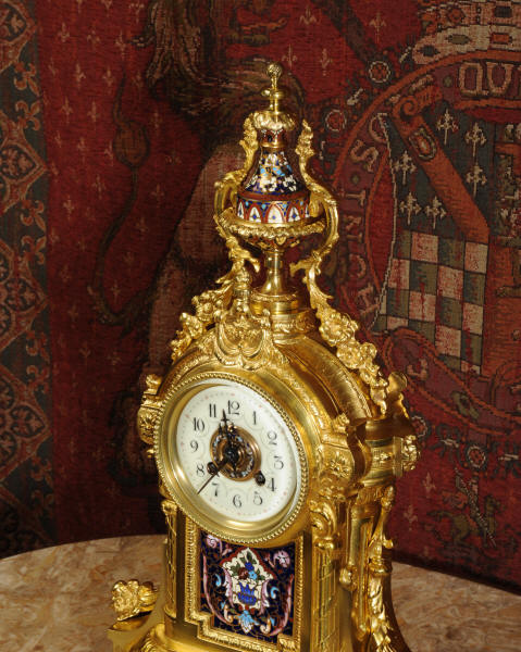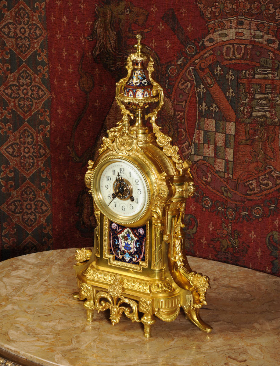 Enamel Mounted Ormolu Antique French Clock