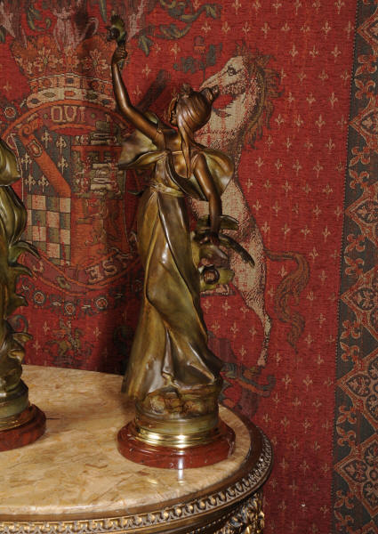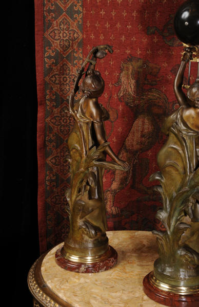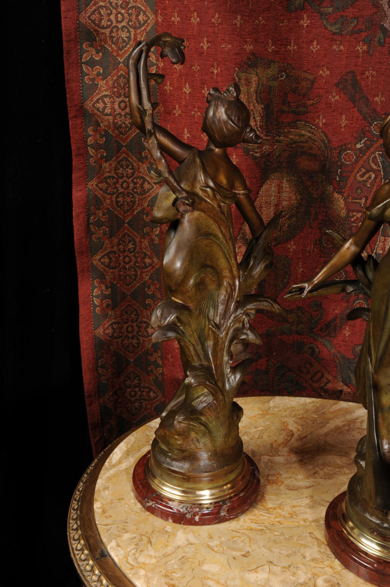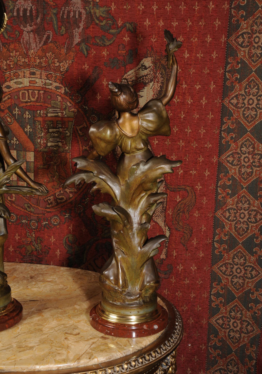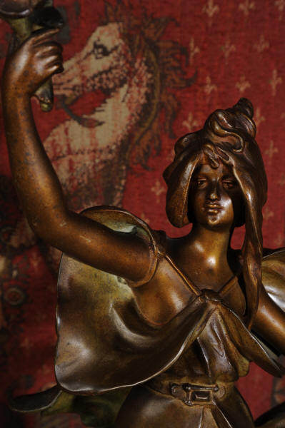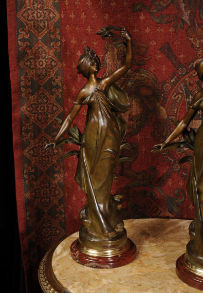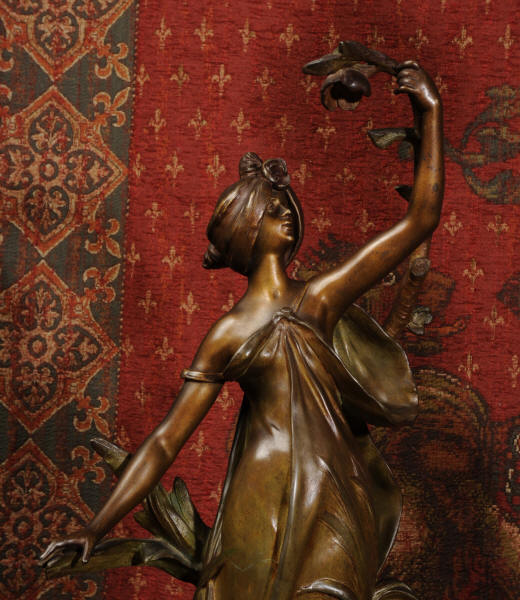 Auguste Louis Marthurin Moreau was born in Dijon in 1834 and died in Malesherbes in 1917 being the youngest son of sculptor and painter Jean-Baptiste Moreau. He studied under his father and also with Aimé Millet, Augustin Drumont and Jean Thomas. Each of the three Moreau brothers, Hippolyte, Marthurin and Auguste, have become renowned for the quality and the beauty of their figurative work. Auguste himself is particularly known for his Art Noveau style figures with his subjects being primarily young maidens sensuously clad in a swirling diaphanous dress and usually decorated with flowers and birds or allegorical and genre scenes incorporating cupids and young children. His style was realistic and graceful, revealing his relation to the other members of the Moreau family. His compositions encapsulate a feeling of innocence. In 1861 Auguste made his debut at the Salon where he would exhibit regularly until 1913.
