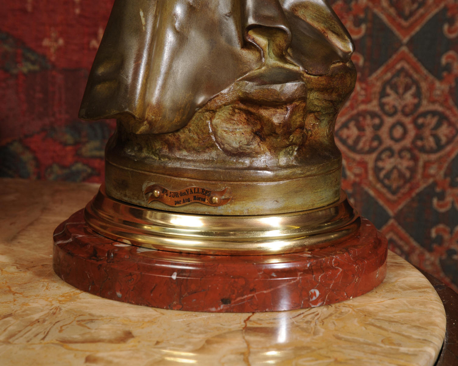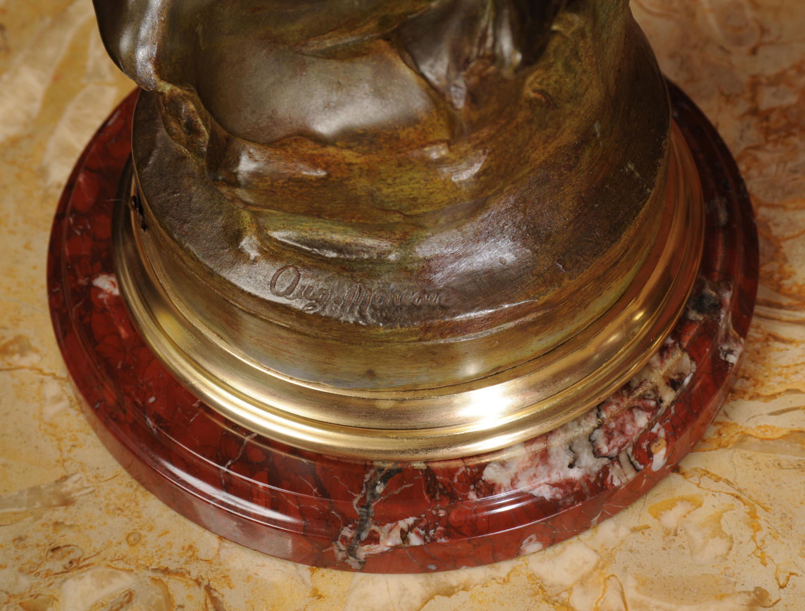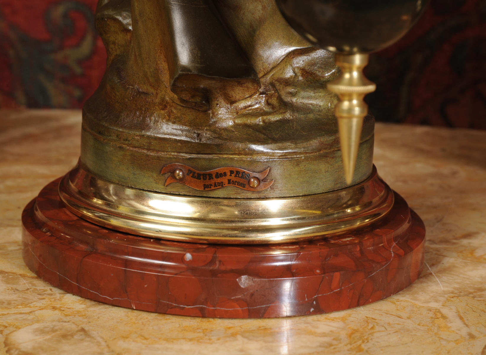 Auguste Louis Marthurin Moreau was born in Dijon in 1834 and died in Malesherbes in 1917 being the youngest son of sculptor and painter Jean-Baptiste Moreau. He studied under his father and also with Aimé Millet, Augustin Drumont and Jean Thomas. Each of the three Moreau brothers, Hippolyte, Marthurin and Auguste, have become renowned for the quality and the beauty of their figurative work. Auguste himself is particularly known for his Art Noveau style figures with his subjects being primarily young maidens sensuously clad in a swirling diaphanous dress and usually decorated with flowers and birds or allegorical and genre scenes incorporating cupids and young children. His style was realistic and graceful, revealing his relation to the other members of the Moreau family. His compositions encapsulate a feeling of innocence. In 1861 Auguste made his debut at the Salon where he would exhibit regularly until 1913.