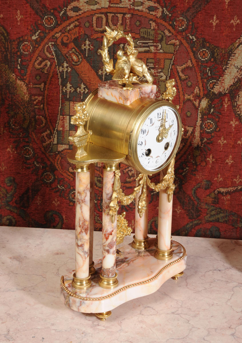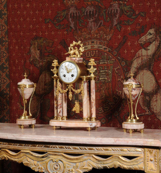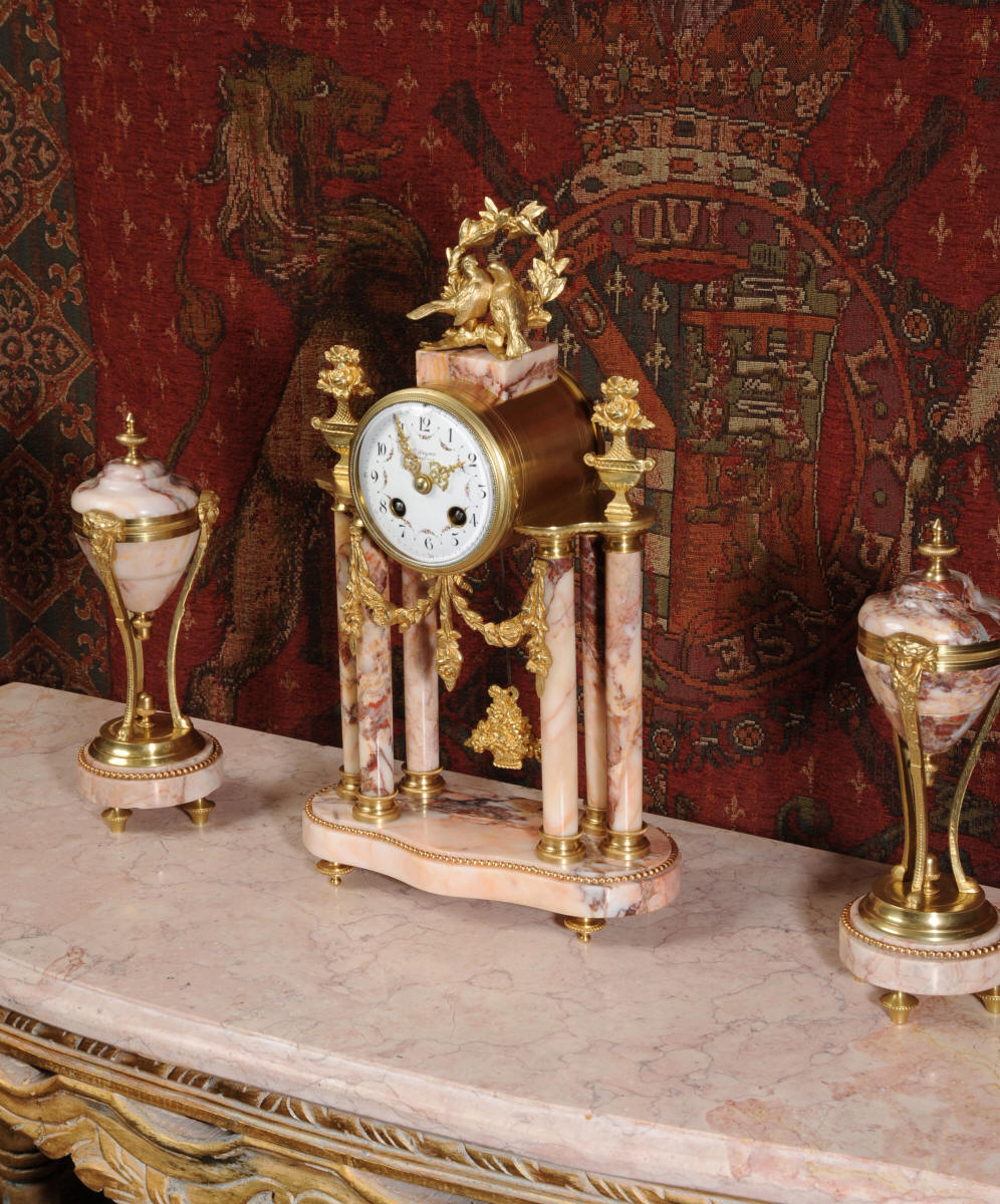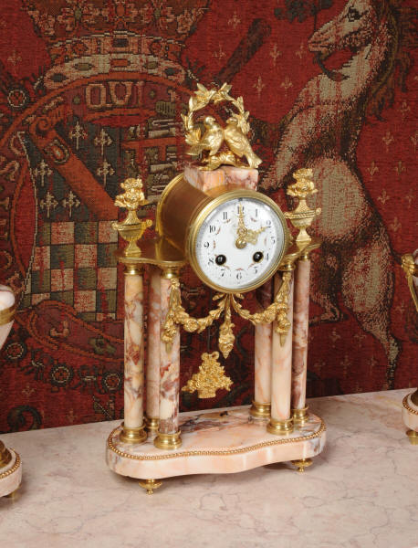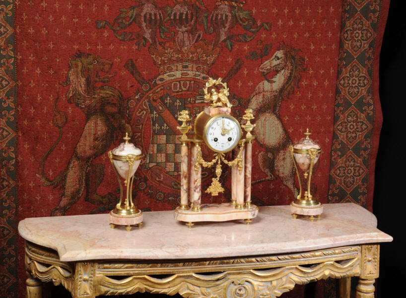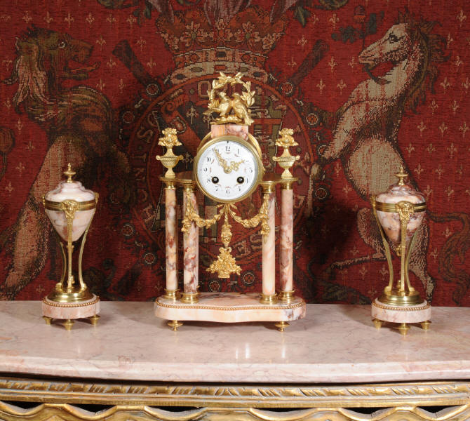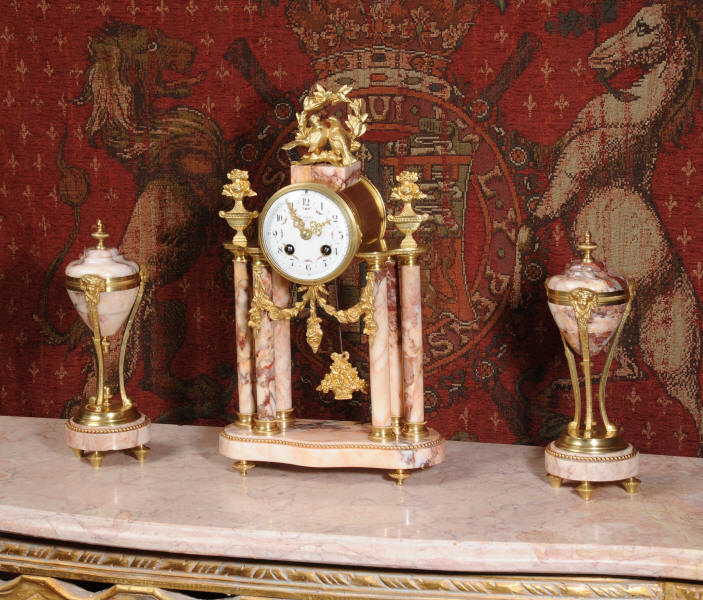 Marble and Ormolu Boudoir Clock Set