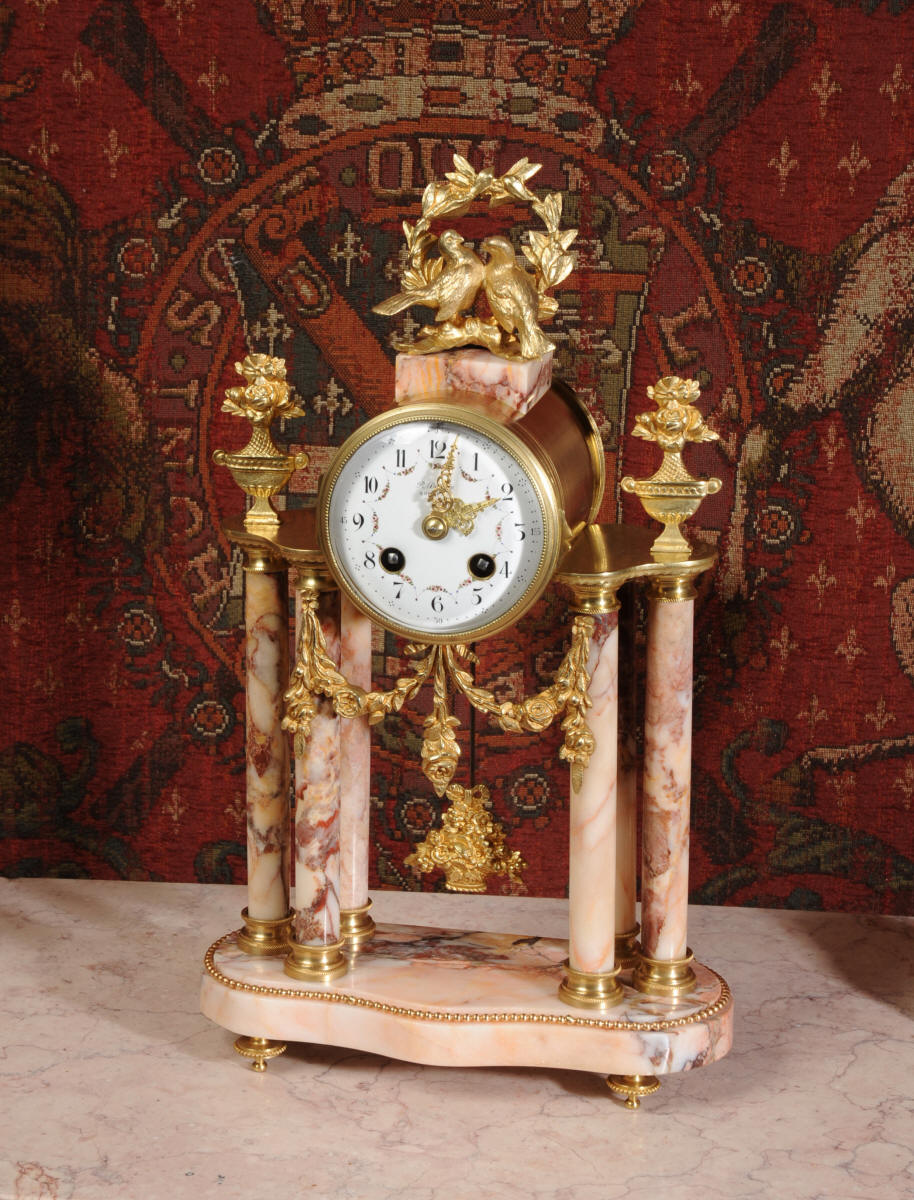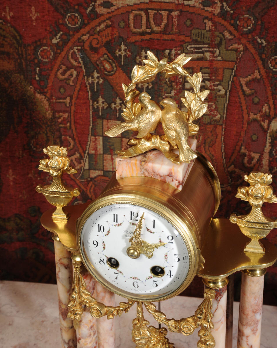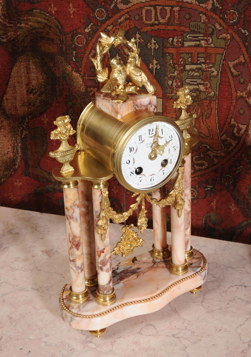 Marble and Ormolu Boudoir Clock Set