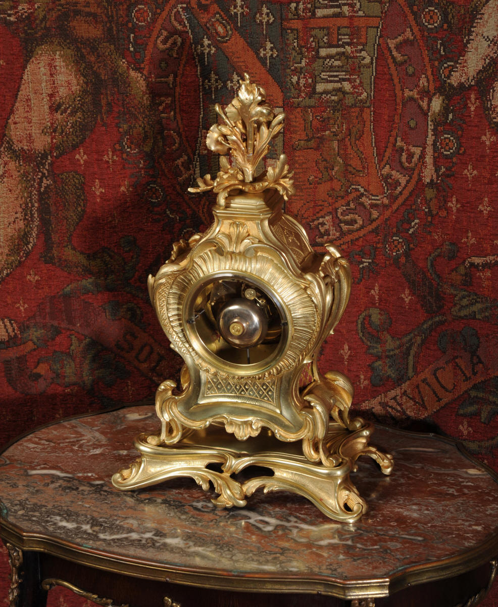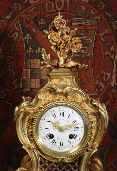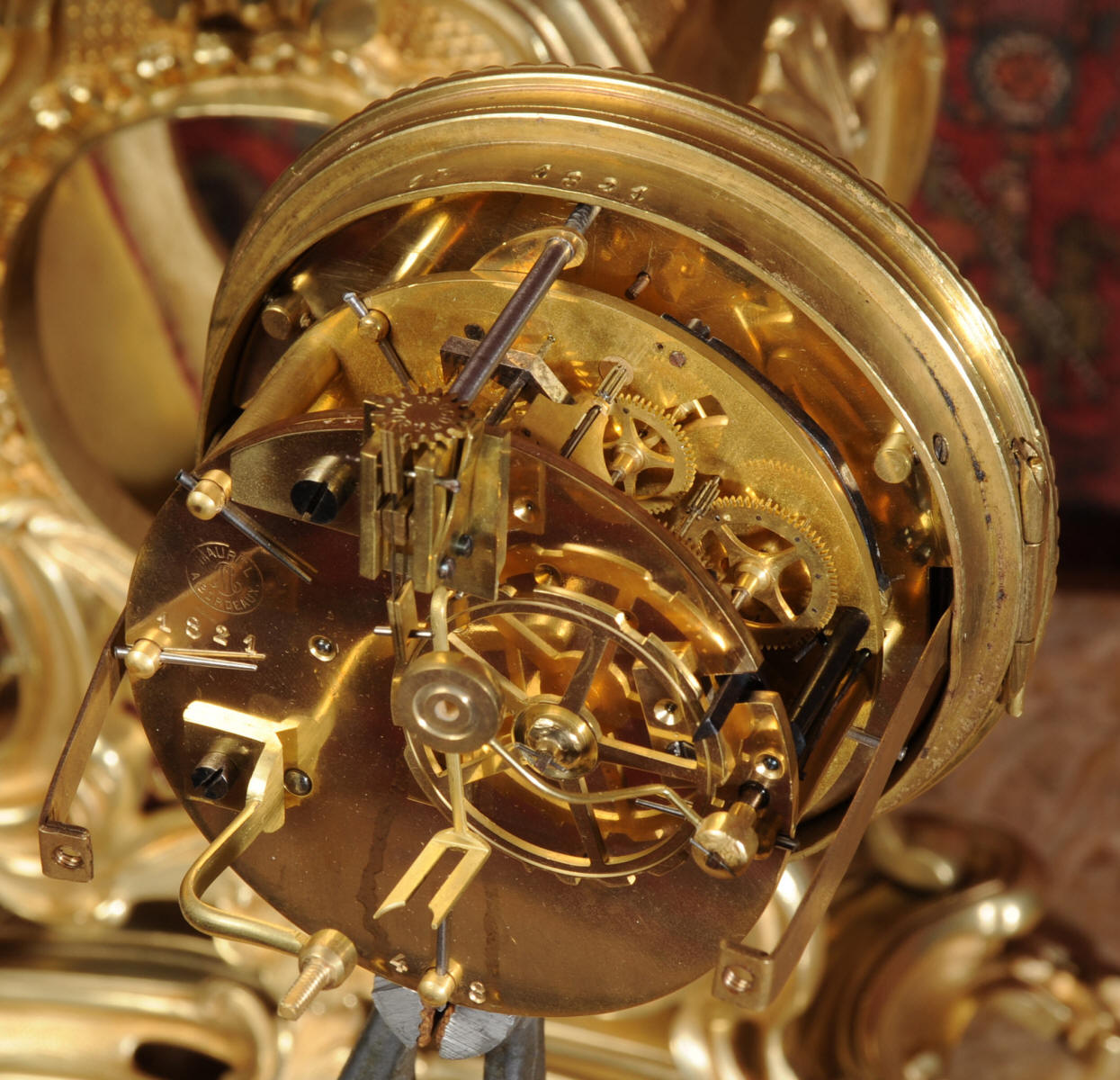 The French movement is of high quality and has the retailers mark on the backplate. It is in excellent clean and running condition having been fully overhauled by our clockmaker. Pendulum is a replacement. It runs for 8 days and strikes the hours and halves on a bell. Click the video clip below to hear the bell and watch the clock running!