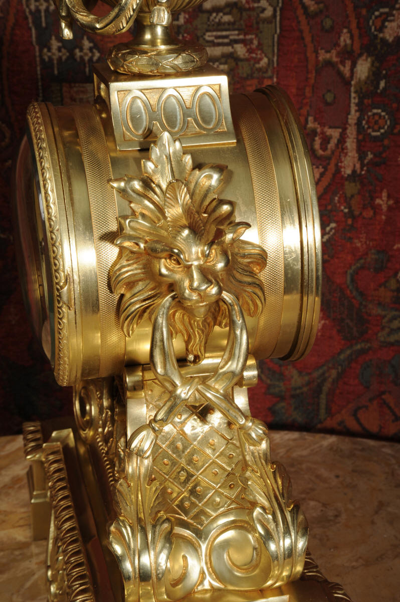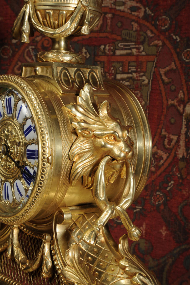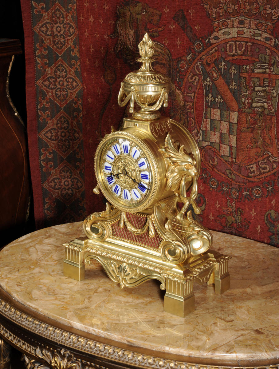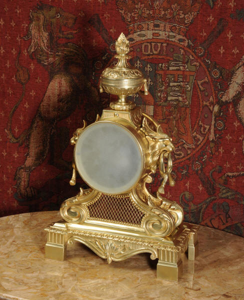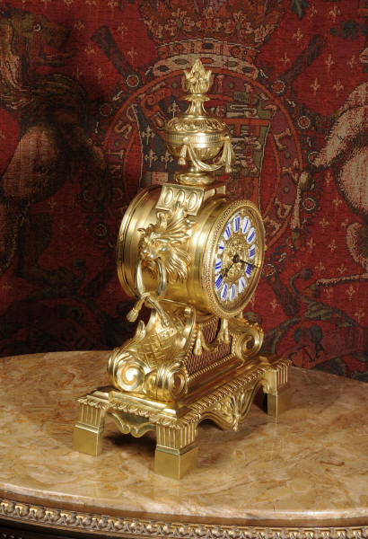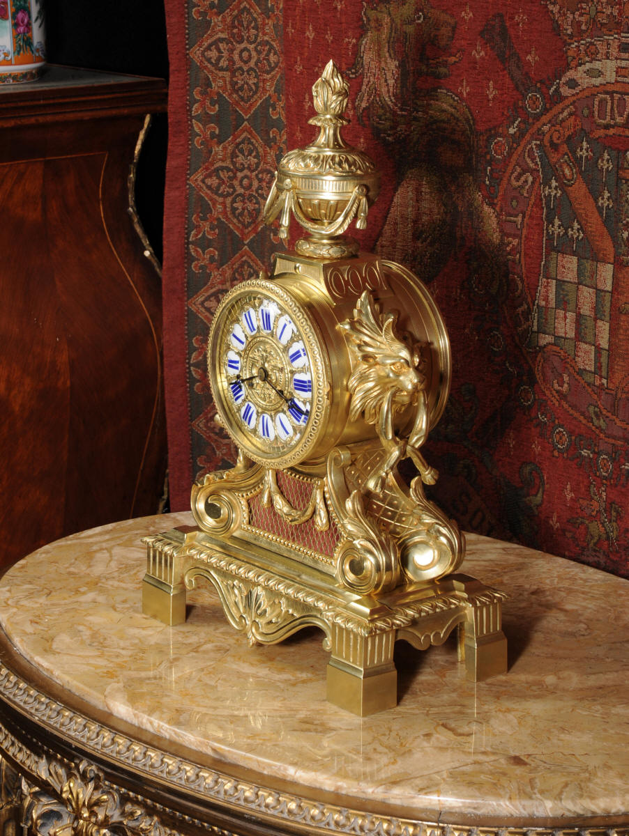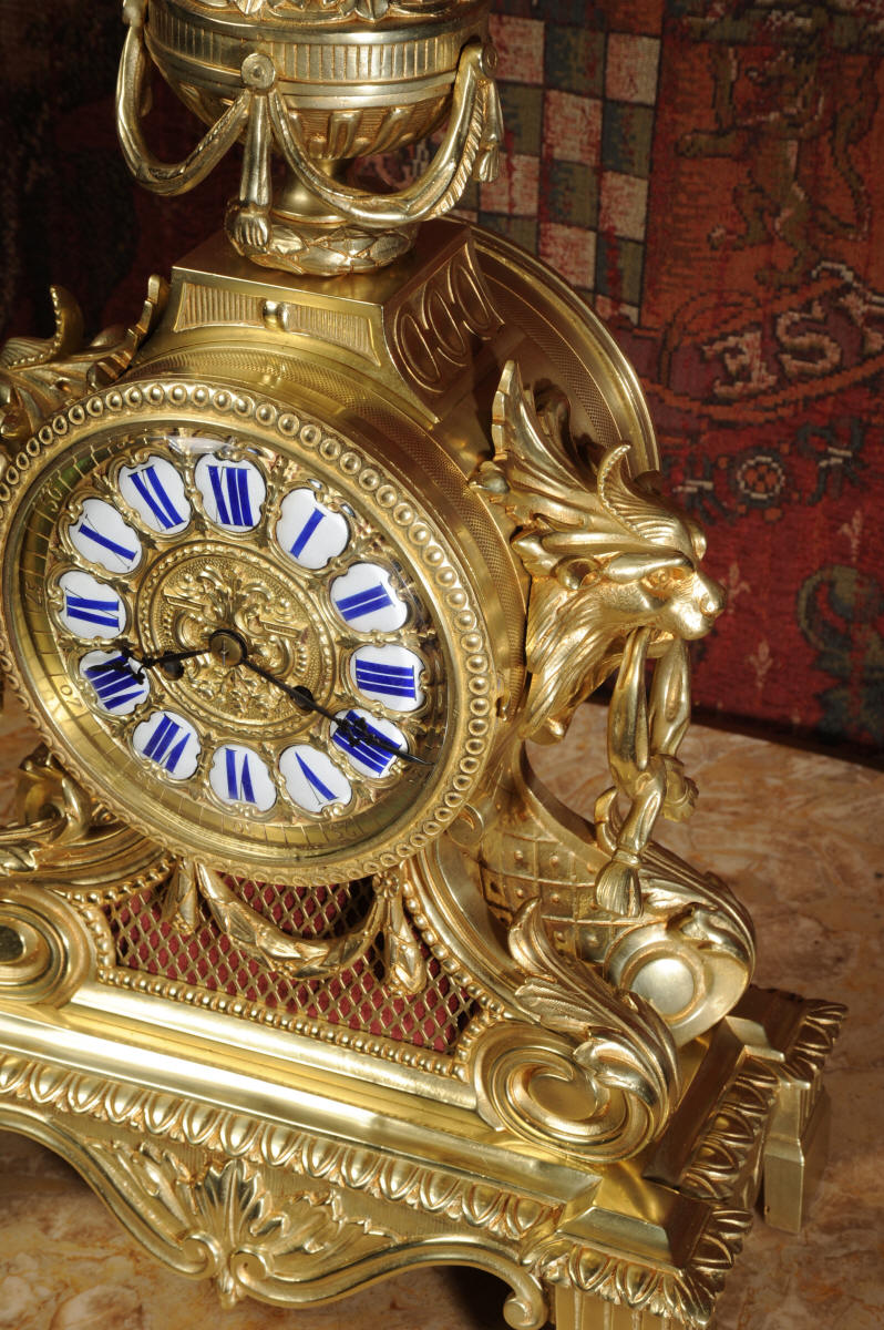The large, stunning dial is also gilt brass with 12 individual enamel cartouches and blued steel hands.