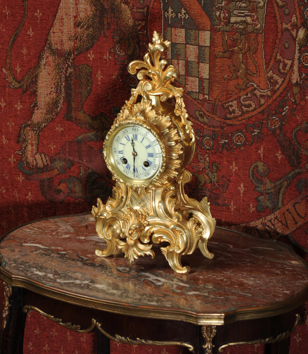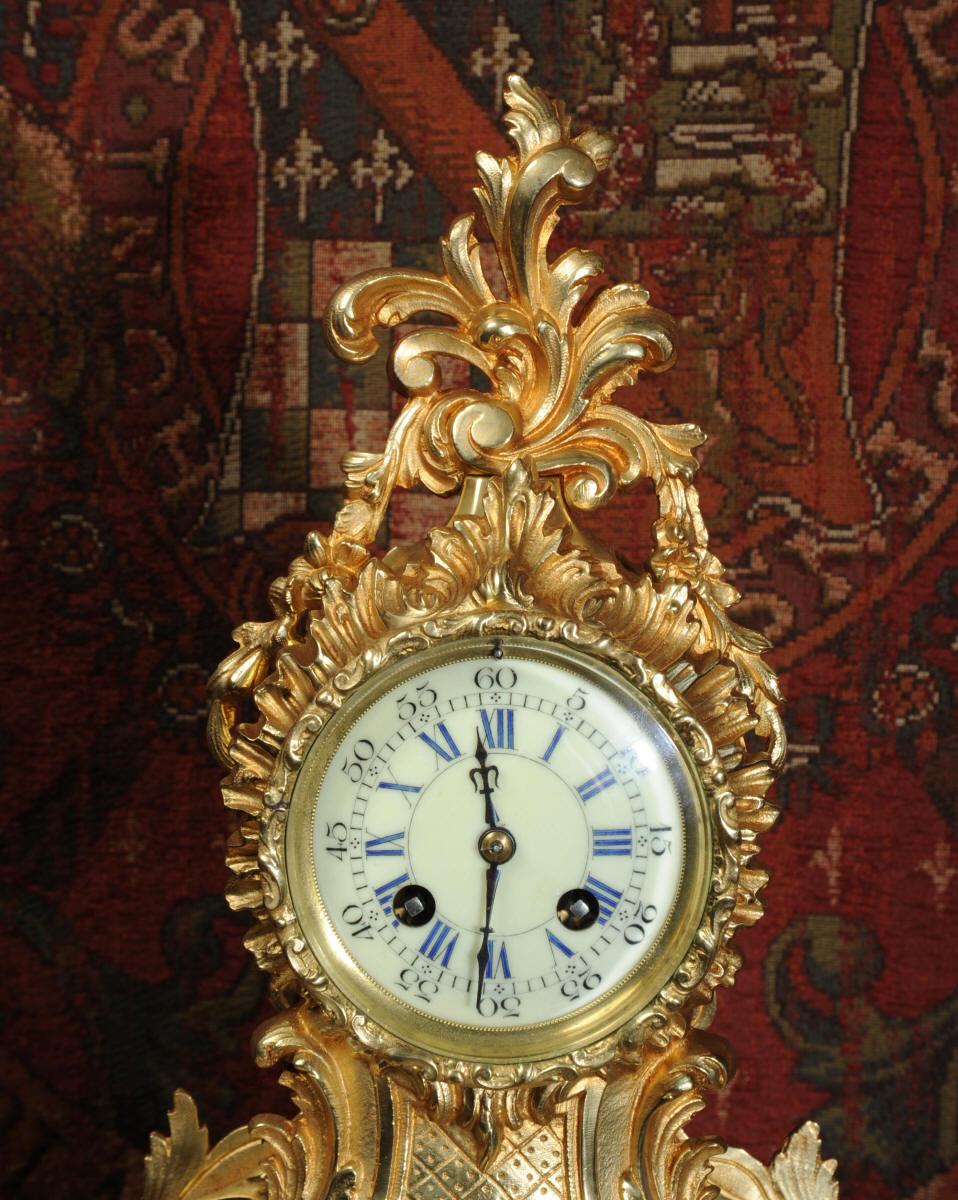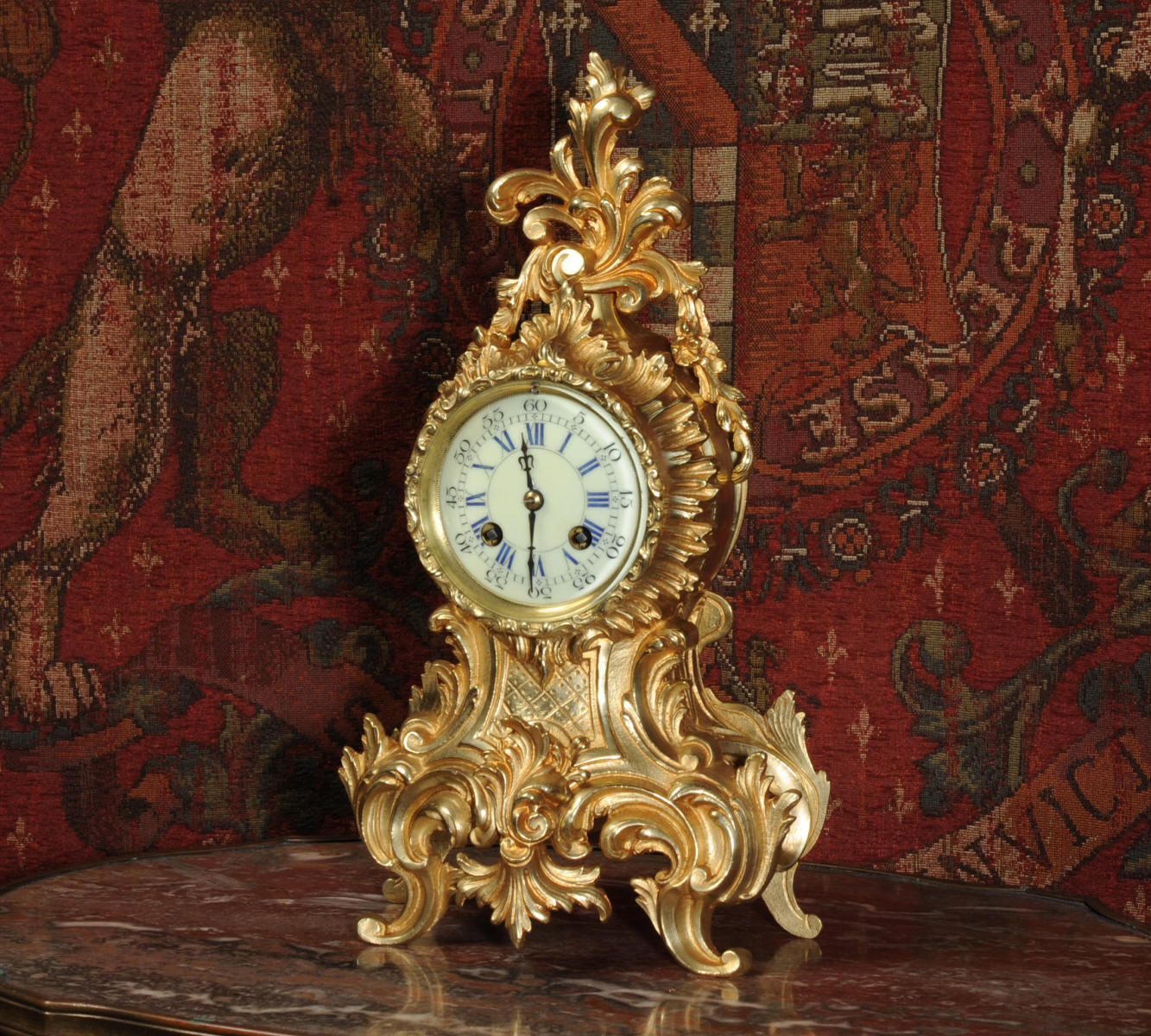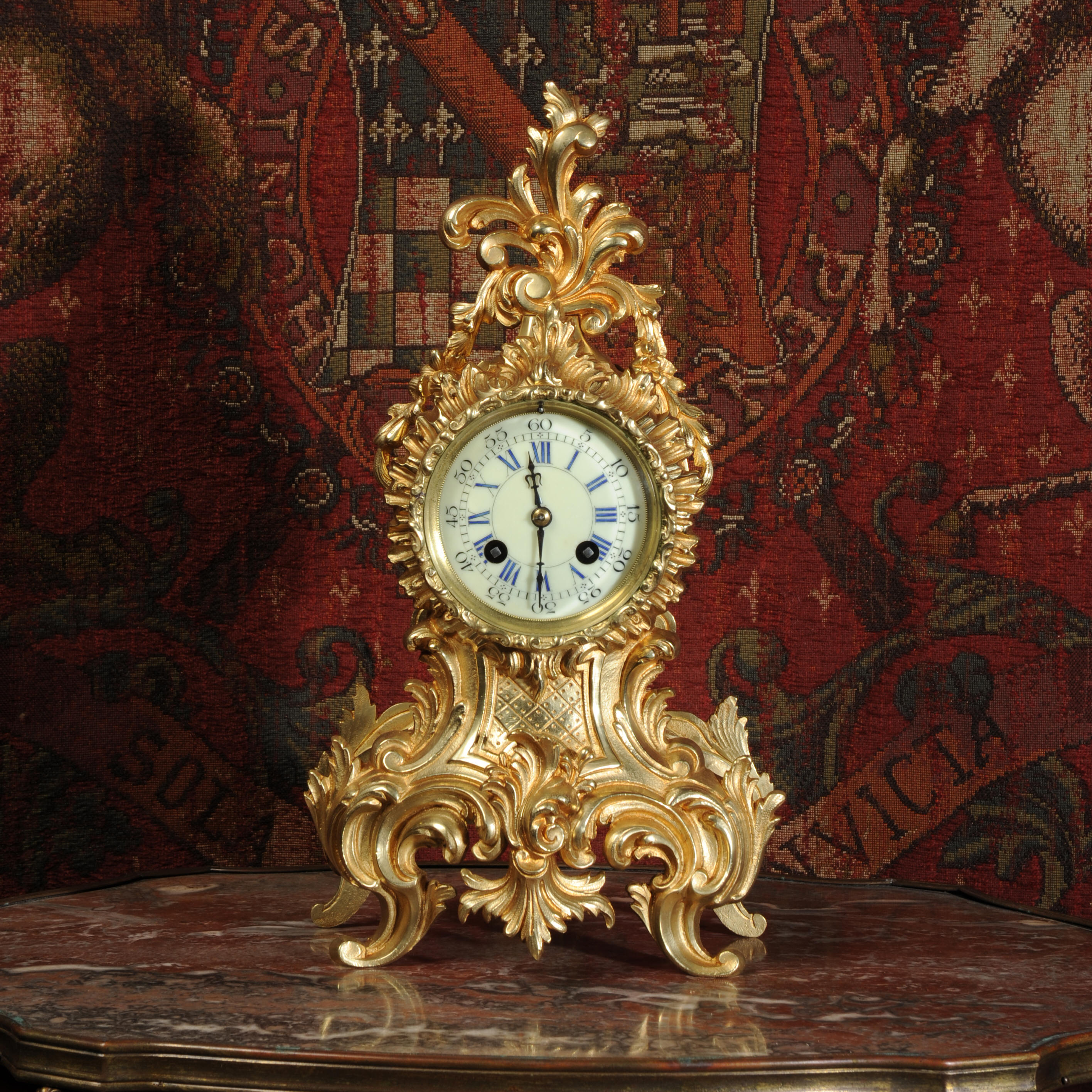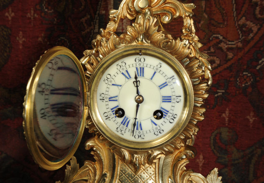 Condition of the case is excellent with clean and bright finish and there are no losses. There is some very minor wear and discolouration. The dial is also in excellent condition, just some slight chipping around the winding holes. A beautiful Rococo clock ready for you to display!