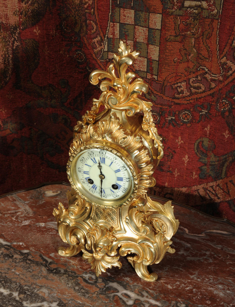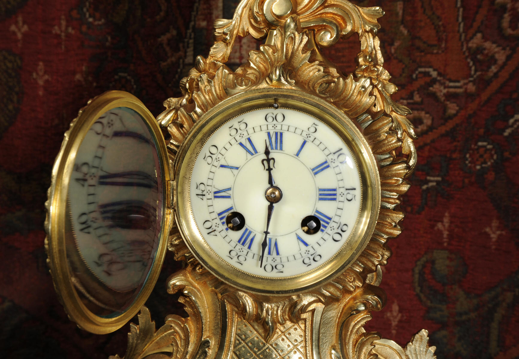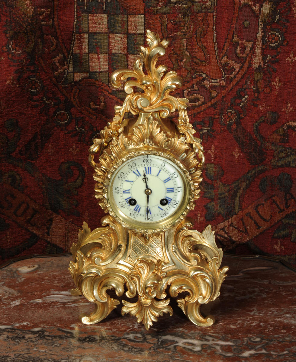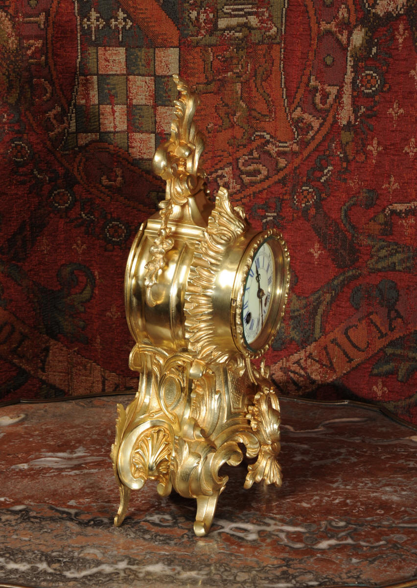 Condition of the case is excellent with clean and bright finish and there are no losses. There is some very minor wear and discolouration. The dial is also in excellent condition, just some slight chipping around the winding holes. A beautiful Rococo clock ready for you to display!