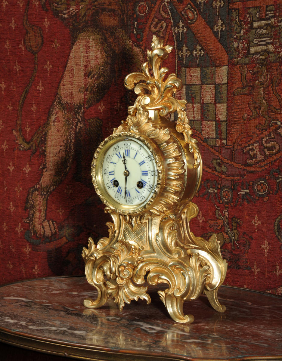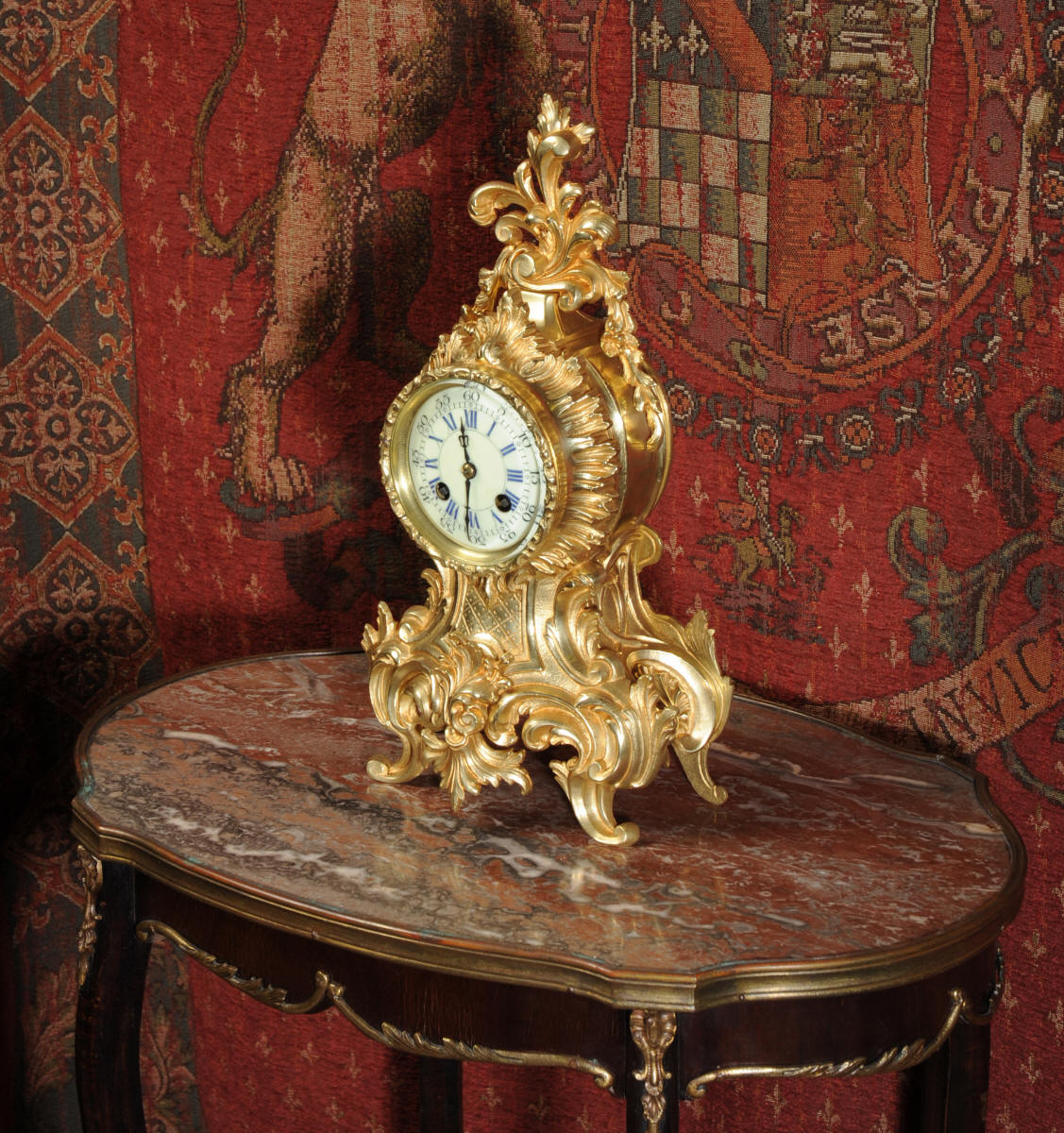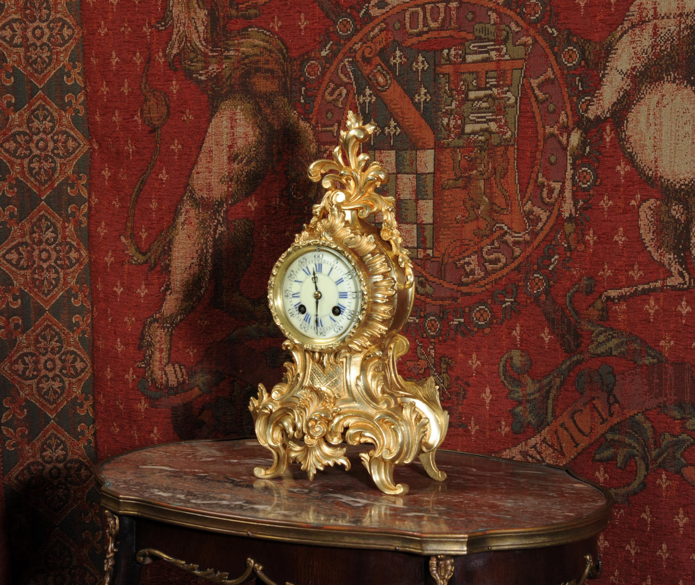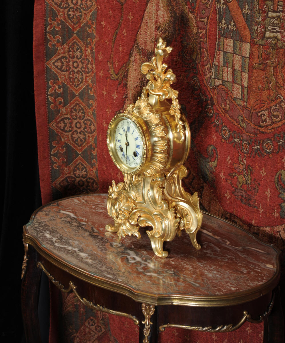 Condition of the case is excellent with clean and bright finish and there are no losses. There is some very minor wear and discolouration. The dial is also in excellent condition, just some slight chipping around the winding holes. A beautiful Rococo clock ready for you to display!