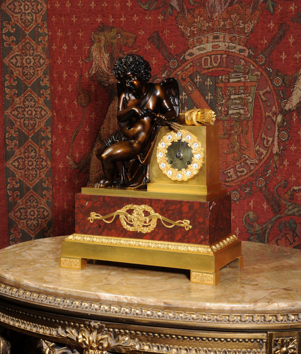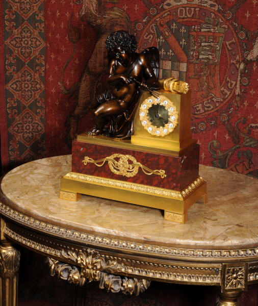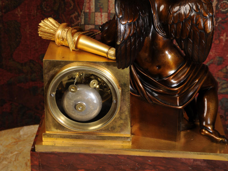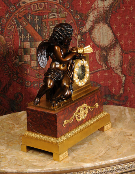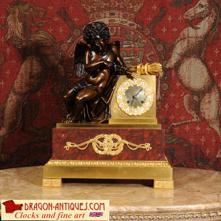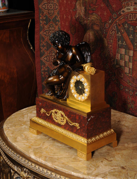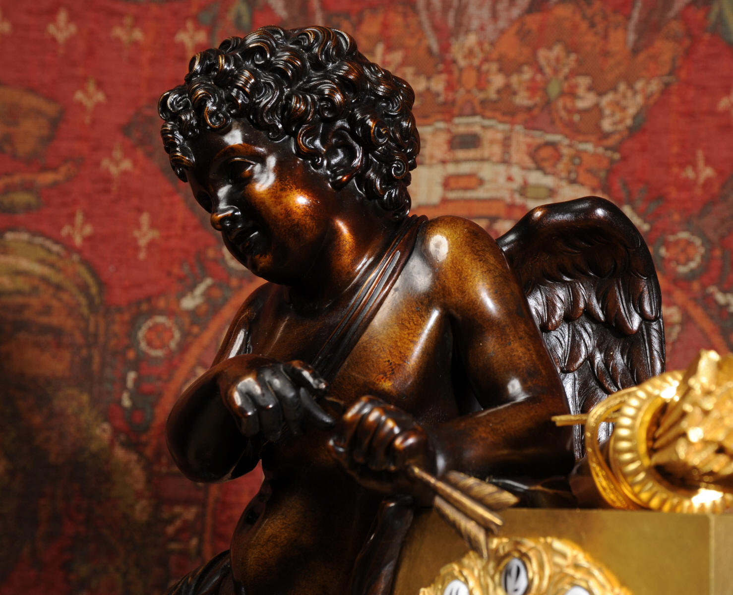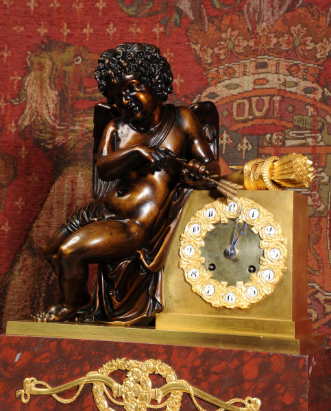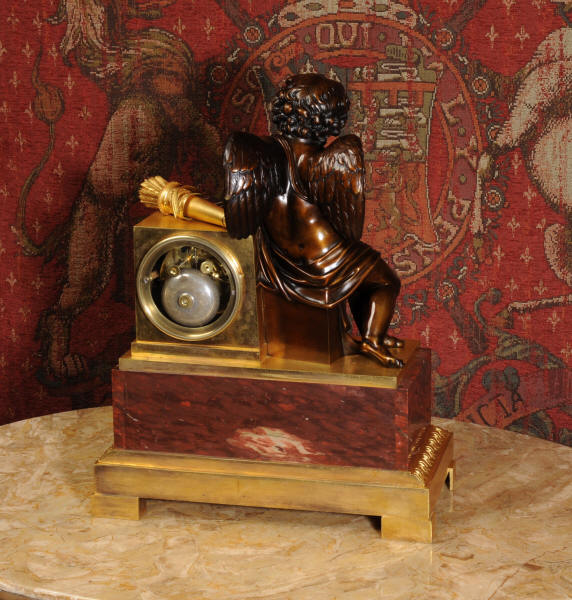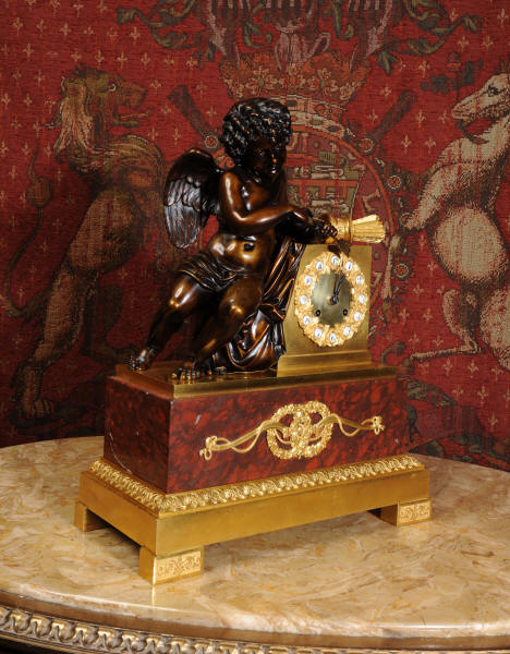 and Fine Bronze, Ormolu and Specimen Marble Clock with Cupid