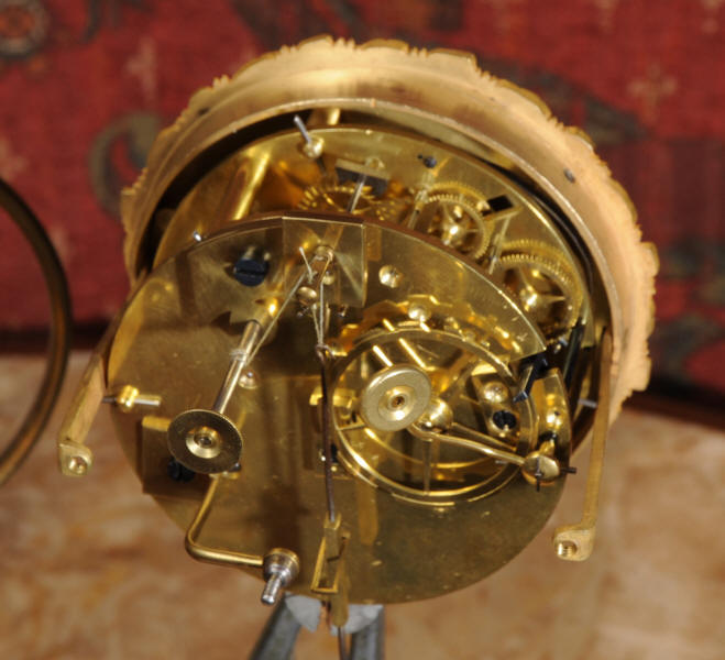 The Early French movement is of high quality and is in excellent clean and running condition. It is is the earlier version of the Pendule De Paris movement with a silk suspension. Pendulum is original. It runs for 8 days and strikes the hours and halves on a bell. Click the video clip below to hear the bell and watch the clock running!