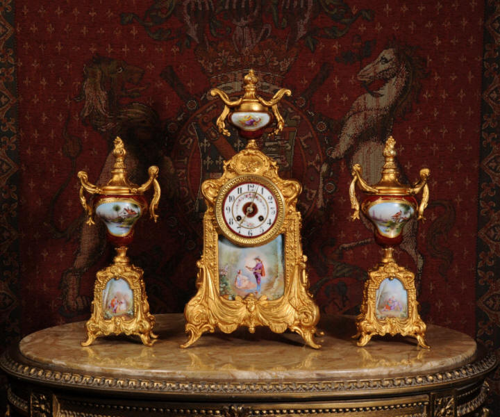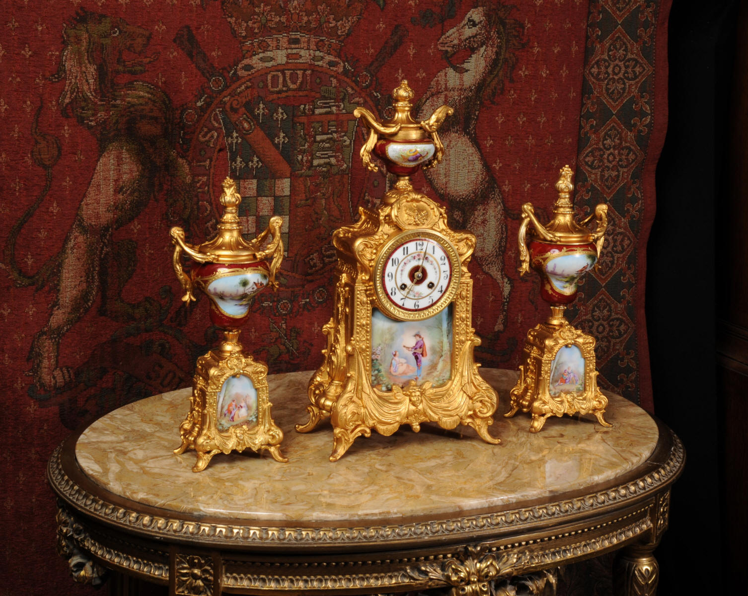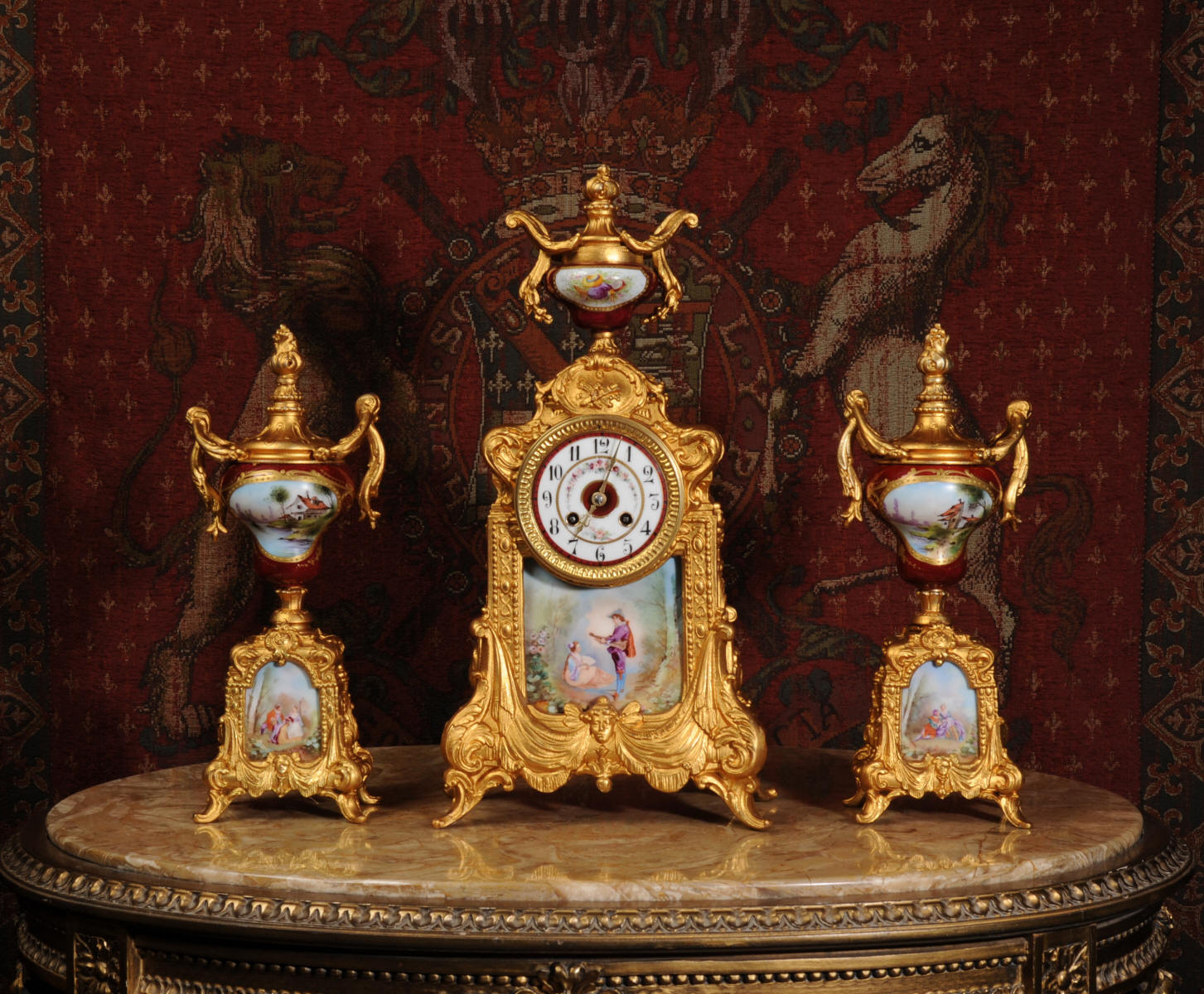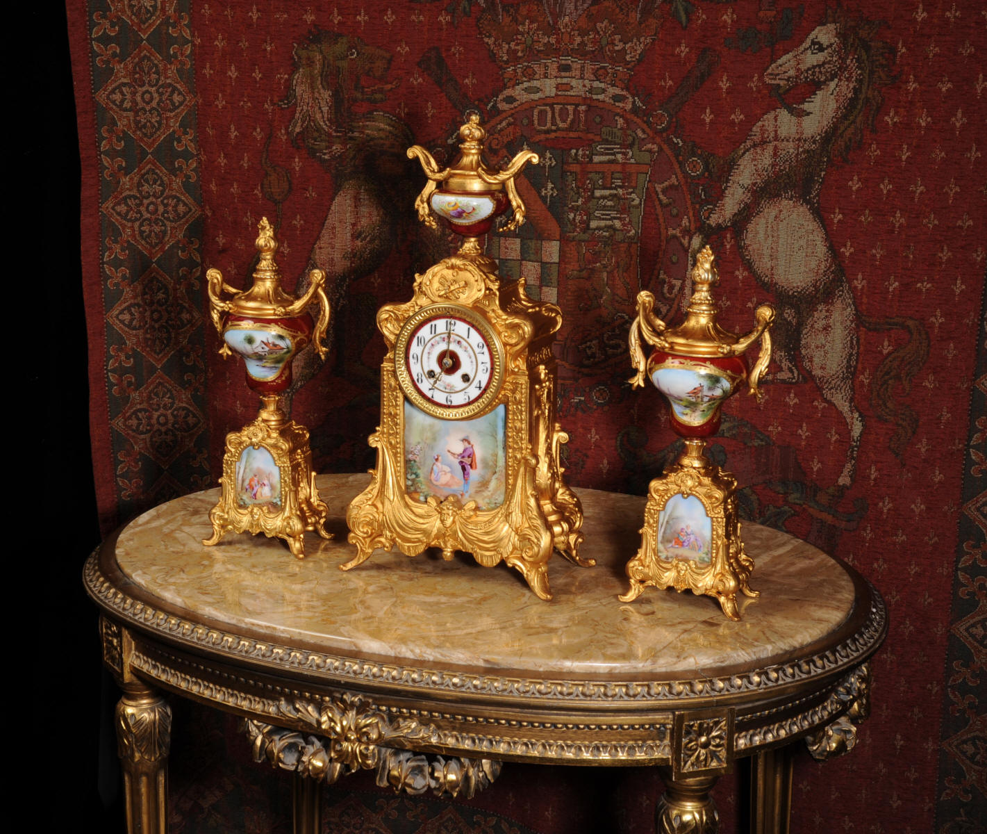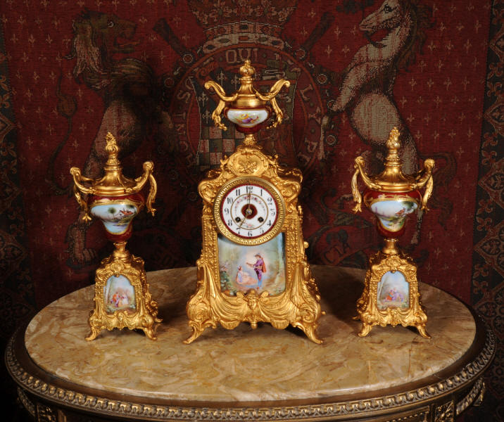 Sevres Porcelain and Gilt Metal Clock Set ~ Love