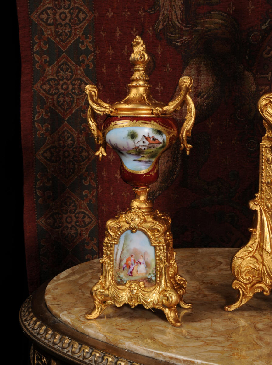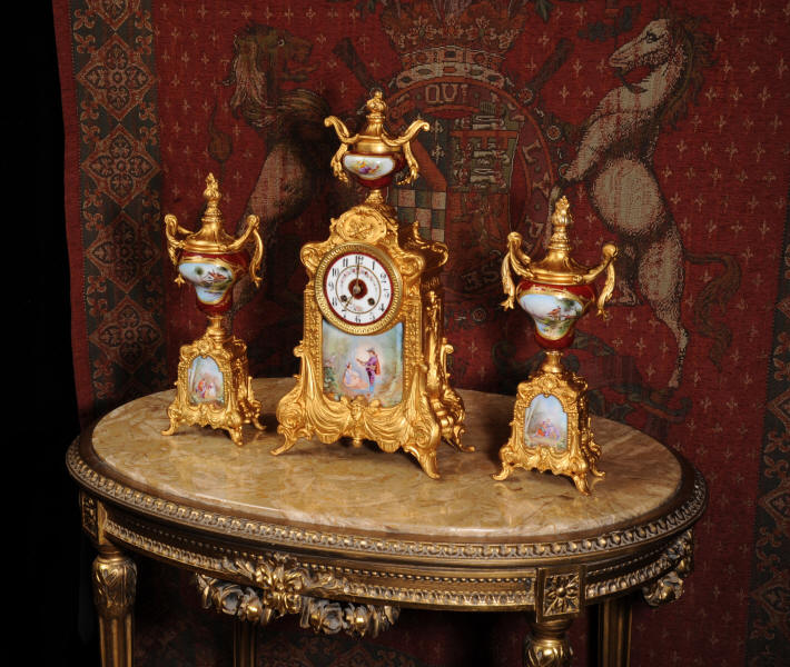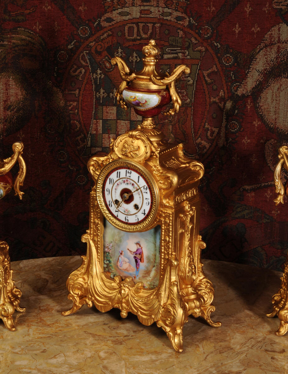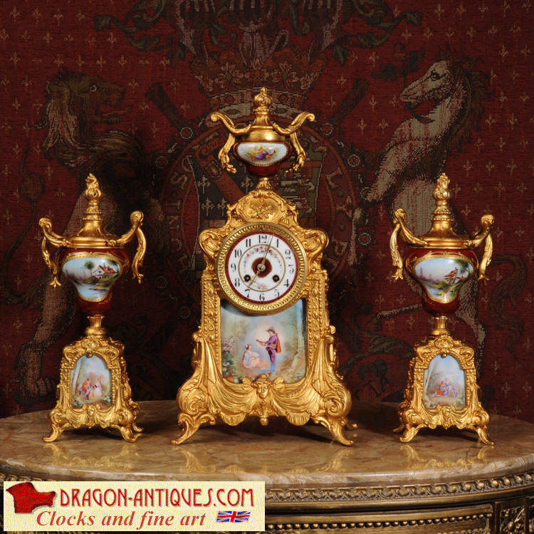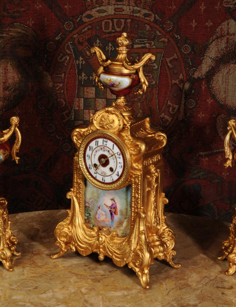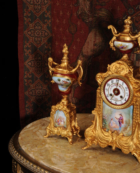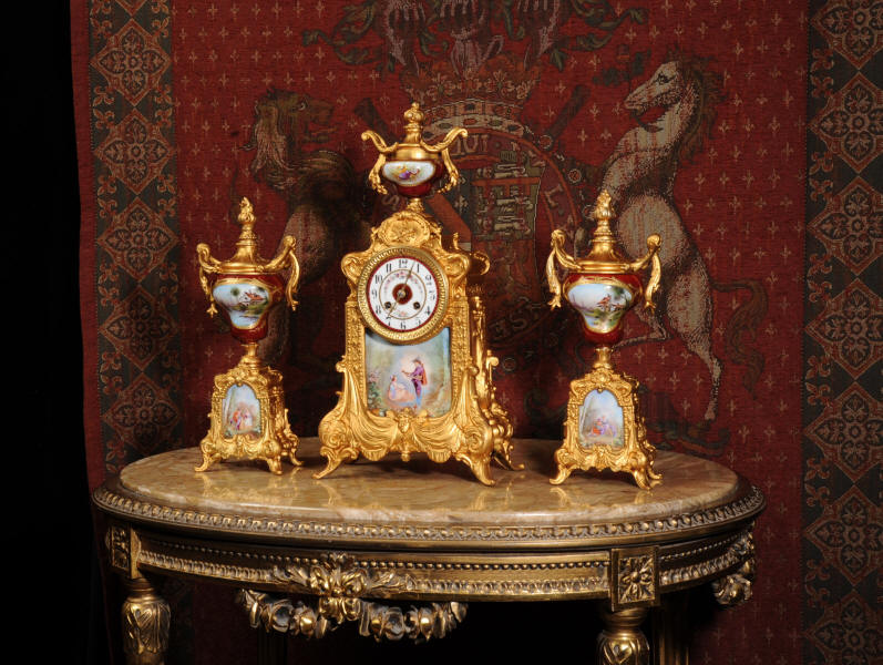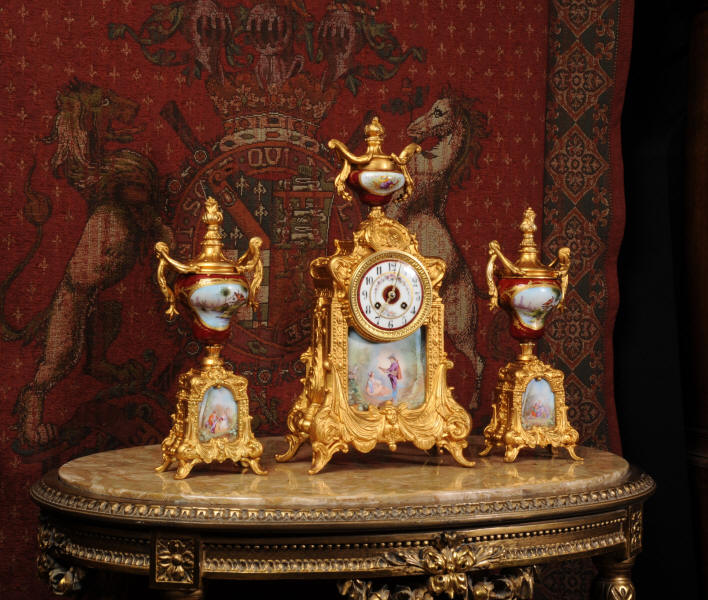 Sevres Porcelain and Gilt Metal Clock Set ~ Love