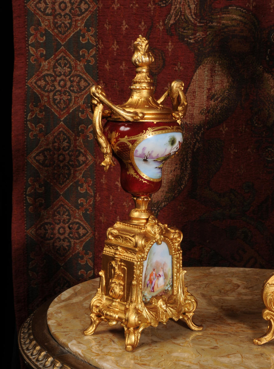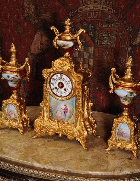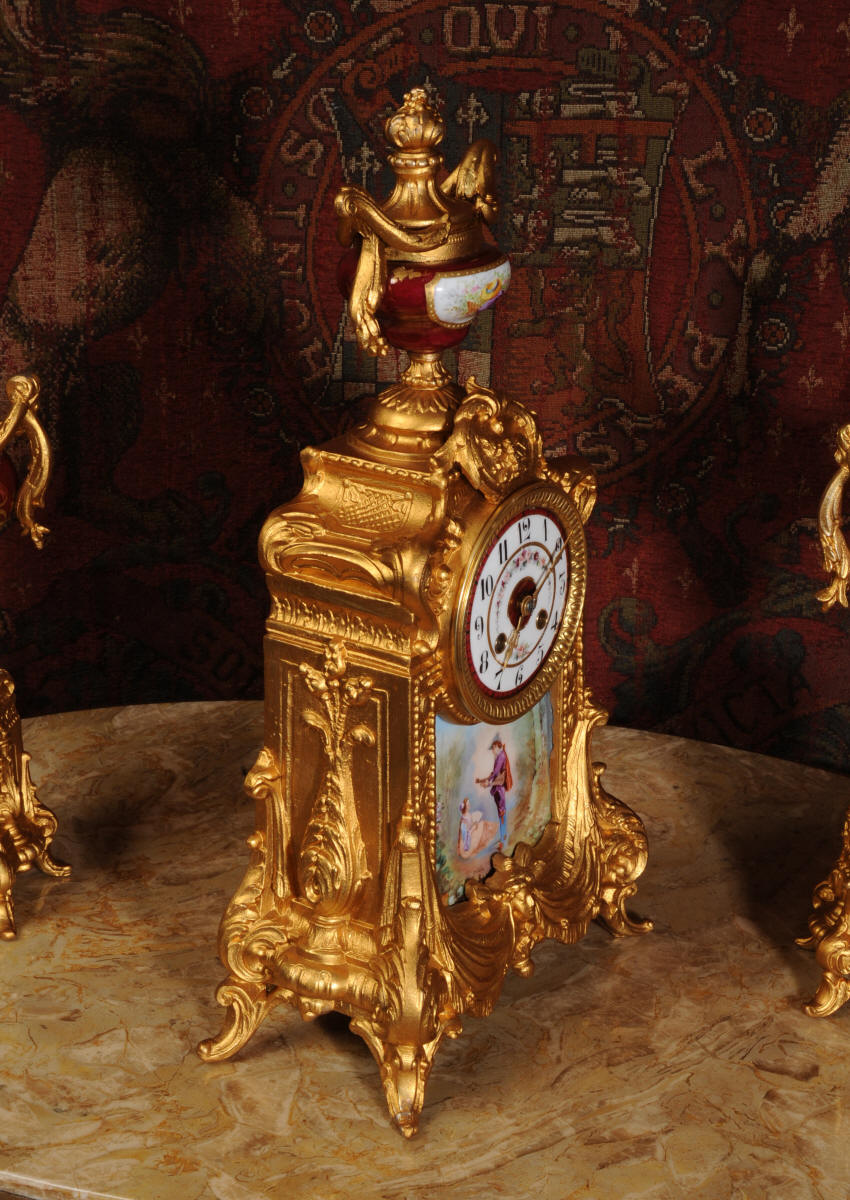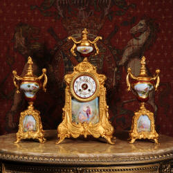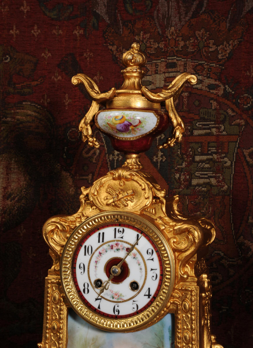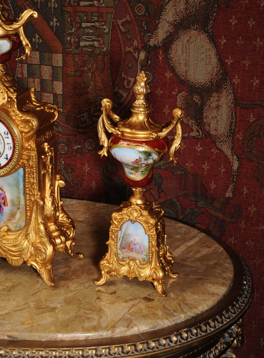 Sevres Porcelain and Gilt Metal Clock Set ~ Love