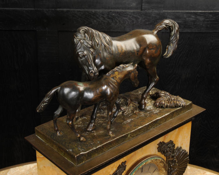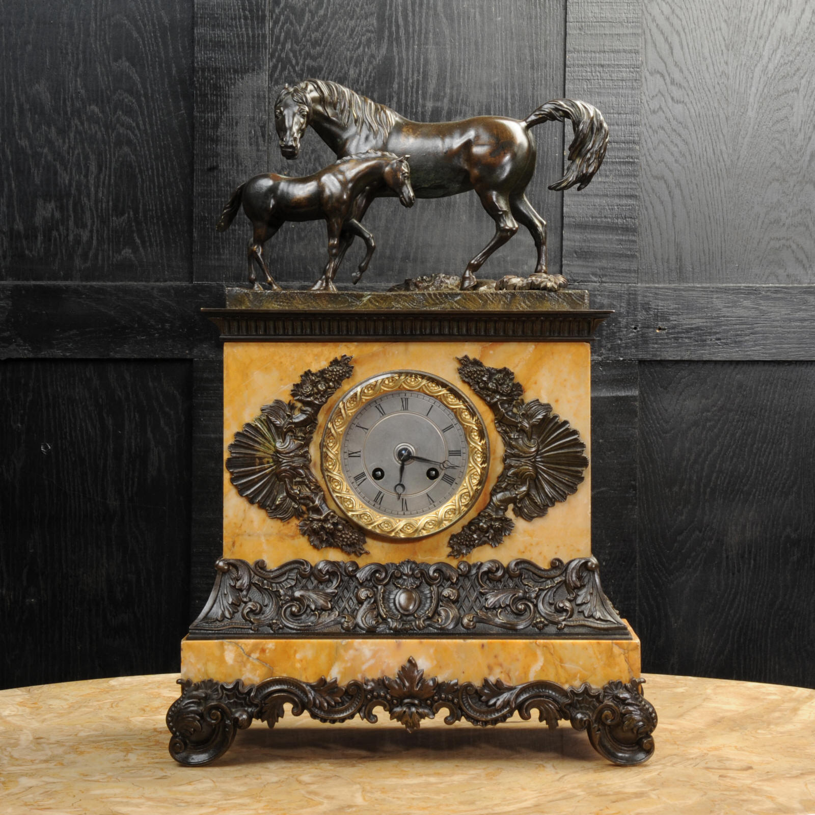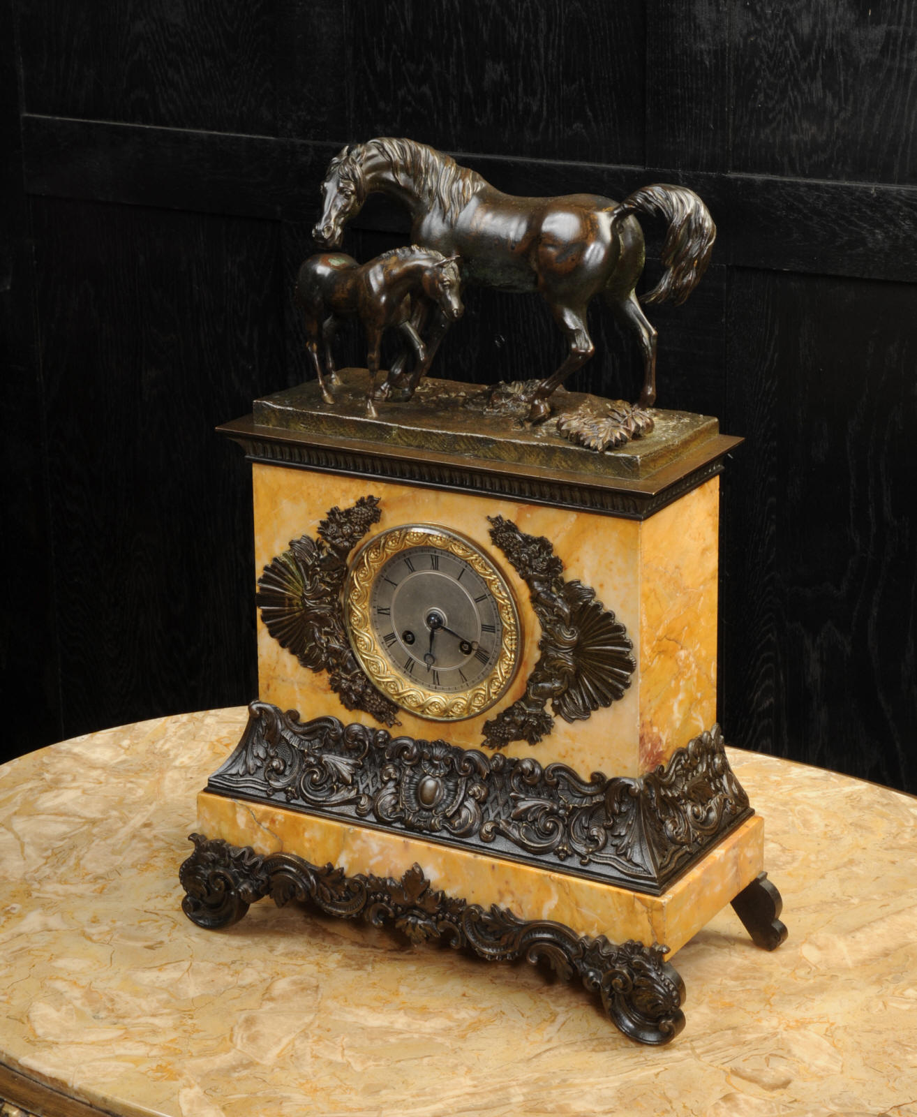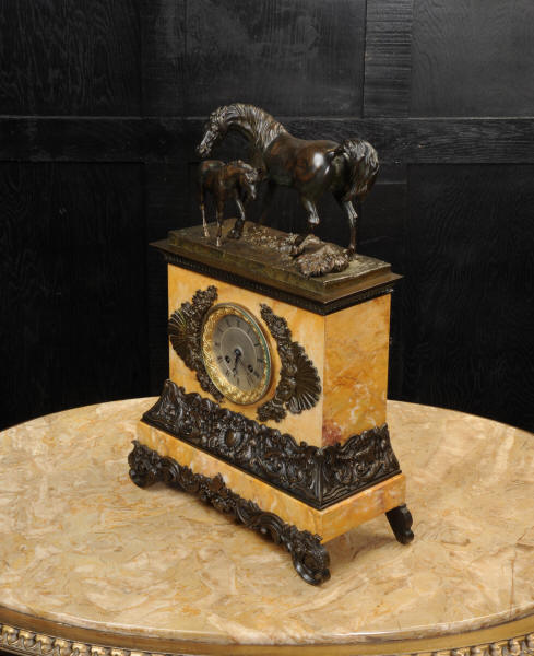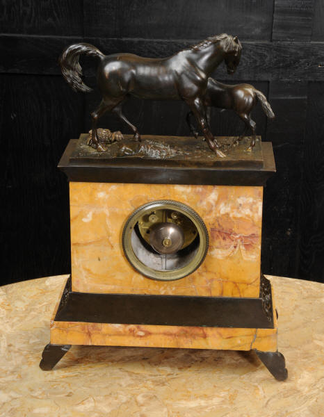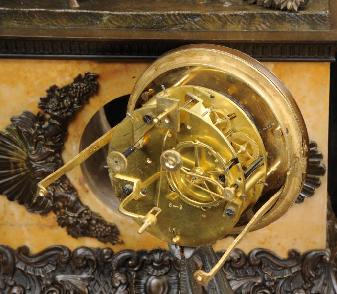The dial is silvered bronze with a gilt bronze surround and is complete with original fine blued steel hands. The original rear bezel is also glazed and has a silvered sight ring. The serial number 150 is marked on the front and rear bezel as well as the movement. The French movement is of high quality and is in excellent clean and running condition having been fully overhauled by our clockmaker. It is an early movement design with silk suspension and hammer stop spring. Pendulum is a replacement. It runs for 8 days and strikes the hours and halves on a bell. A video clip is available on request.