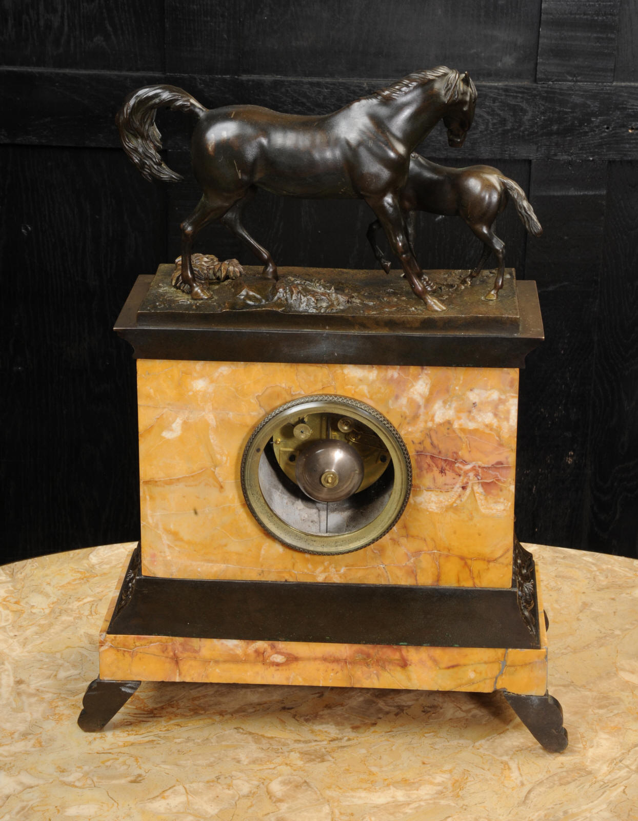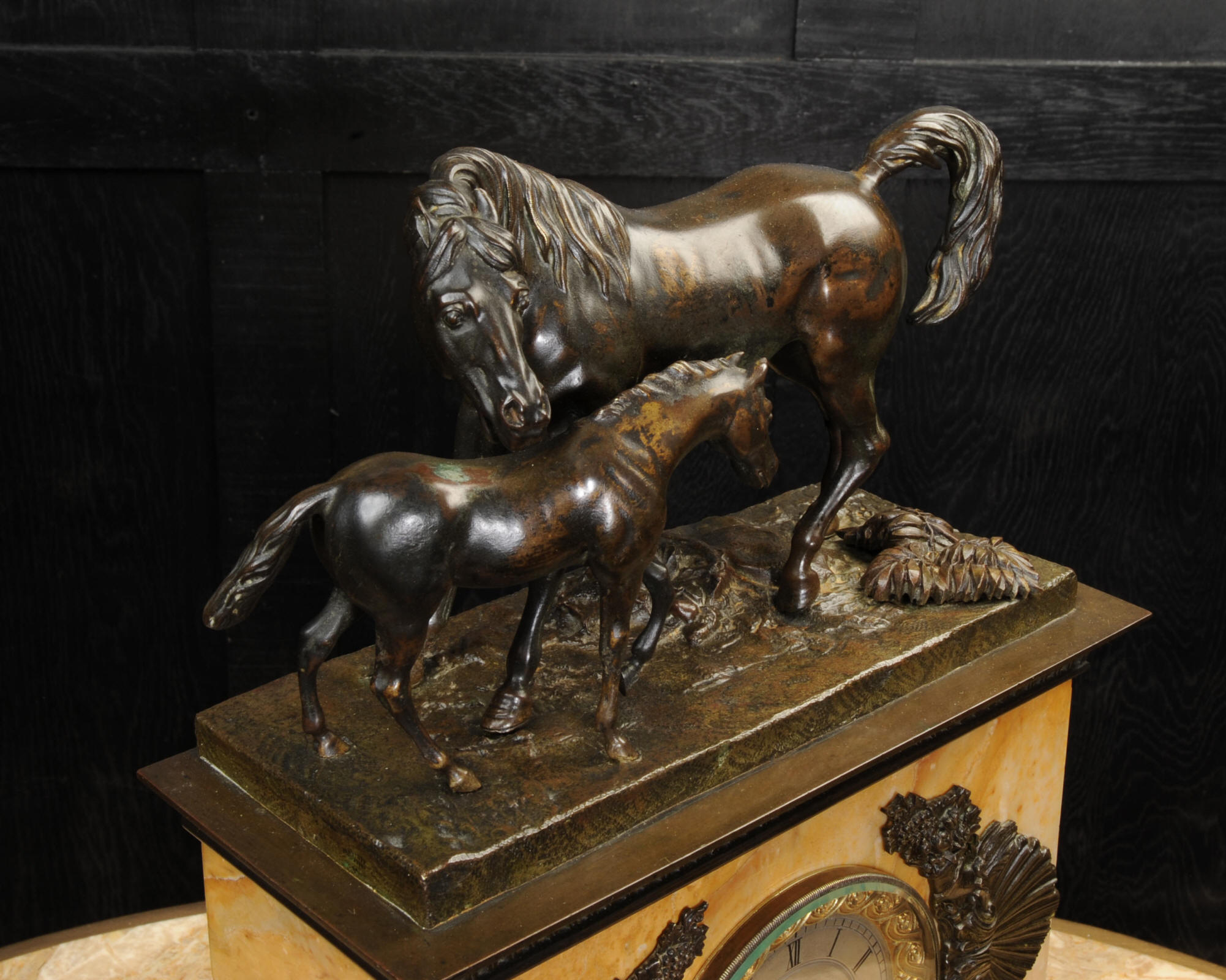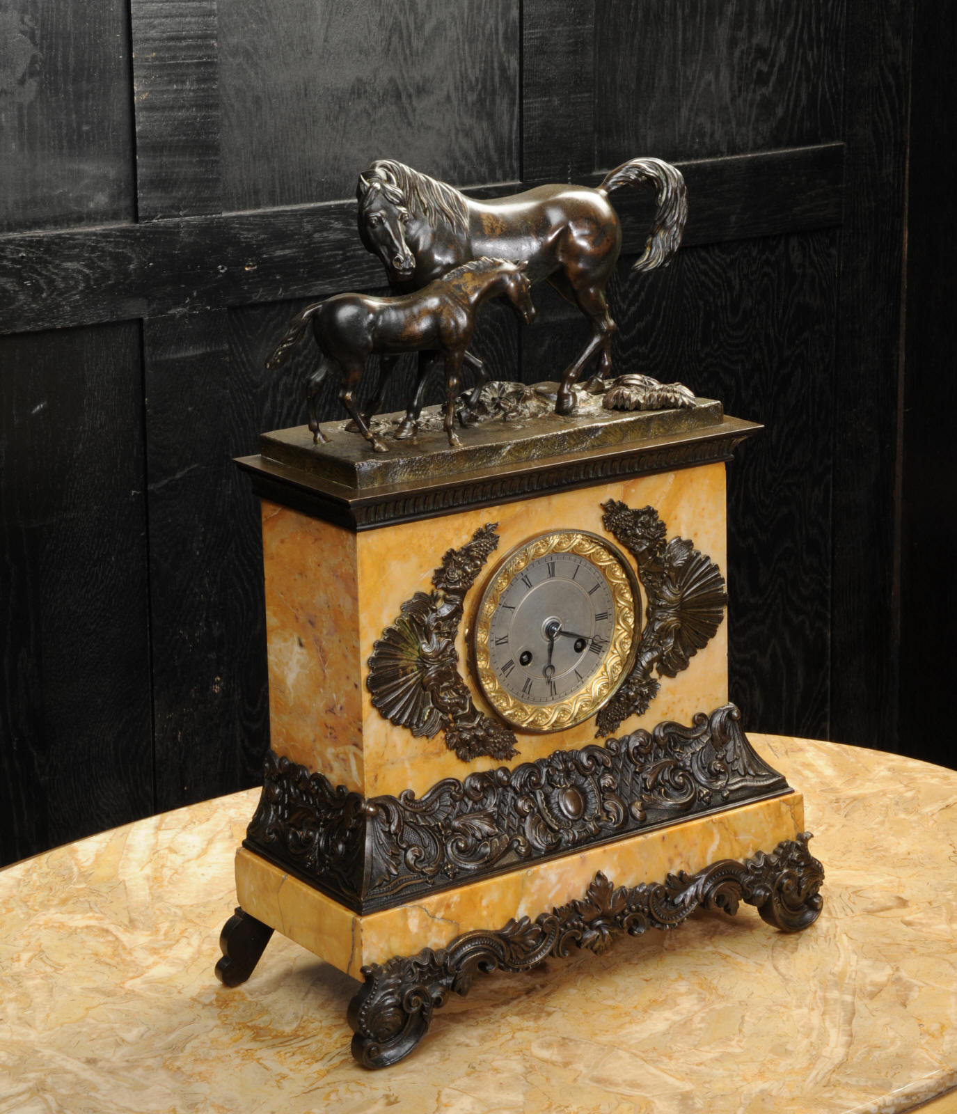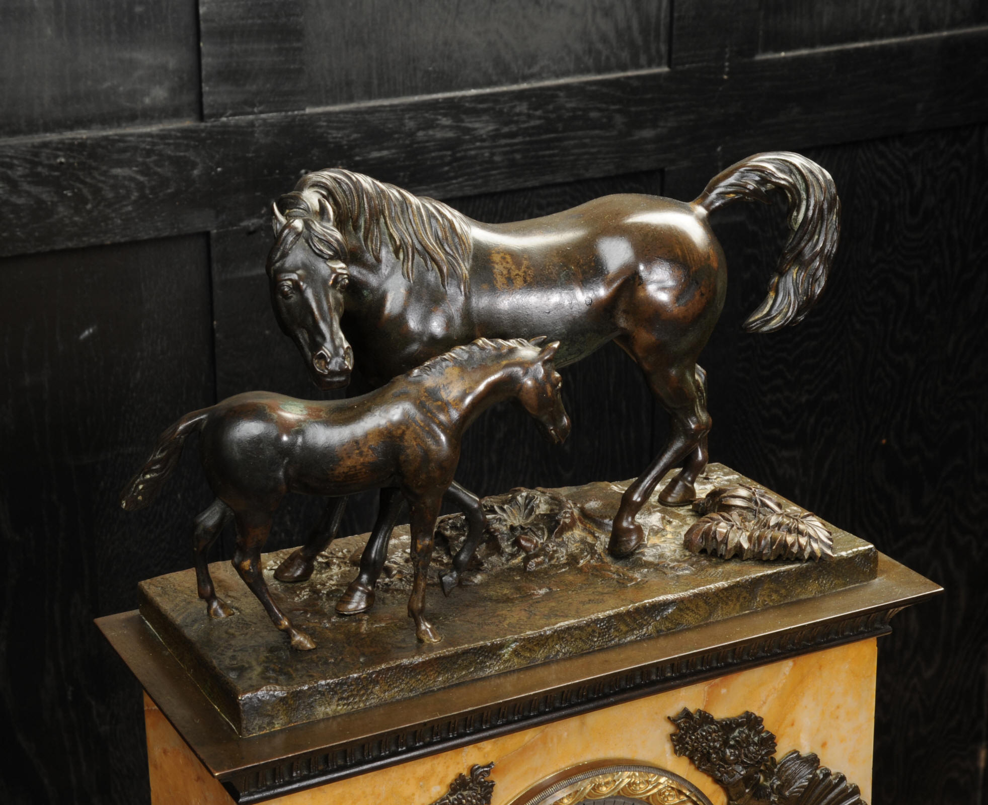 The dial is silvered bronze with a gilt bronze surround and is complete with original fine blued steel hands. The original rear bezel is also glazed and has a silvered sight ring. The serial number 150 is marked on the front and rear bezel as well as the movement. The French movement is of high quality and is in excellent clean and running condition having been fully overhauled by our clockmaker. It is an early movement design with silk suspension and hammer stop spring. Pendulum is a replacement. It runs for 8 days and strikes the hours and halves on a bell. A video clip is available on request.