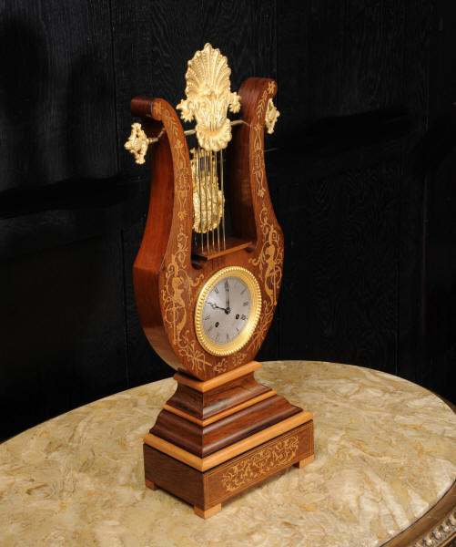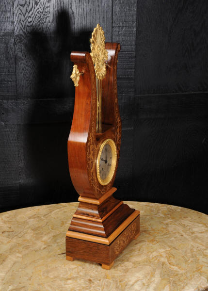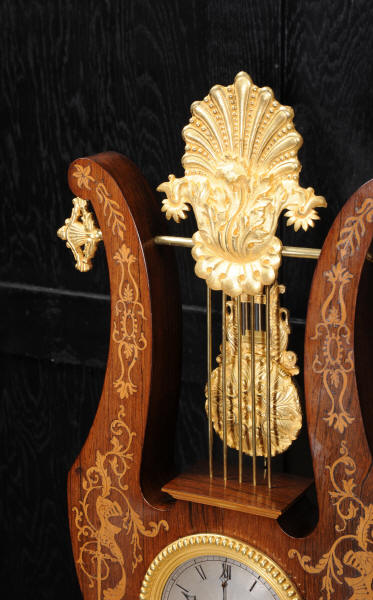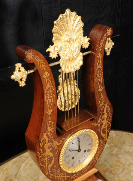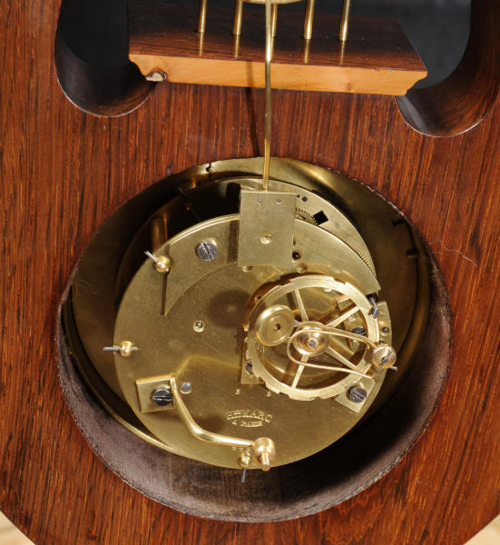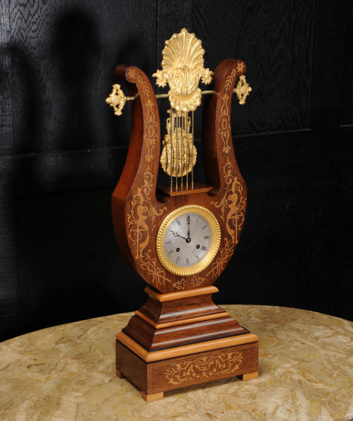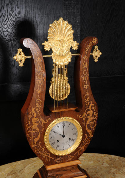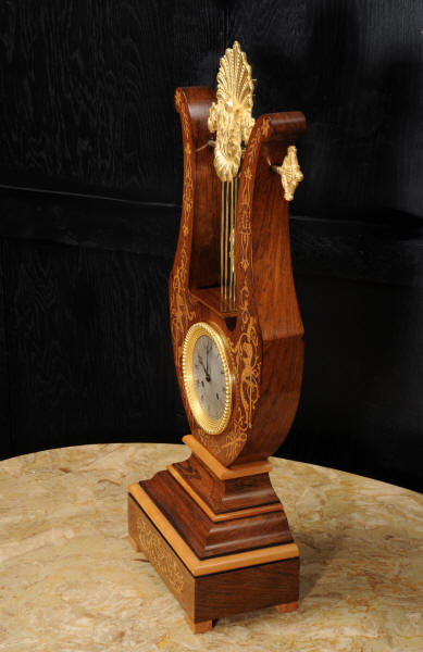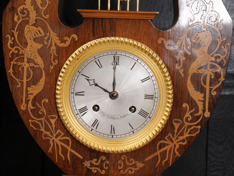 Marquetry is of stylised foliage and heraldic motifs and the ormolu is finely modelled with acanthus. The dial is silvered bronze with fine engine turning and is engraved with roman numerals and the Henri Marc signature. It is complete with original finely cut and blued steel hands. The French movement is by Henri Marc and is in excellent clean and running condition having been fully overhauled by our clockmaker. Ormolu pendulum is original. It runs for 8 days and strikes the hours and halves on a bell. Click the video clip below to hear the bell and watch the clock running! Condition of the case is excellent, the veneer is in very good condition with some slight marks and a small loss to the rear. Ormolu is clean and bright. Dial is in excellent condition.