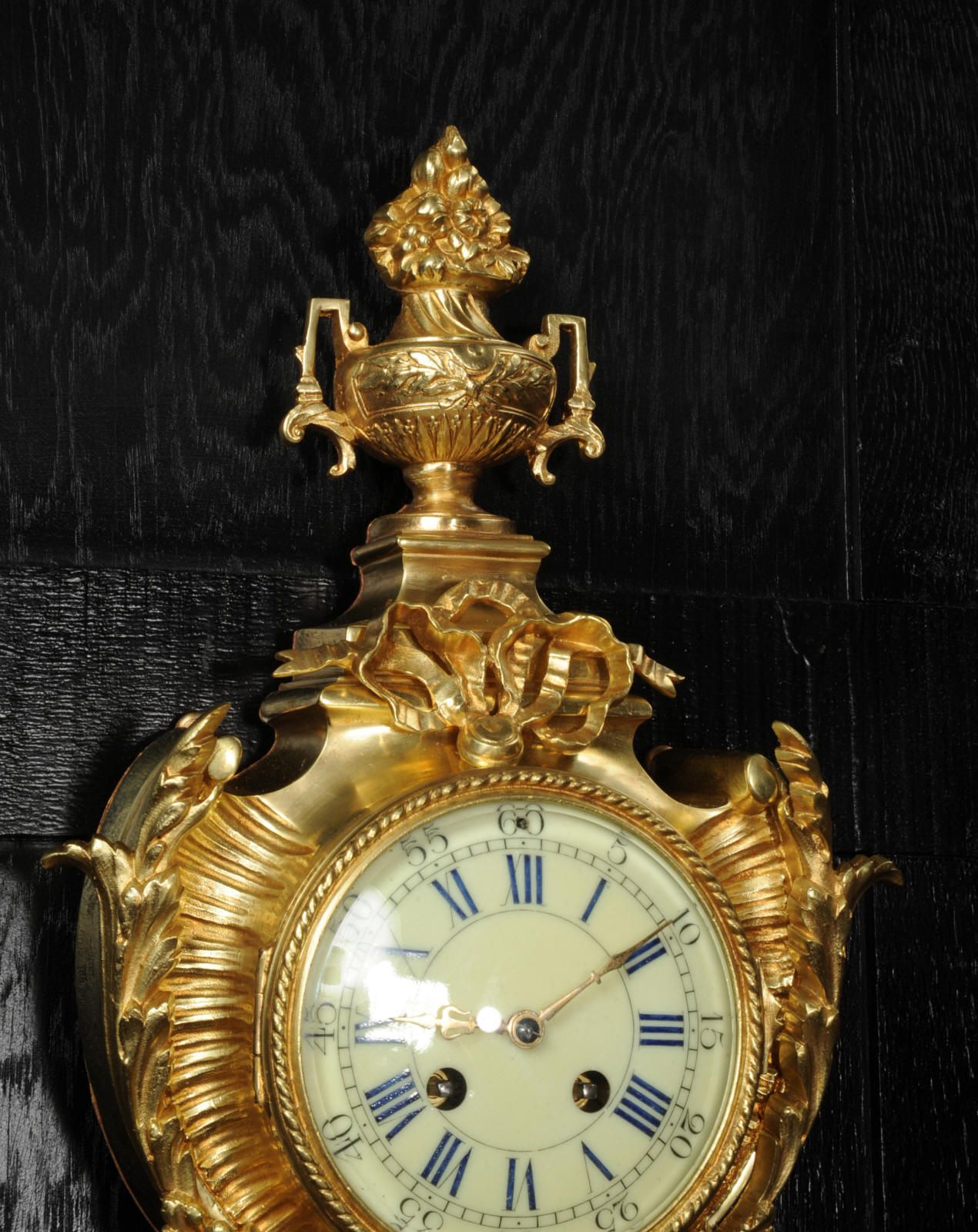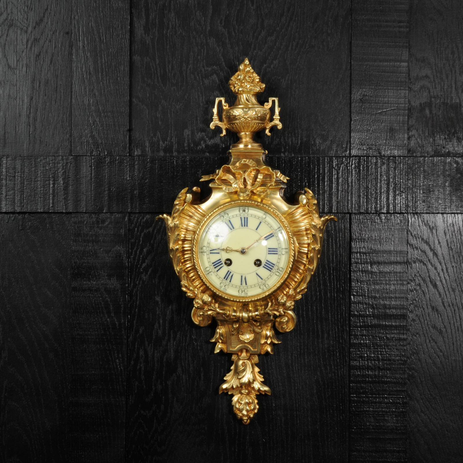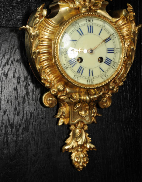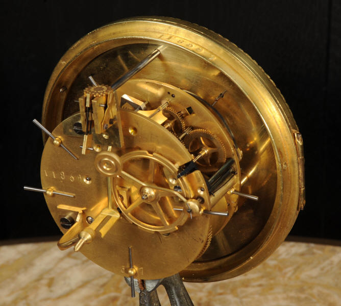 The dial cream porcelain enamel with blue lettering and separate minute ring. It is complete with it's original hands and convex glass. The French movement is of high quality and is in excellent clean and running condition having been fully overhauled by our clockmaker. Pendulum is original. It runs for 8 days and strikes the hours and halves on a bell. Click the video below to hear the bell and watch the clock running.
