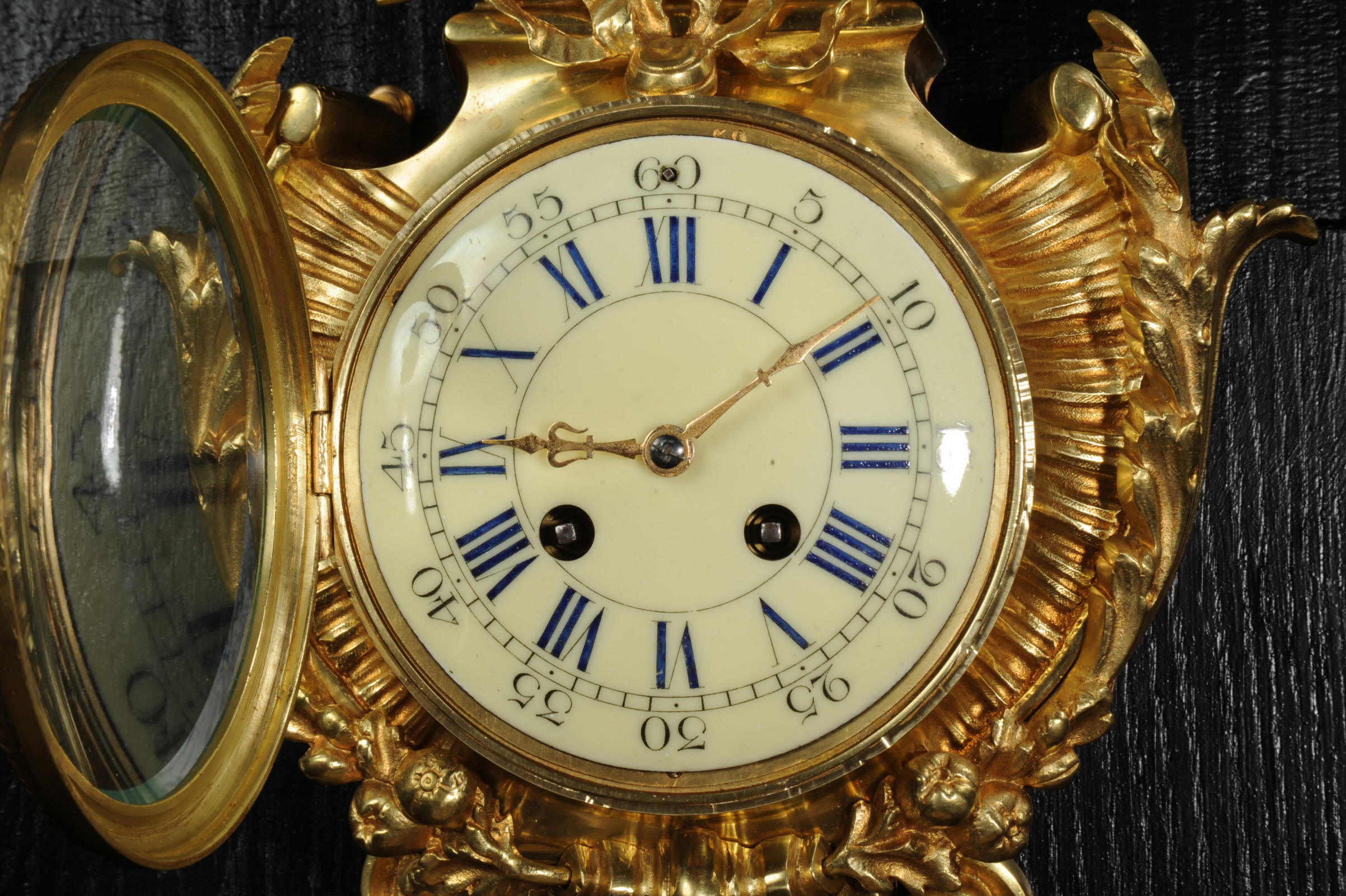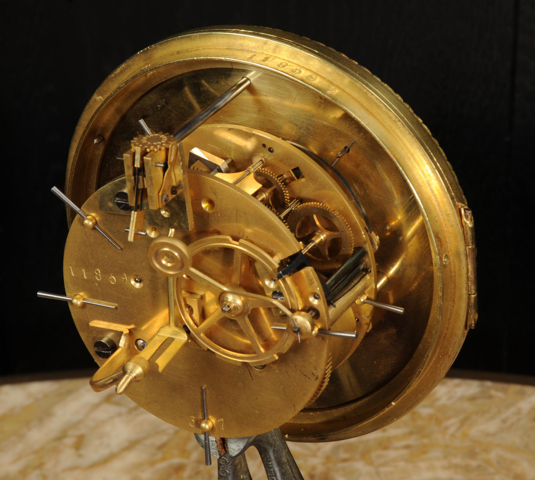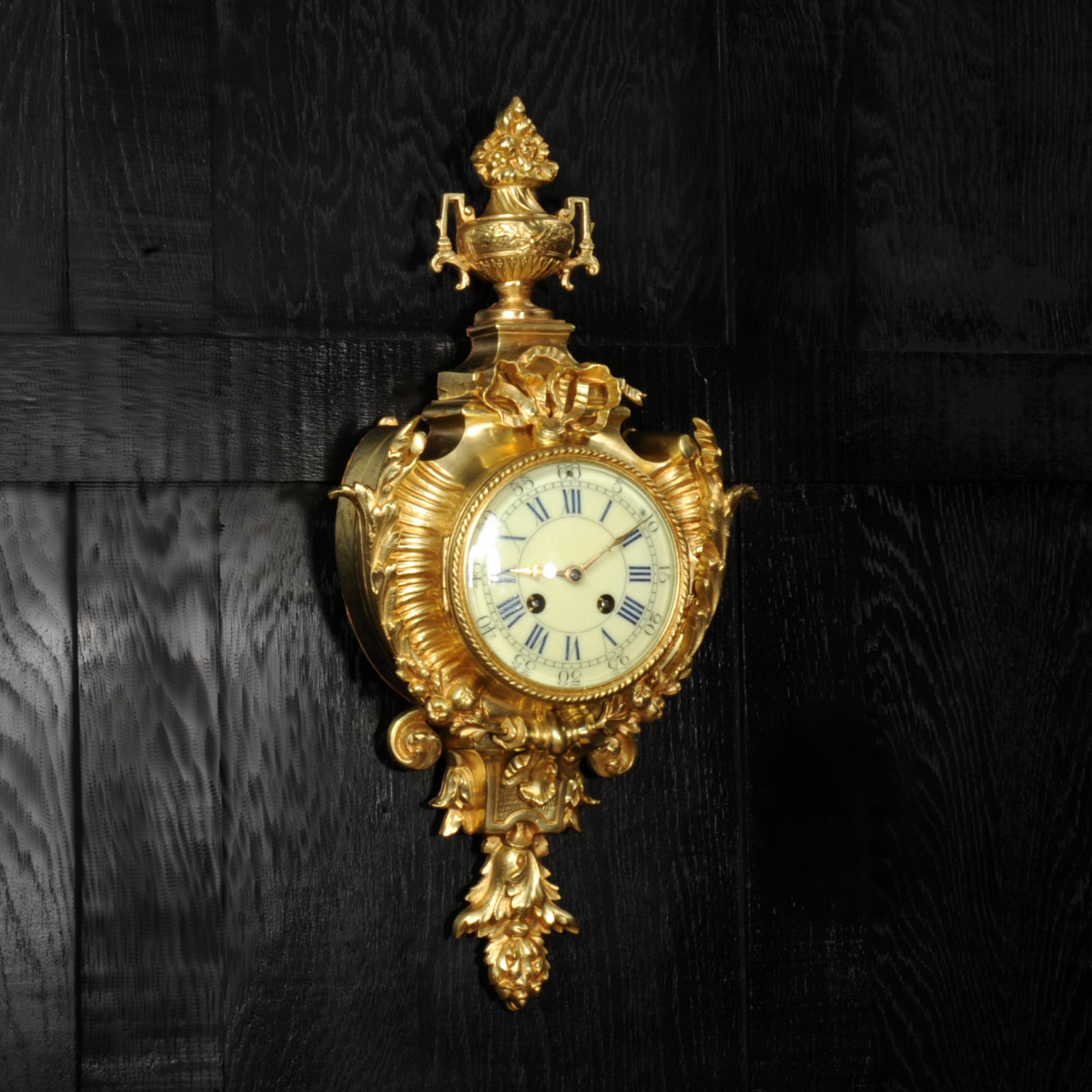 The dial cream porcelain enamel with blue lettering and separate minute ring. It is complete with it's original hands and convex glass. The French movement is of high quality and is in excellent clean and running condition having been fully overhauled by our clockmaker. Pendulum is original. It runs for 8 days and strikes the hours and halves on a bell. Click the video below to hear the bell and watch the clock running.