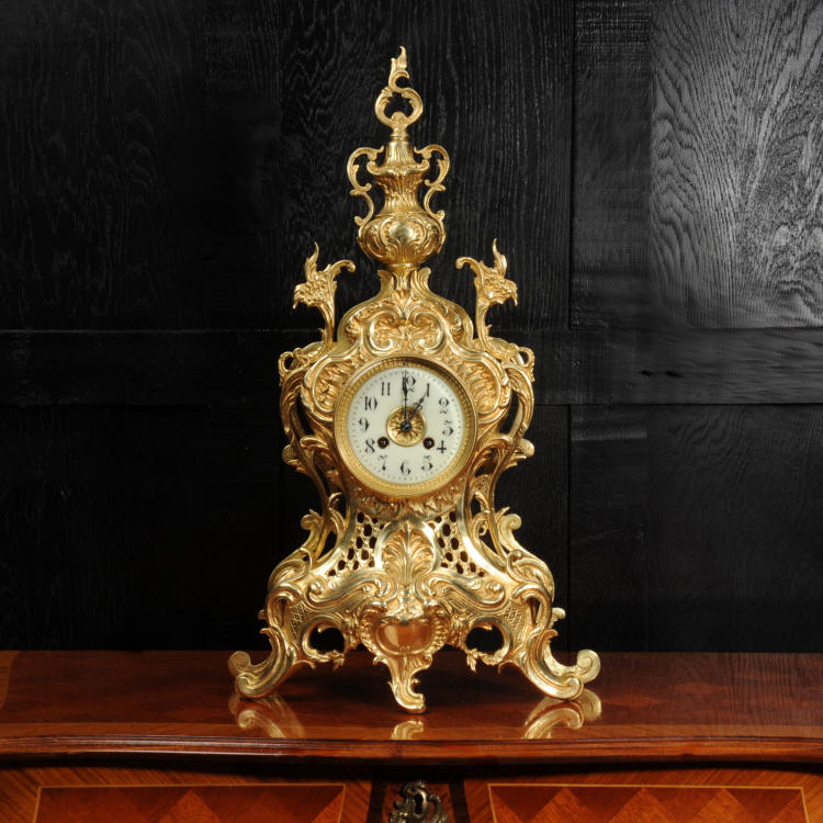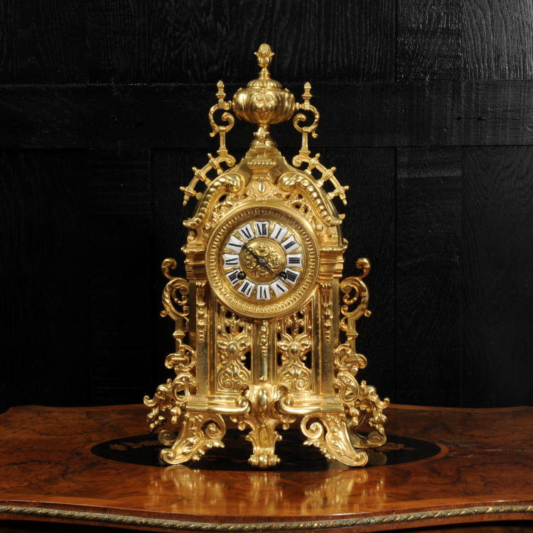 and Fine Bronze, Ormolu and Specimen Marble Clock with Cupid