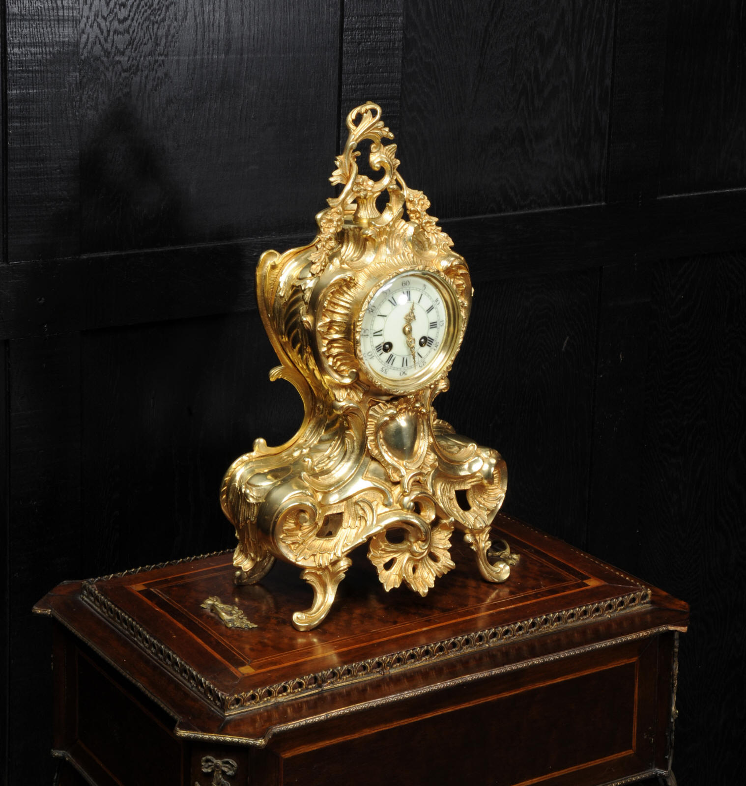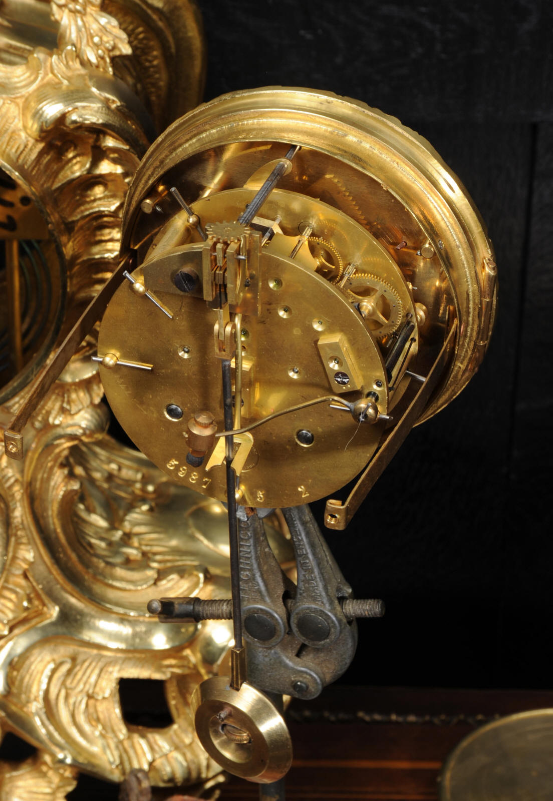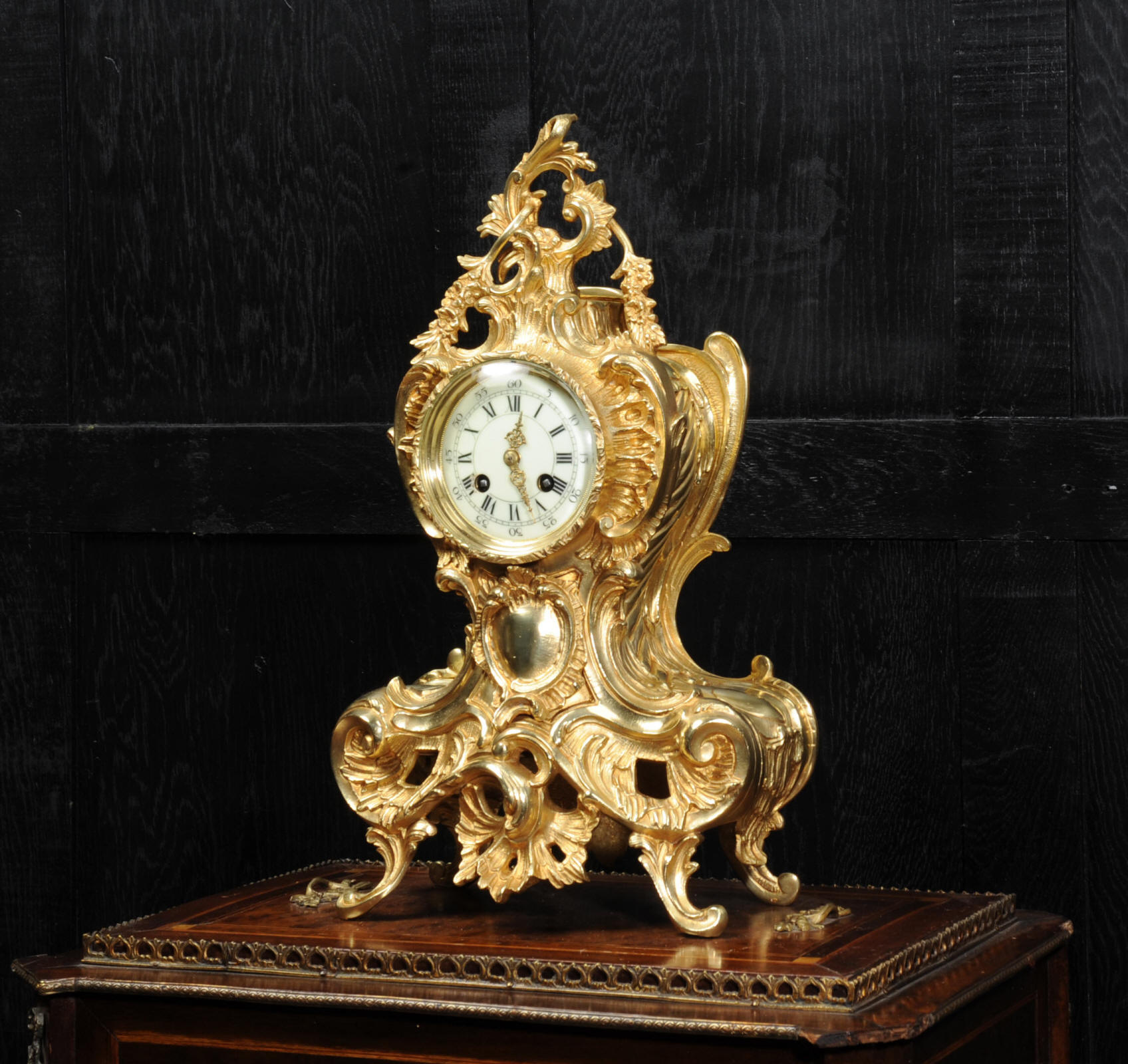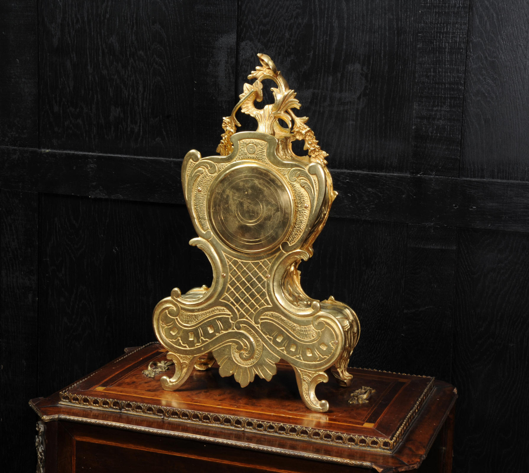 The French movement is of high quality and is by Malet et Cie of Paris. It is in excellent clean and running condition having been fully overhauled by our clockmaker. Pendulum is original. It runs for 8 days and strikes the hours and halves on a sonorous coiled gong. Click the video clip below to hear the gong and watch the clock running! The Paris clockmaker Malet et Cie is listed in Tardy Dictionnaire Des Horologers as working in the St-Antoine Arrondissement of Paris from 1850. Condition of the case is excellent, the original gilding is beautifully clean and bright with just occasional discolouration/tarnish and wear. The dial is also in excellent condition just some tiny nibbles to the winding holes.