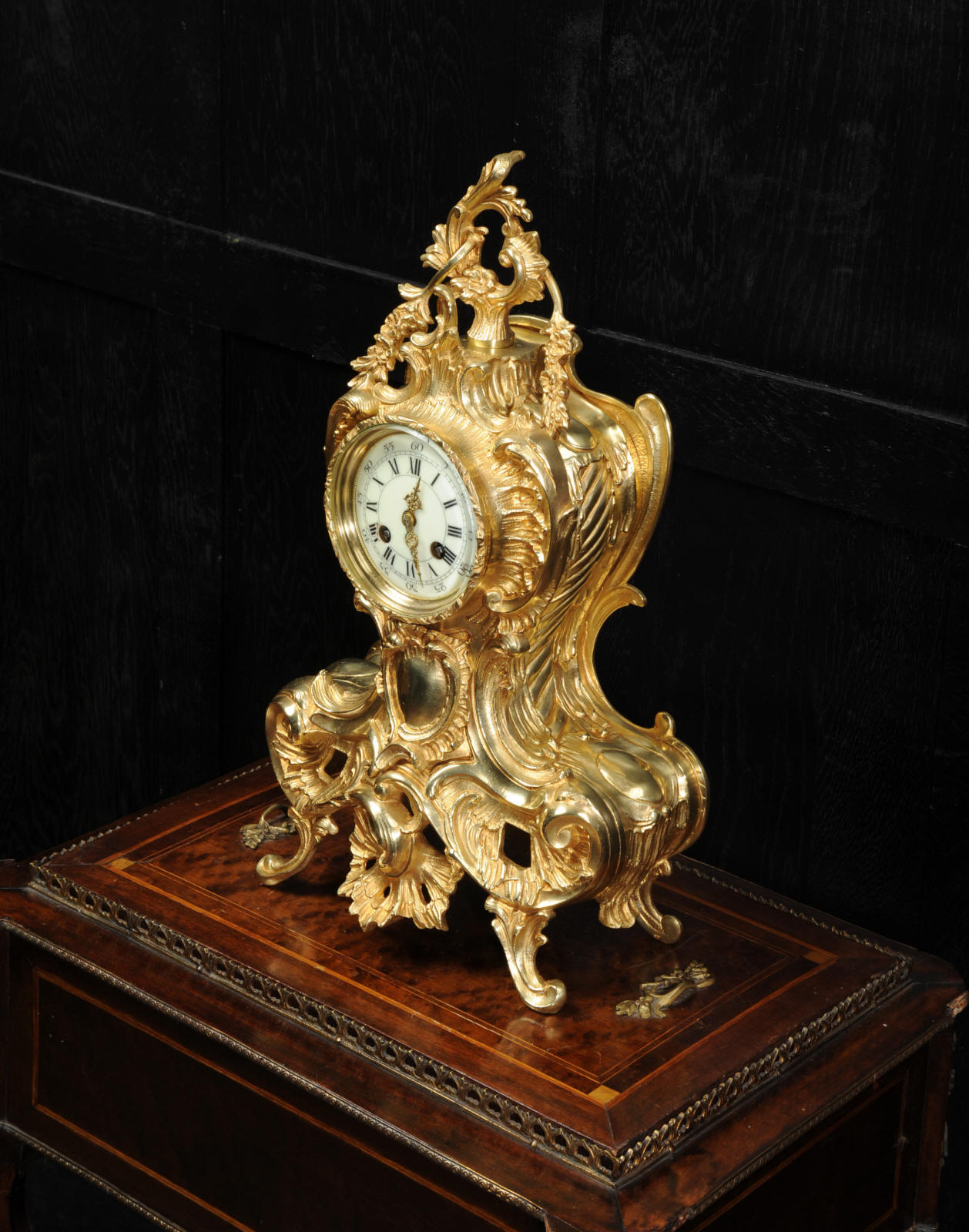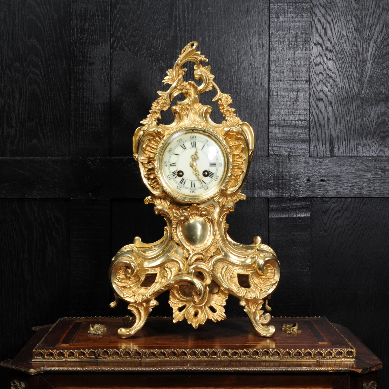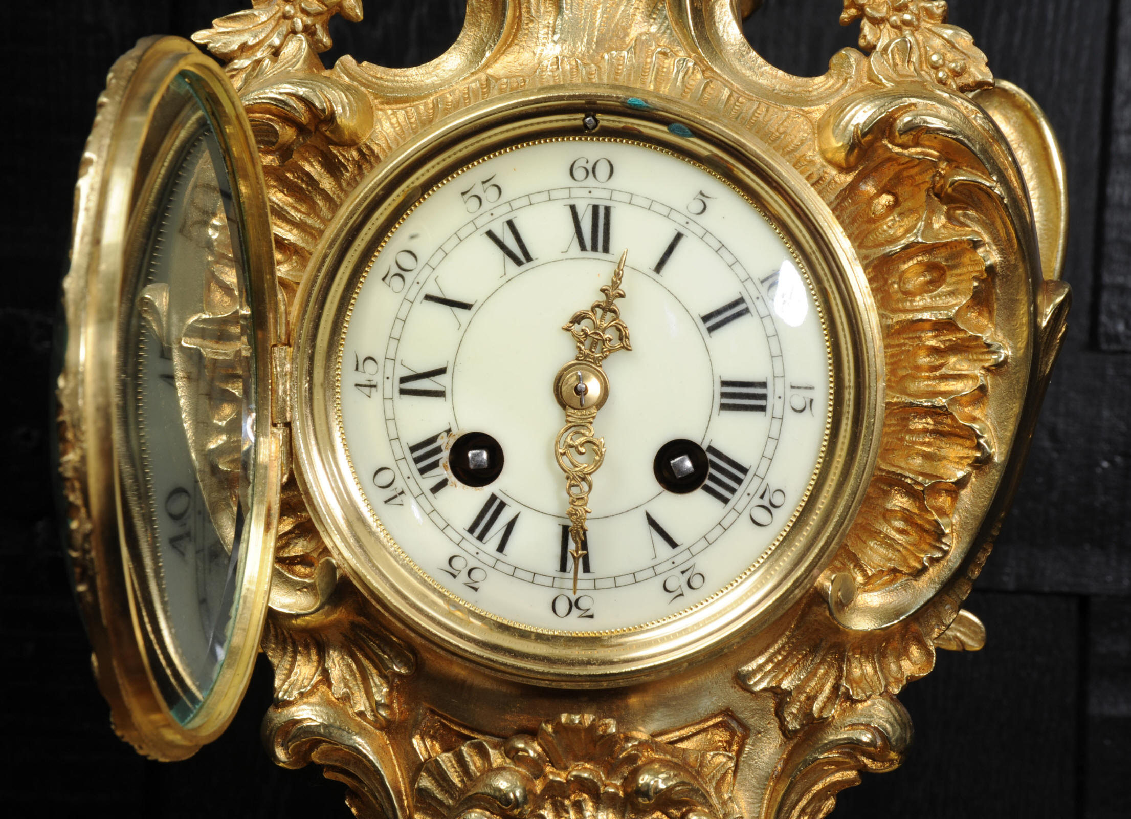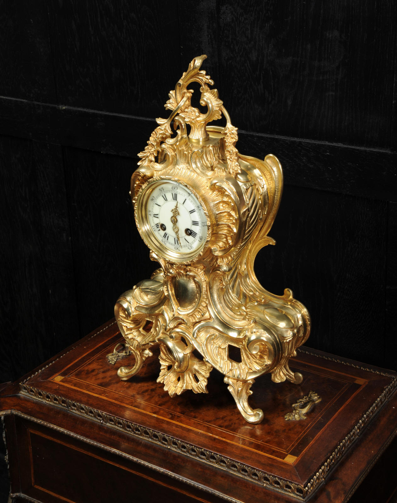 The French movement is of high quality and is by Malet et Cie of Paris. It is in excellent clean and running condition having been fully overhauled by our clockmaker. Pendulum is original. It runs for 8 days and strikes the hours and halves on a sonorous coiled gong. Click the video clip below to hear the gong and watch the clock running! The Paris clockmaker Malet et Cie is listed in Tardy Dictionnaire Des Horologers as working in the St-Antoine Arrondissement of Paris from 1850. Condition of the case is excellent, the original gilding is beautifully clean and bright with just occasional discolouration/tarnish and wear. The dial is also in excellent condition just some tiny nibbles to the winding holes.