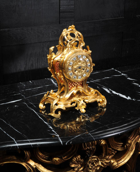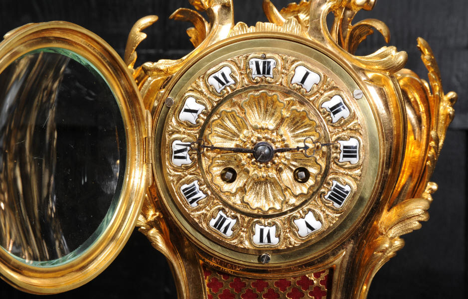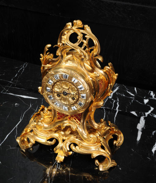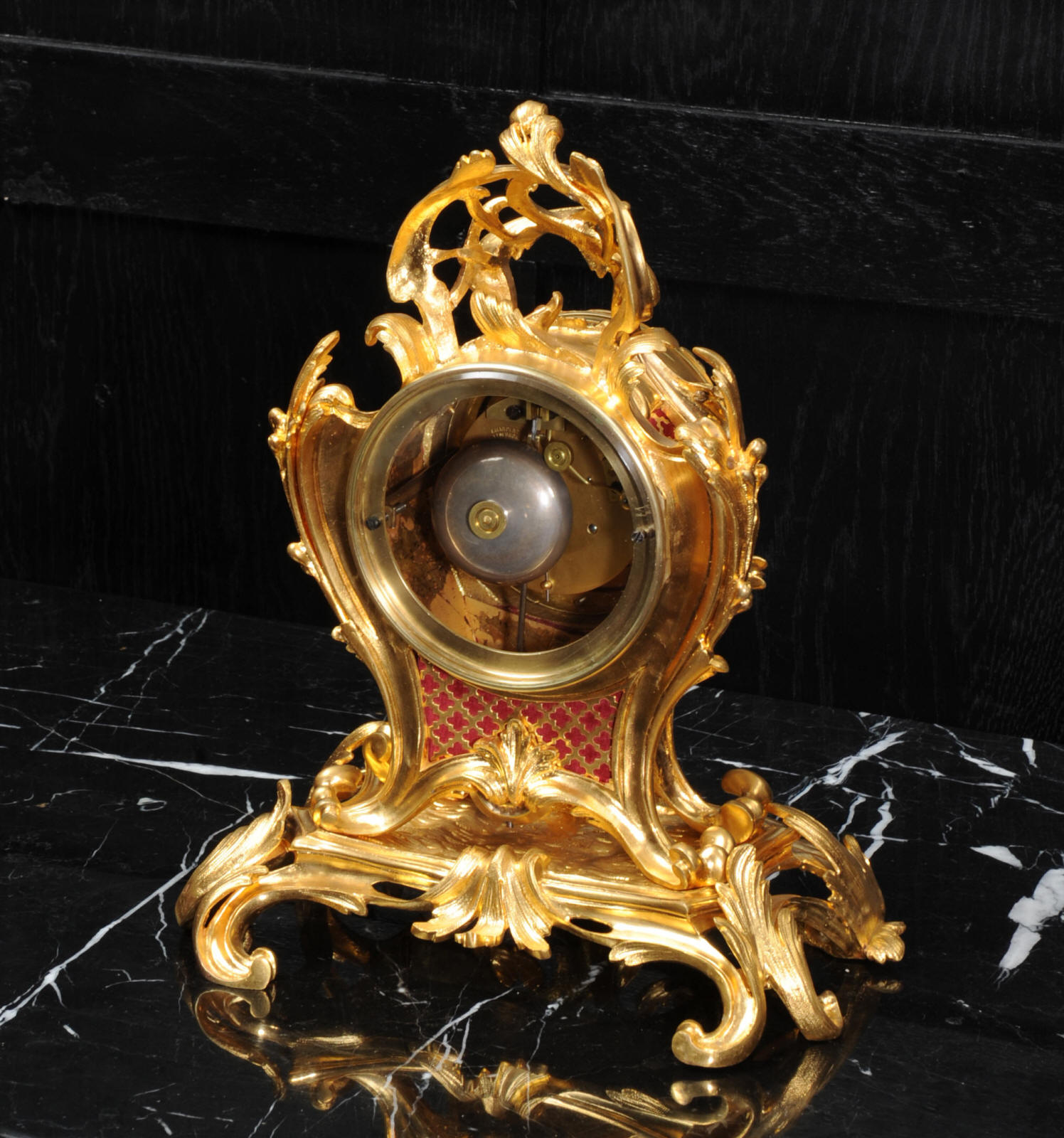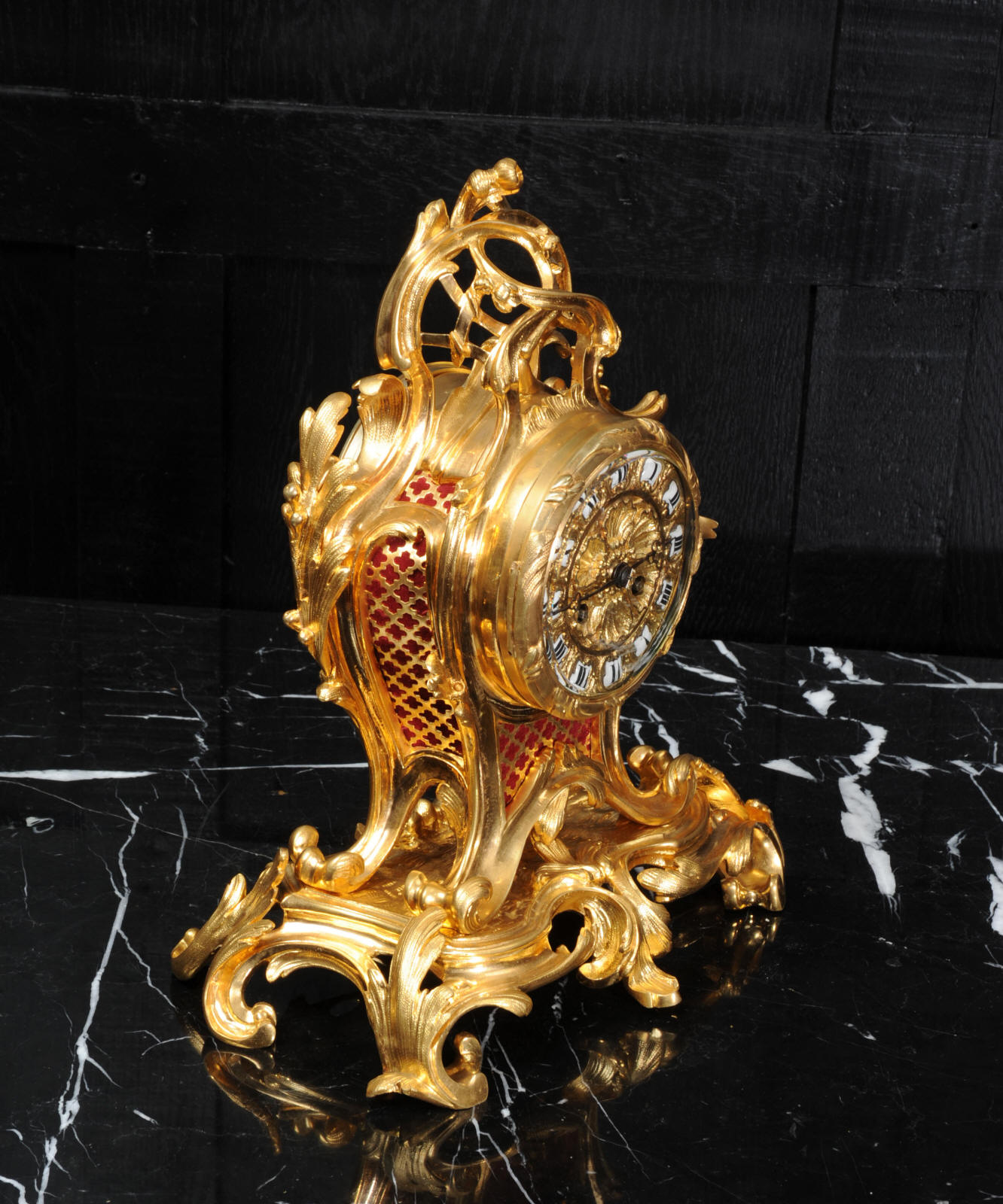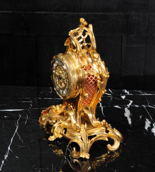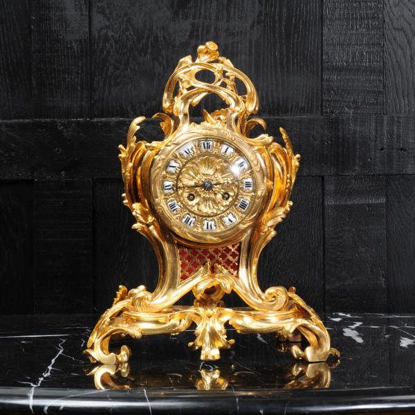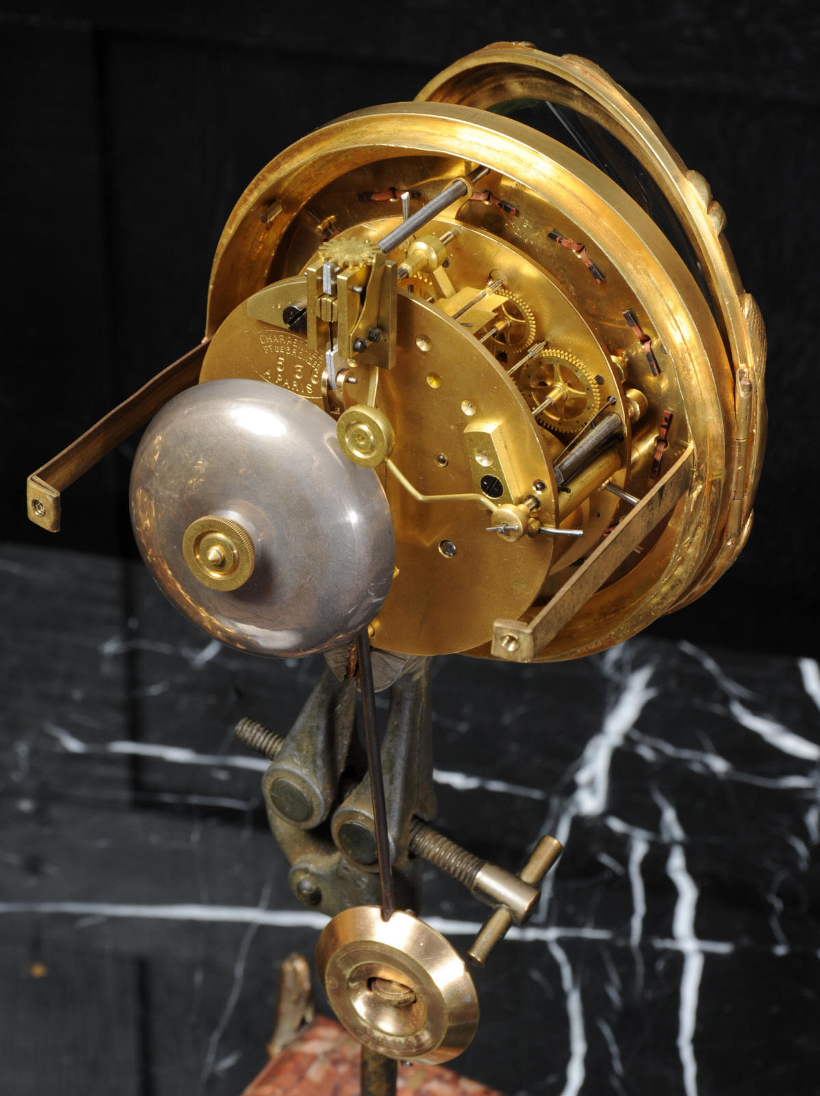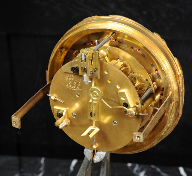 The dial is complete with original blued steel hands. the rear door is glazed to allow the movement to be seen, perhaps as a reflection in a mirror. The French movement is of high quality and is in excellent clean and running condition having been fully overhauled by our clockmaker. Pendulum is an old replacement. It runs for 8 days and strikes the hours and halves on a bell. Click the video clip below to hear the bell and watch the clock running! Charpentier & Cie is listed in Tardy Dictionnaire Des Horologers. Charpentier began making bronze mounts in Paris (rue d'Orléans au Marais) in 1834. He exhibited at the Exposition Nationale des Produits de l'agriculture et de l'industrie of 1849, where he was awarded a silver medal and later at the Paris International Exhibition of 1855 where he won a Médaille de première classe for his bronze casts of sculptures by Fratin, Buhaut and Moreau. At the London 1862 International Exhibtion he again received a First Classe Medal for a magnificent pair of torchères, also in the Neo-Gréc taste, after models by A.E. Carrier-Belleuse. Charpentier & Cie was located at 8, Rue Charlot, Paris in 1860, and was later known as Lemerle-Charpentier & Cie, circa 1870 to 1890. Condition of the case is excellent, the gilding is beautifully clean and bright with some wear and discolouration. The dial is also in excellent condition.
