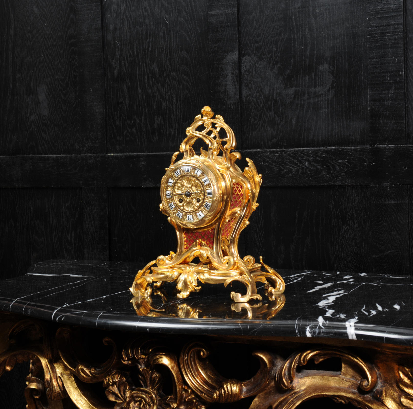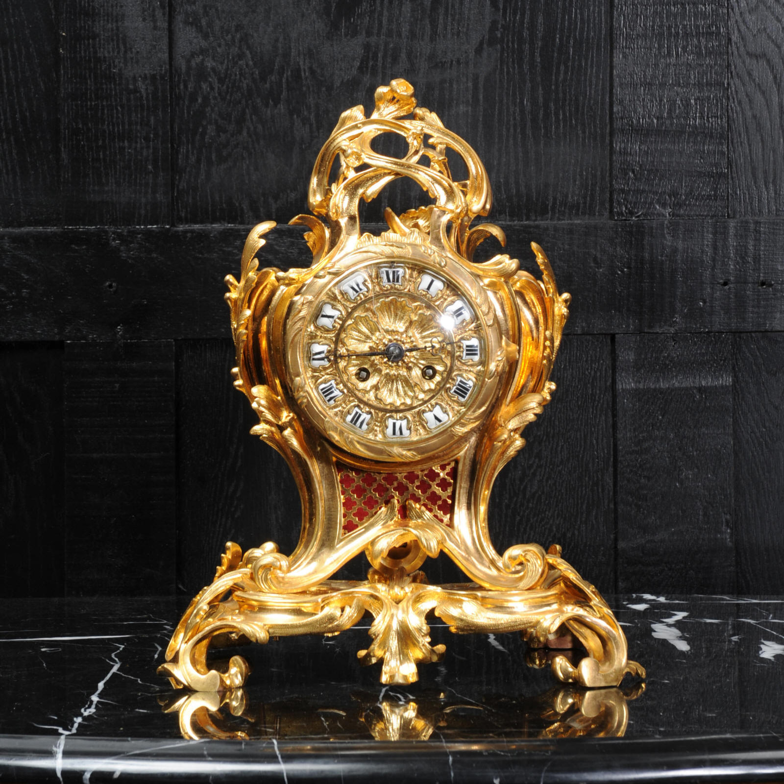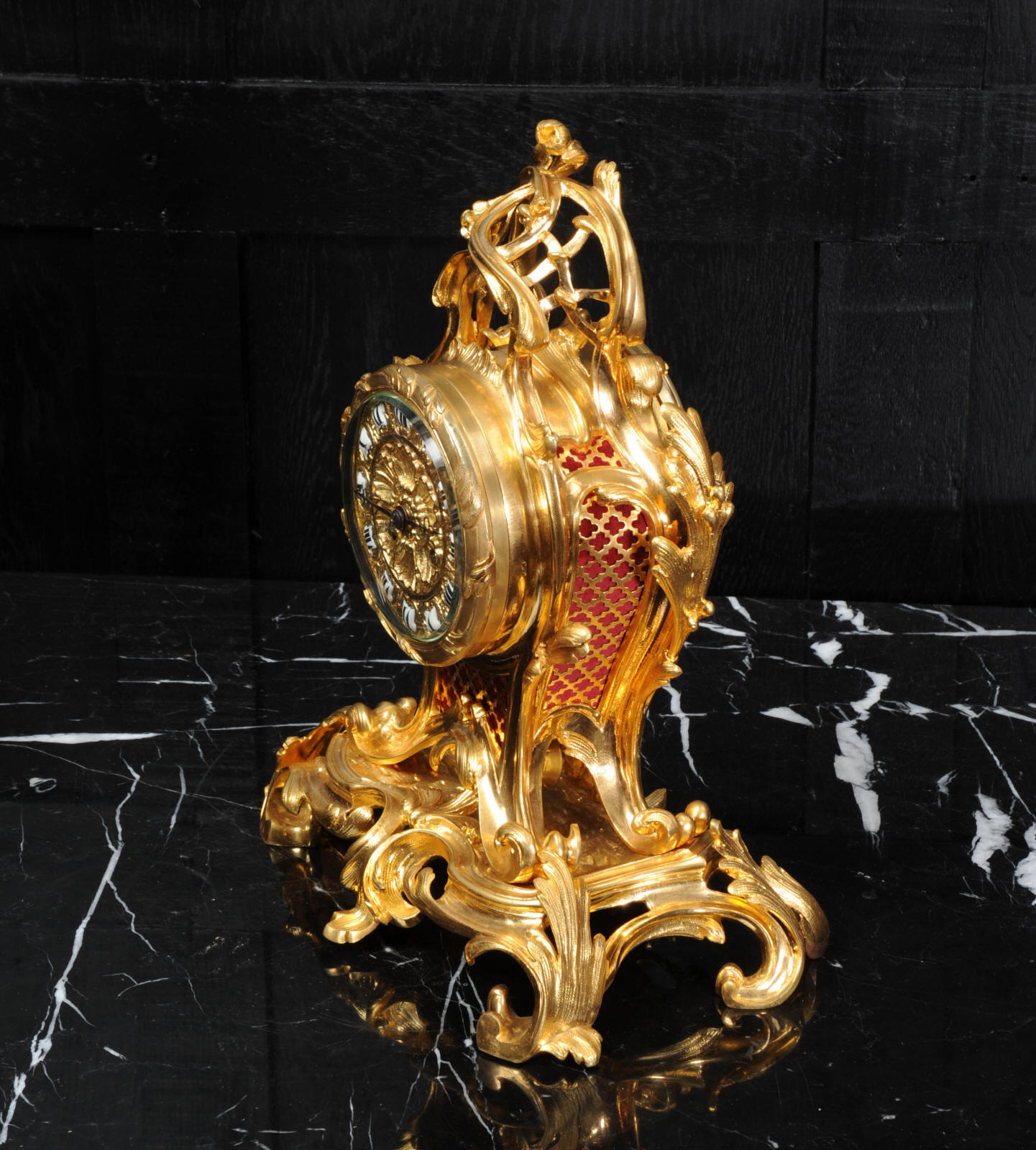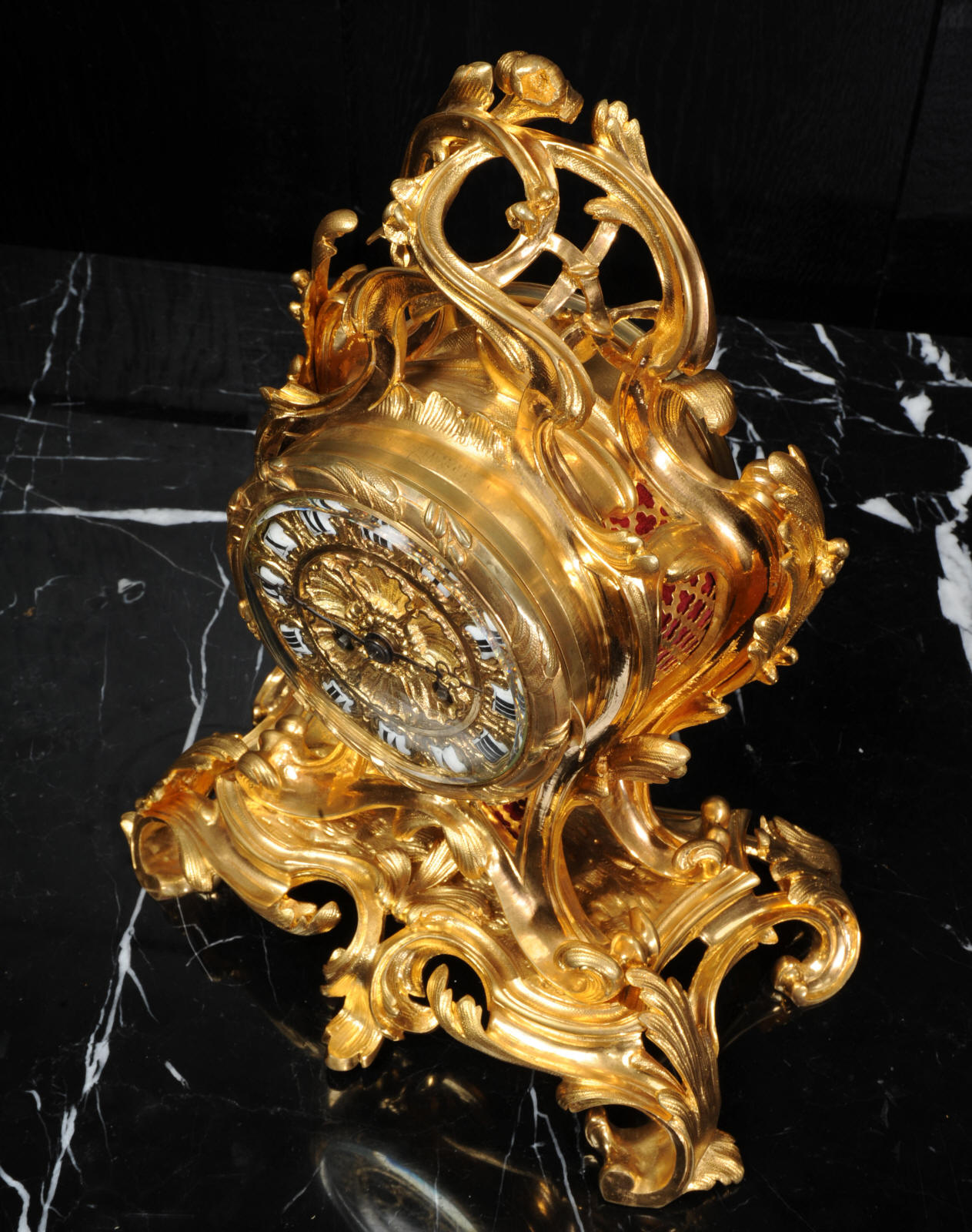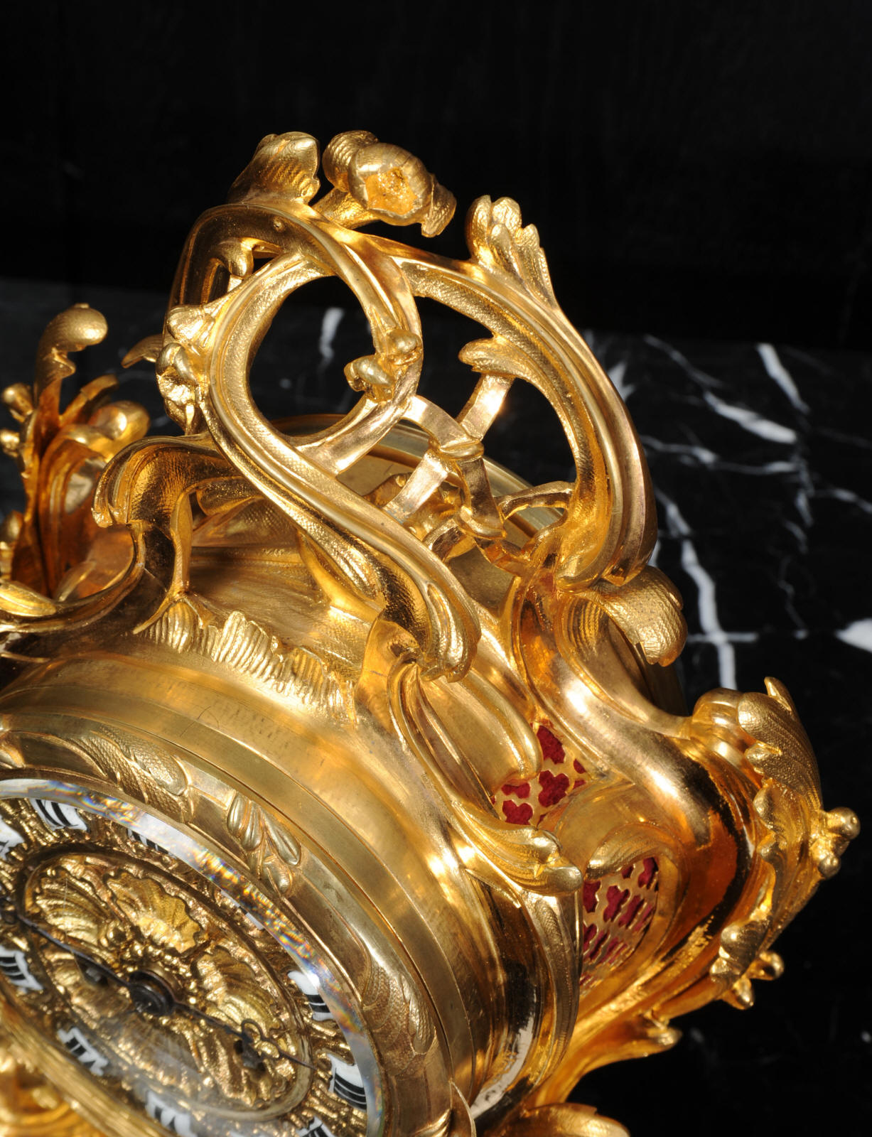 The dial is complete with original blued steel hands. the rear door is glazed to allow the movement to be seen, perhaps as a reflection in a mirror. The French movement is of high quality and is in excellent clean and running condition having been fully overhauled by our clockmaker. Pendulum is an old replacement. It runs for 8 days and strikes the hours and halves on a bell. Click the video clip below to hear the bell and watch the clock running! Charpentier & Cie is listed in Tardy Dictionnaire Des Horologers. Charpentier began making bronze mounts in Paris (rue d'Orléans au Marais) in 1834. He exhibited at the Exposition Nationale des Produits de l'agriculture et de l'industrie of 1849, where he was awarded a silver medal and later at the Paris International Exhibition of 1855 where he won a Médaille de première classe for his bronze casts of sculptures by Fratin, Buhaut and Moreau. At the London 1862 International Exhibtion he again received a First Classe Medal for a magnificent pair of torchères, also in the Neo-Gréc taste, after models by A.E. Carrier-Belleuse. Charpentier & Cie was located at 8, Rue Charlot, Paris in 1860, and was later known as Lemerle-Charpentier & Cie, circa 1870 to 1890. Condition of the case is excellent, the gilding is beautifully clean and bright with some wear and discolouration. The dial is also in excellent condition.