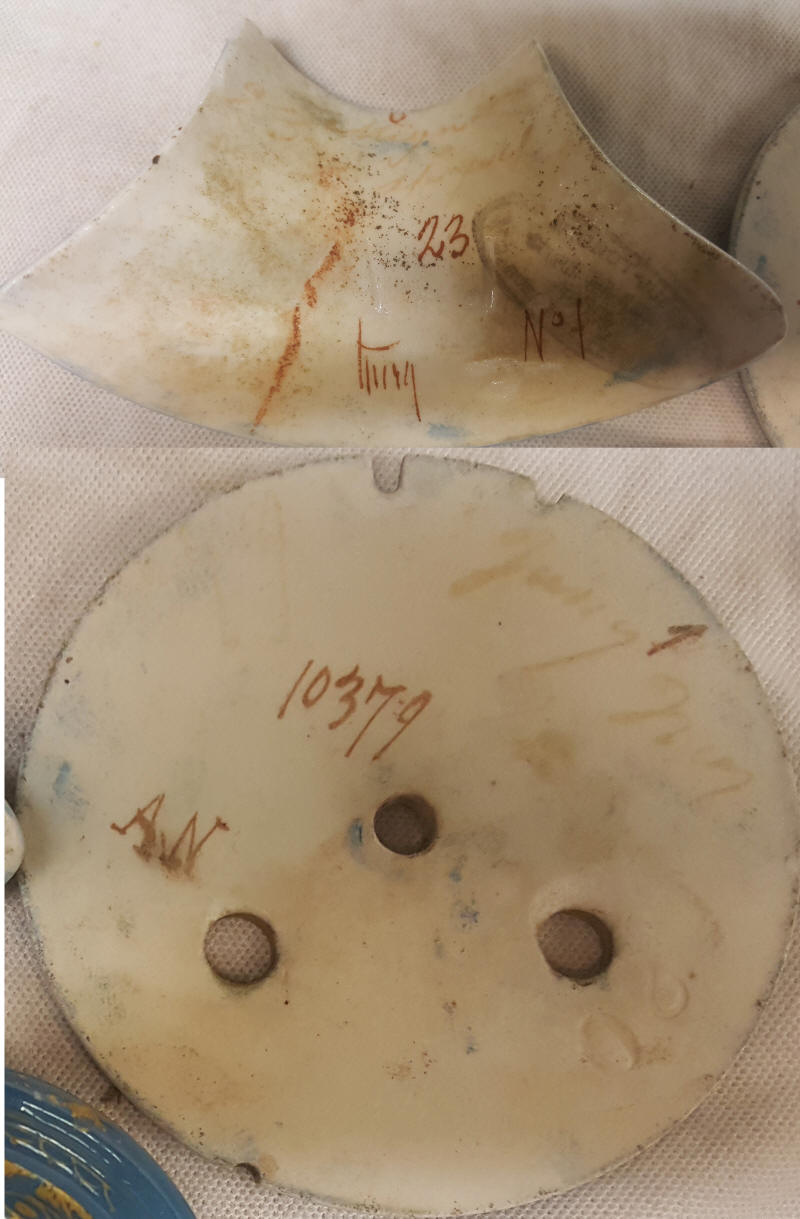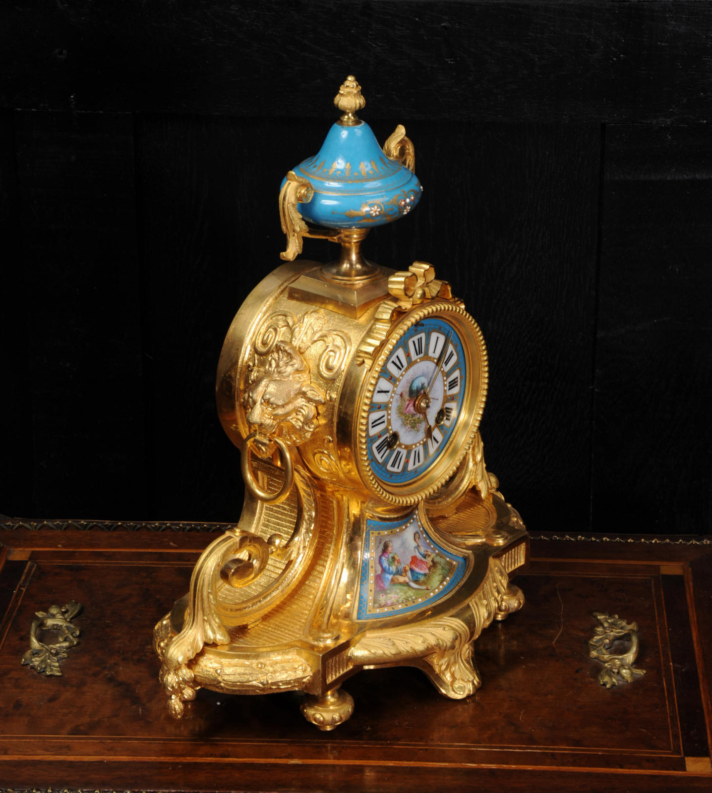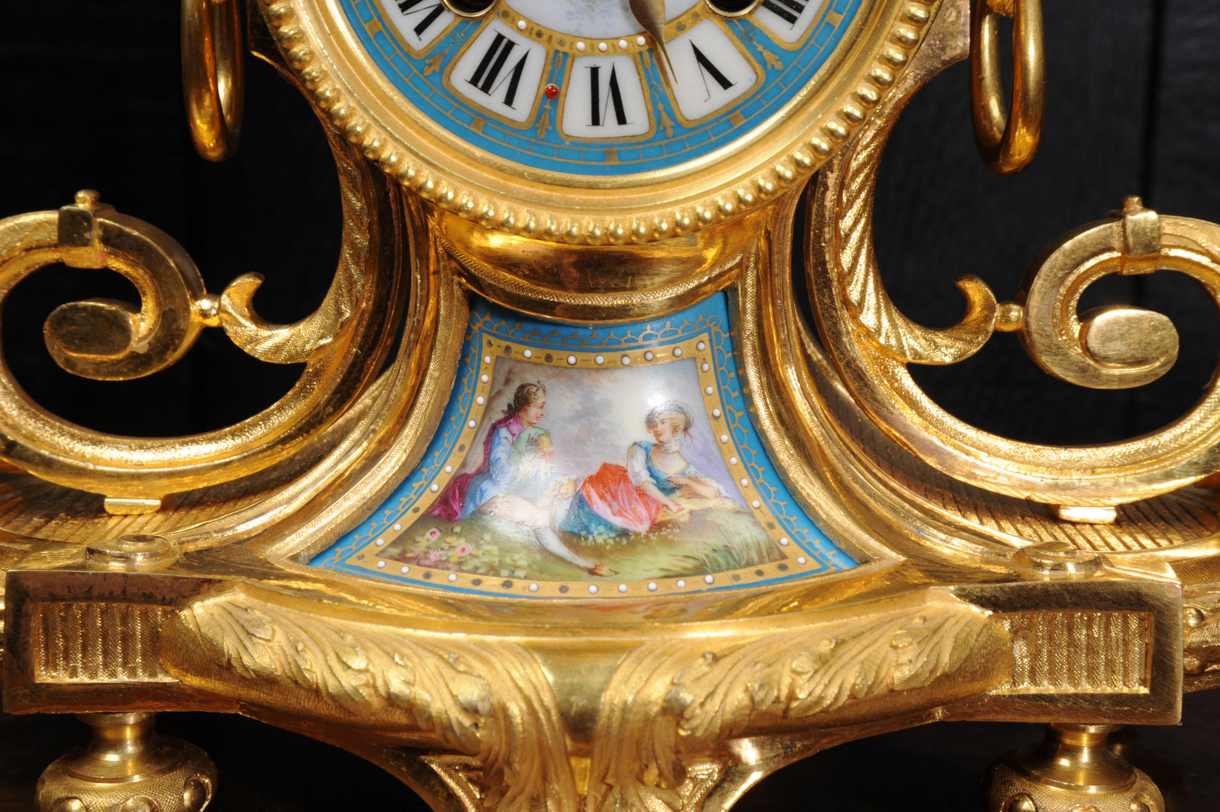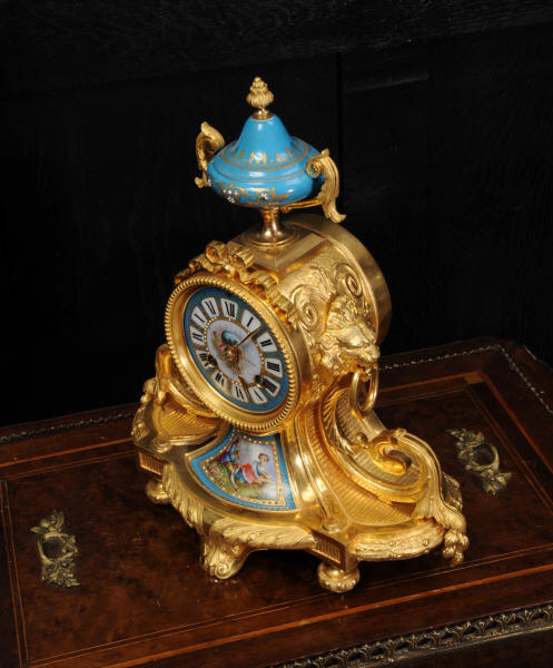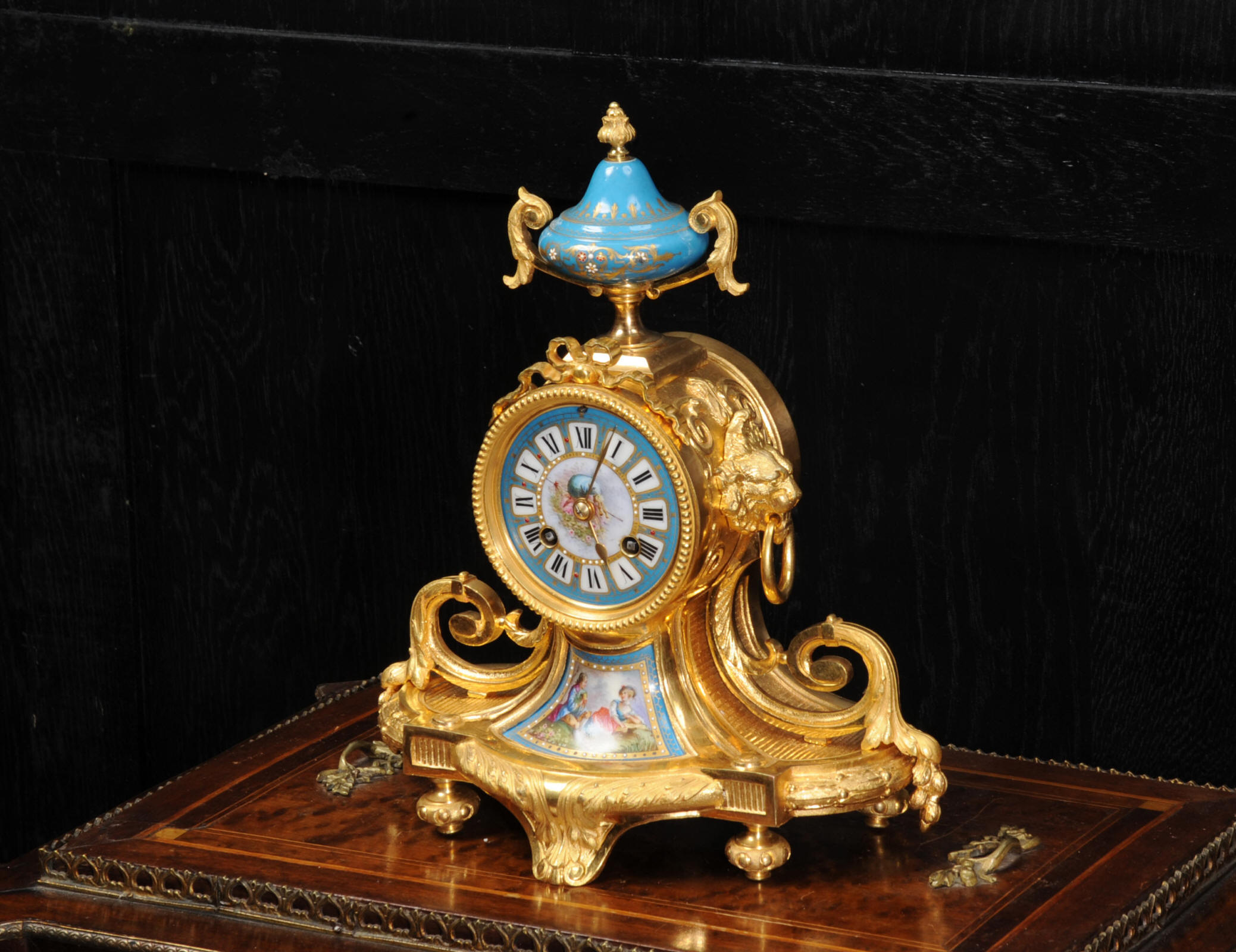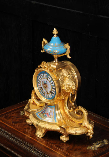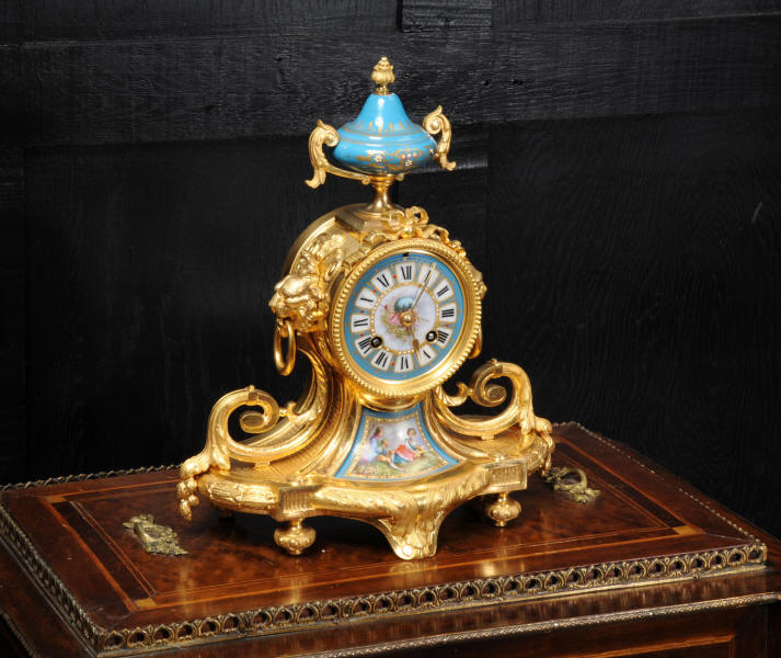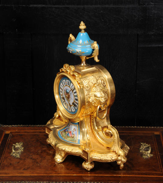 The dial is also porcelain with original finely cut brass hands. To the rear of the porcelain is the artists signature (see the picture below). Please note that this type of clock does not have front or rear glazed bezels. The French movement is of high quality and is in excellent clean and running condition having been fully overhauled by our clockmaker. Pendulum is an old replacement. It runs for 8 days and strikes the hours and halves on a bell. Click the video clip below to hear the bell and watch the clock running! Condition of the case is excellent, the original gilding is beautifully clean and bright with some slight wear. The porcelain is also excellent, slight loss to the overglaze gilt decoration and some losses to some of the applied porcelain 'jewels'.