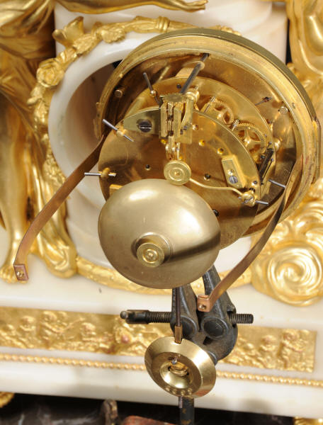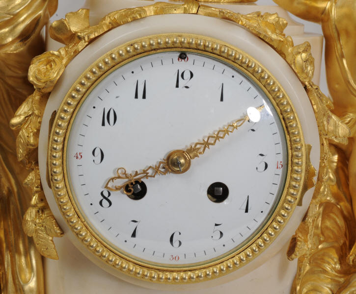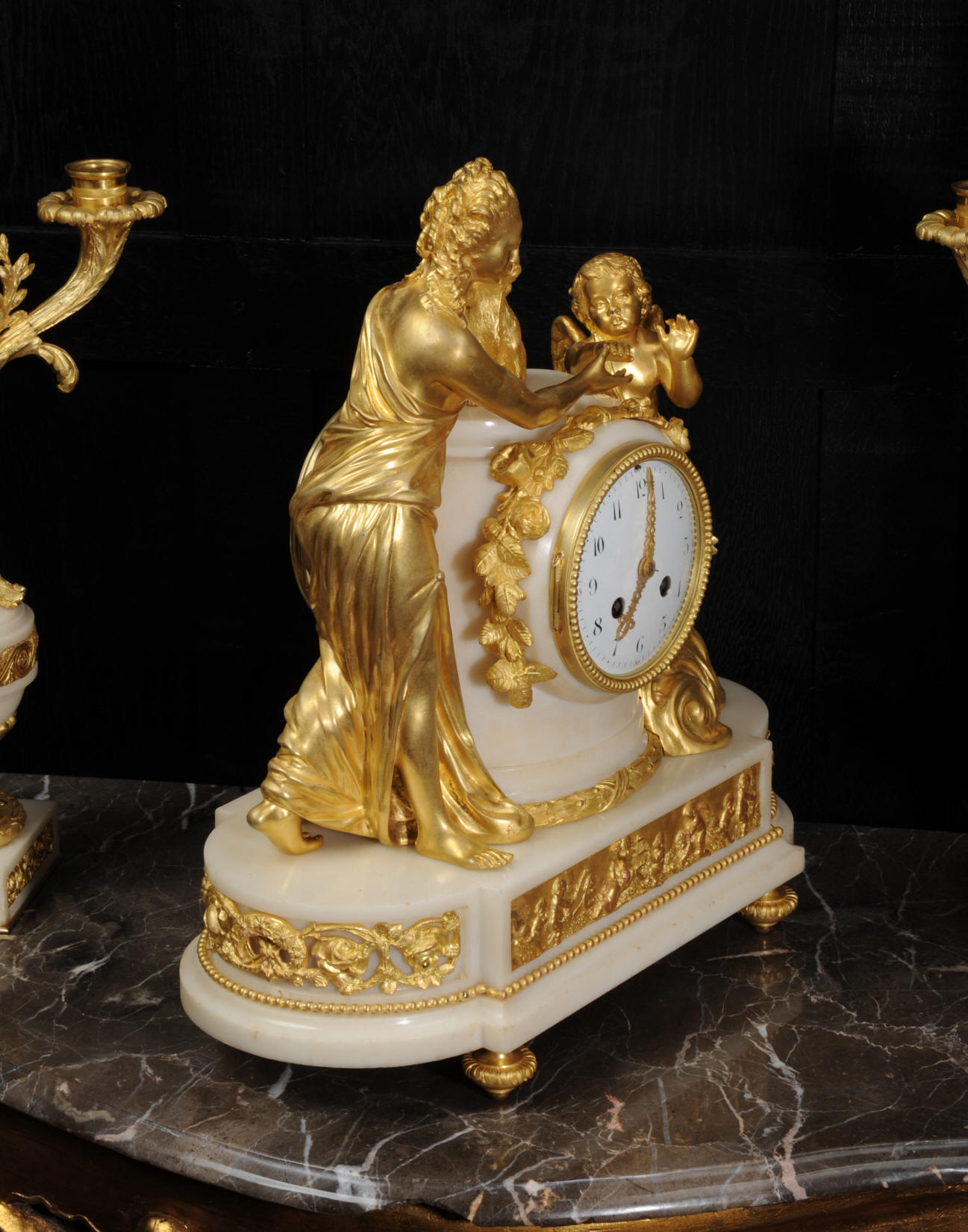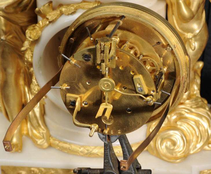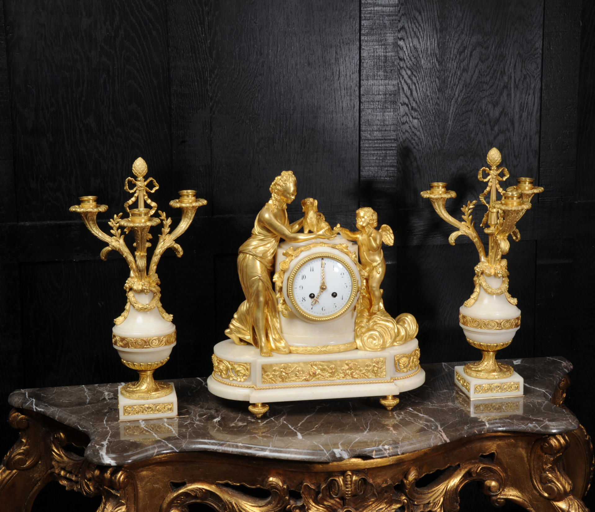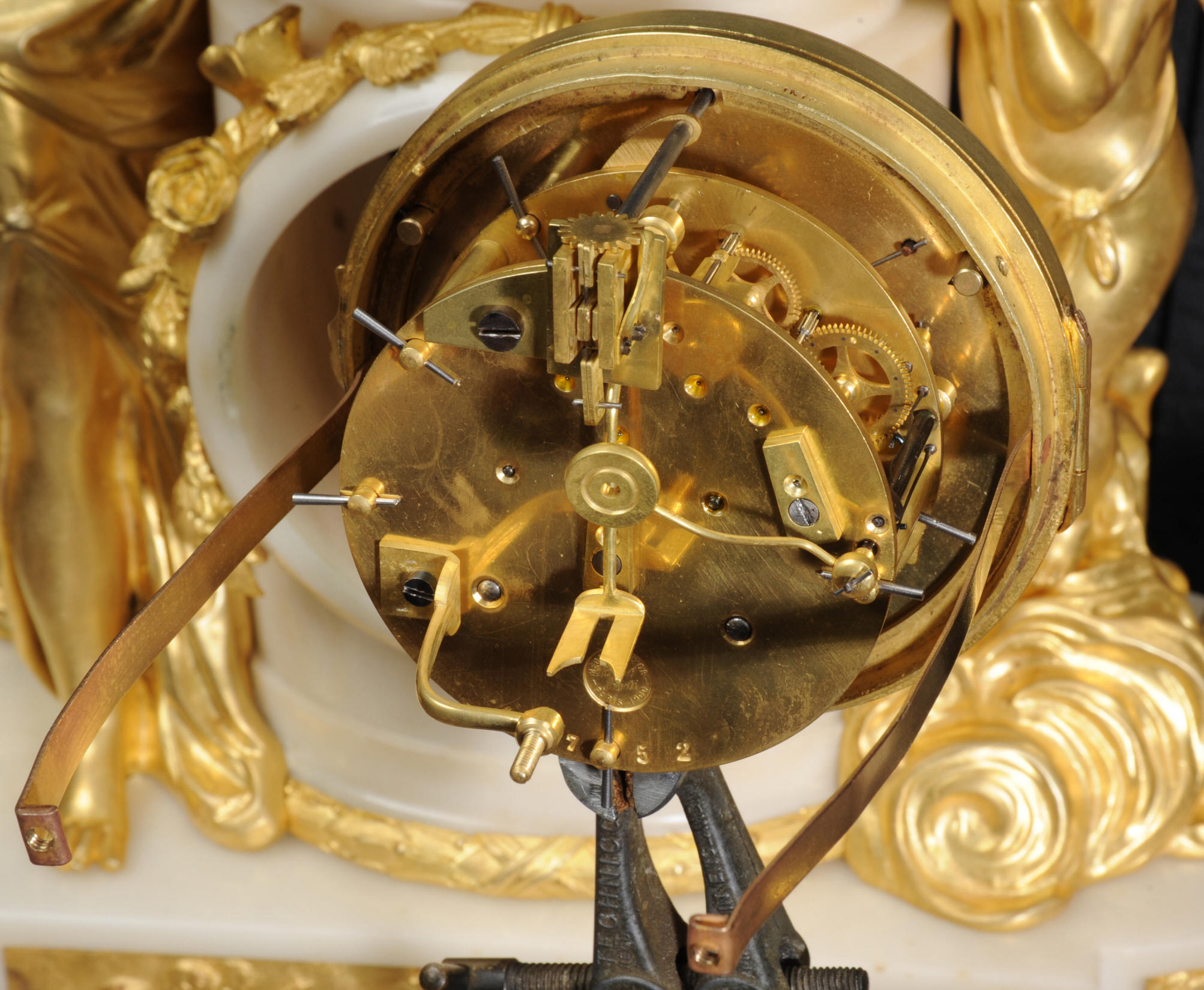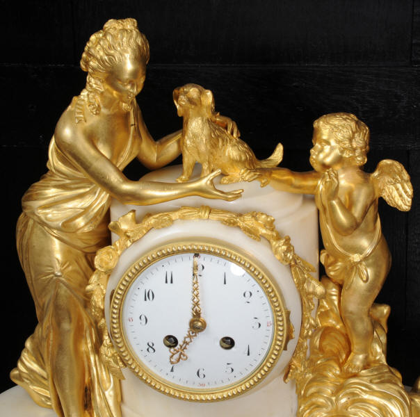 The dial is porcelain enamel on copper with beautifully cut gilt hands. The rear door is glazed to allow the movement to be seen. The French movement is by the famous maker Samuel Marti and is the company's usual high quality. It is in excellent clean and running condition having been fully overhauled by our clockmaker. Pendulum is original. It runs for 8 days and strikes the hours and halves on a bell. Click the video clip below to hear the bell and watch the clock running! A Louis XVI period clock of similar design can be seen in 'Les plus belles pendules francaises' by Giacomo and Aurelie Wannenes. Condition of the case is excellent, the original gilding is beautifully clean and some slight marks, discolouration and wear on the high spots. The dial is also in excellent condition just some small chips next to the right hand winding hole. Marble is in good condition colour has aged to a mellow cream, there are some slight nibbles to the edges and occasional marks.