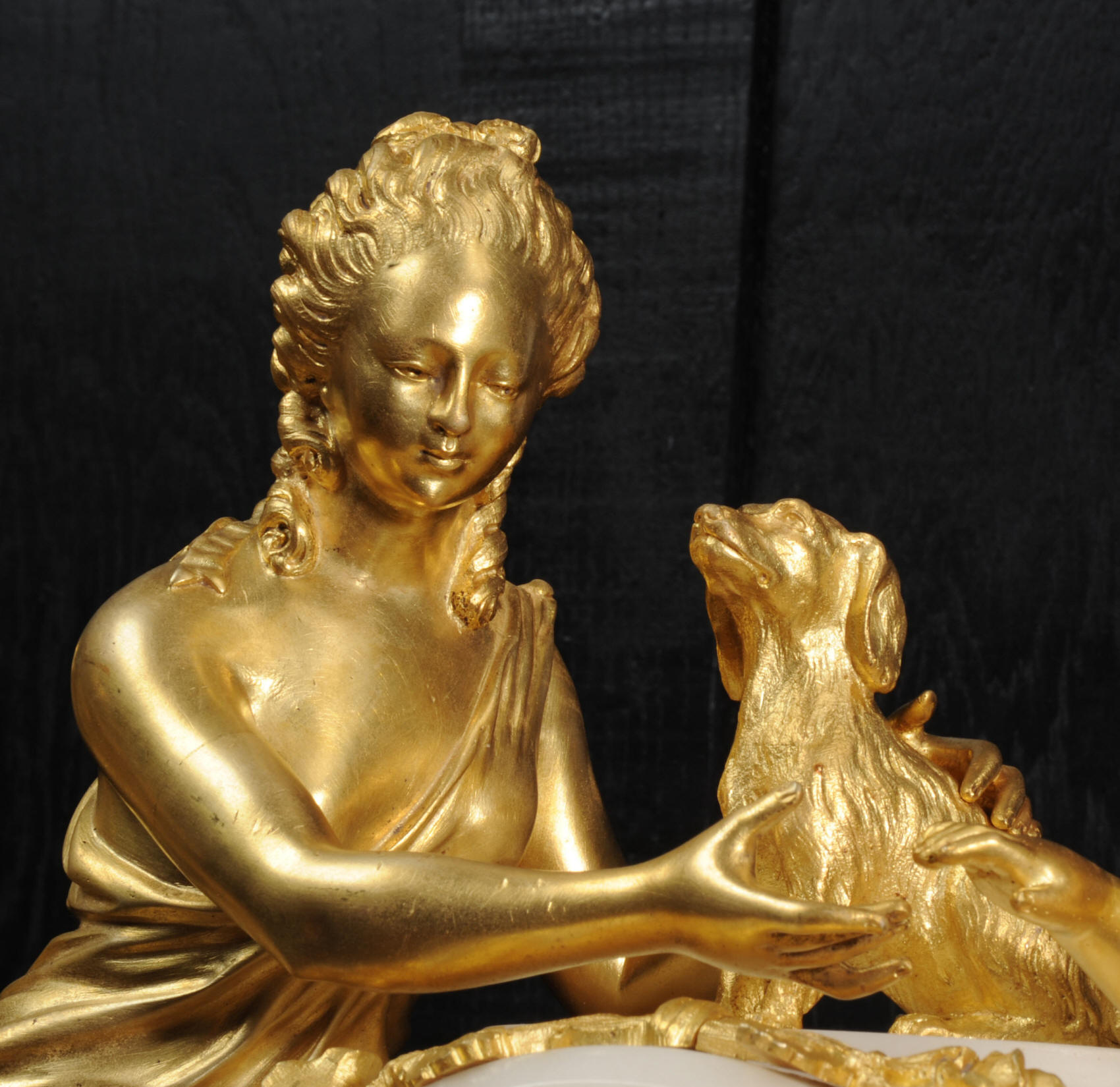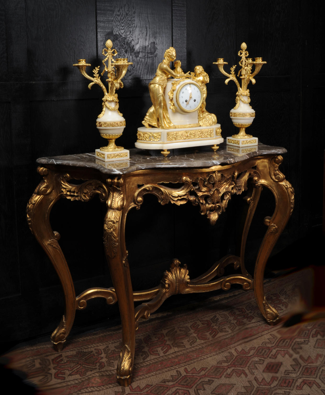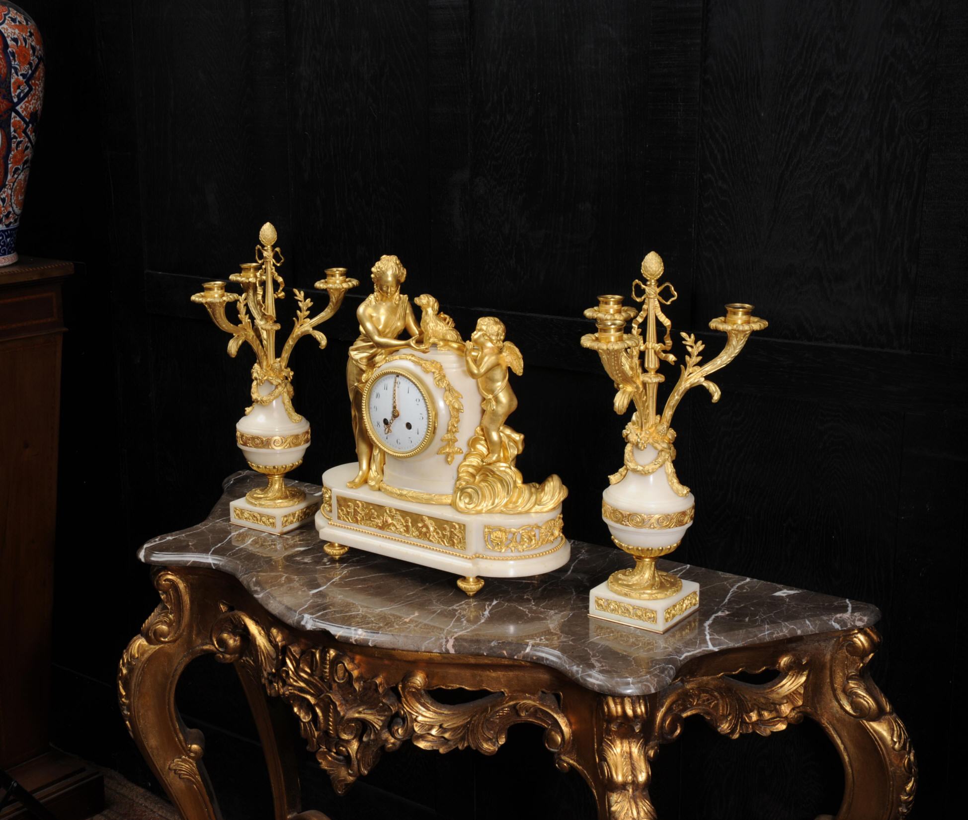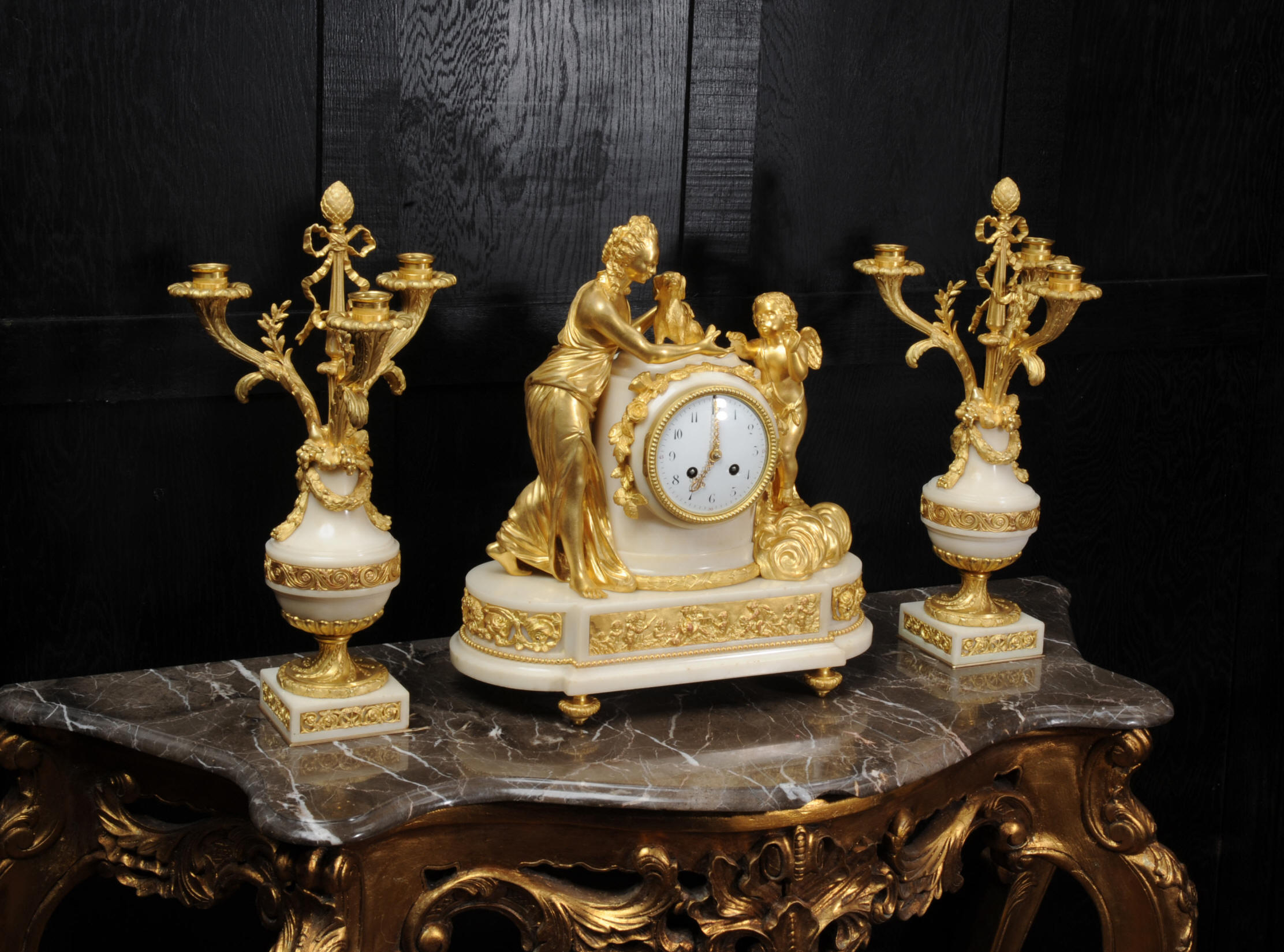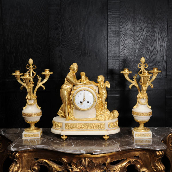 The dial is porcelain enamel on copper with beautifully cut gilt hands. The rear door is glazed to allow the movement to be seen. The French movement is by the famous maker Samuel Marti and is the company's usual high quality. It is in excellent clean and running condition having been fully overhauled by our clockmaker. Pendulum is original. It runs for 8 days and strikes the hours and halves on a bell. Click the video clip below to hear the bell and watch the clock running! A Louis XVI period clock of similar design can be seen in 'Les plus belles pendules francaises' by Giacomo and Aurelie Wannenes. Condition of the case is excellent, the original gilding is beautifully clean and some slight marks, discolouration and wear on the high spots. The dial is also in excellent condition just some small chips next to the right hand winding hole. Marble is in good condition colour has aged to a mellow cream, there are some slight nibbles to the edges and occasional marks.