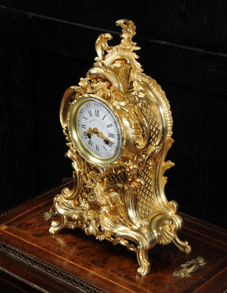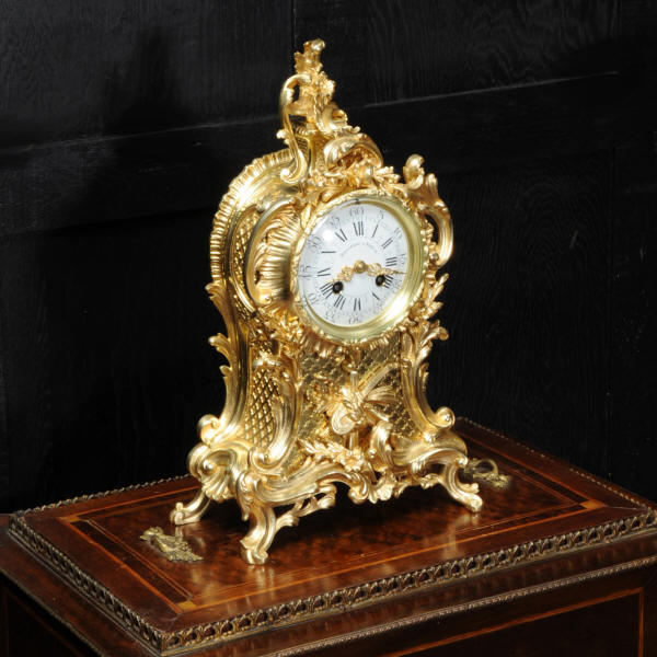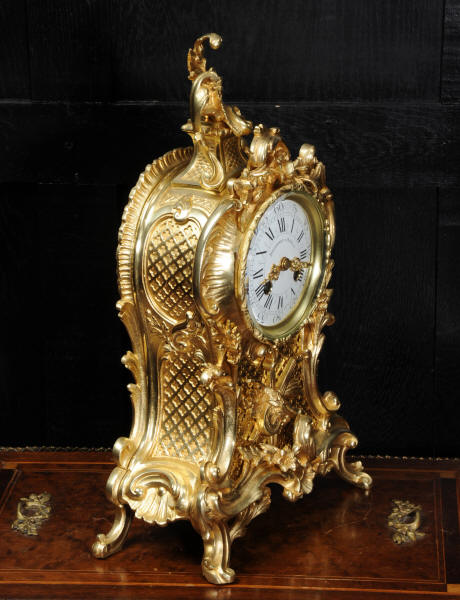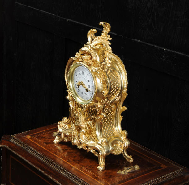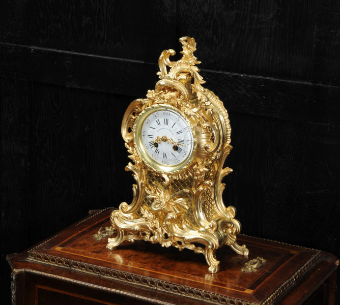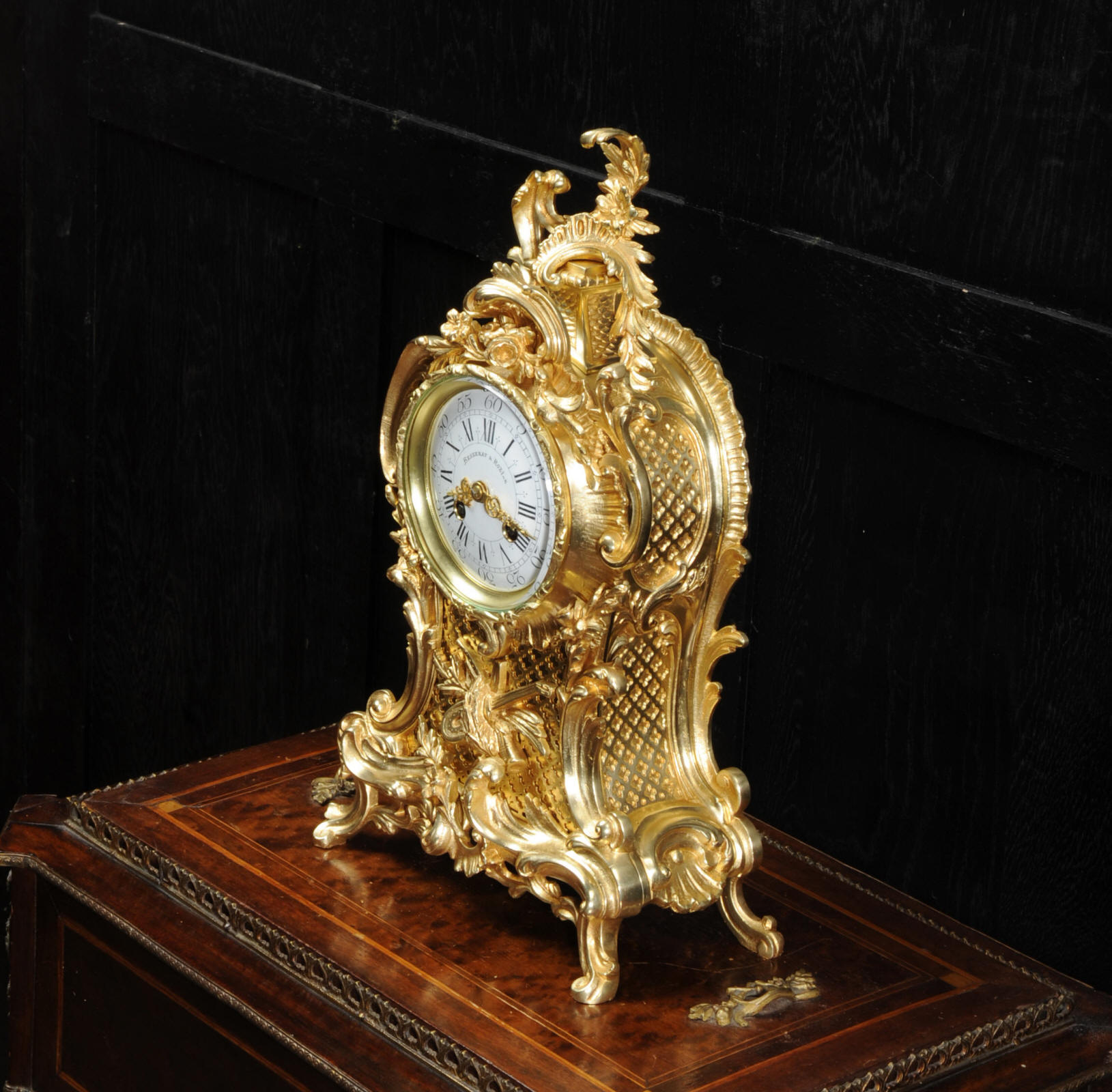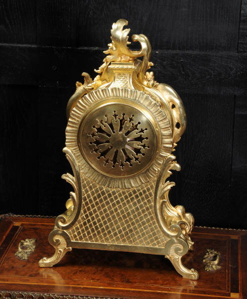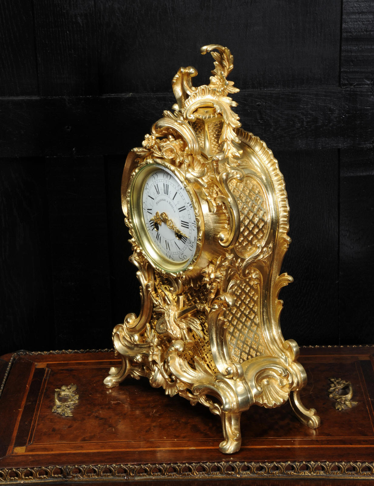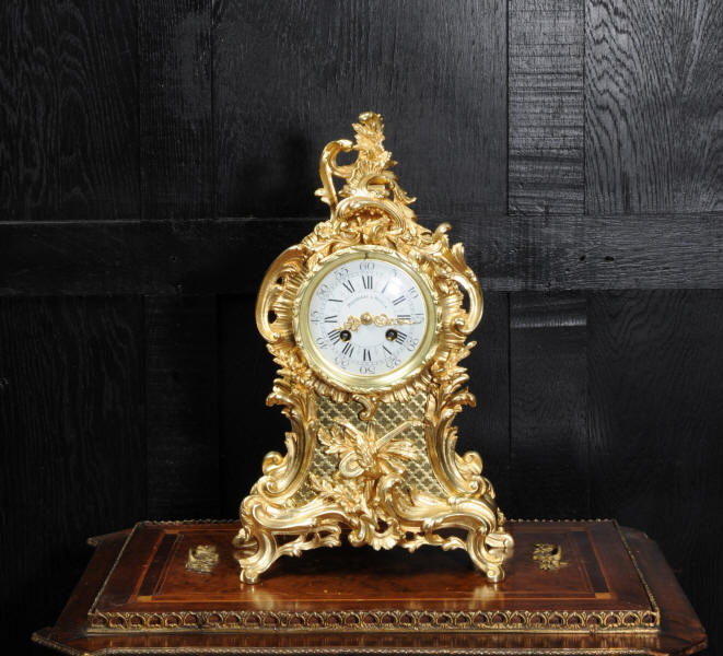 The dial is porcelain enamel on copper with separate minute ring. It is signed for the retailer Bessenay & Rozier. It is complete with it's original finely fretted hands and Rococo bezel with convex glass. The French movement is by Vincenti and is of high quality. It is in excellent clean and running condition having been fully overhauled by our clockmaker. Pendulum is original. It runs for 8 days and strikes the hours and halves on a bell. Click the video clip below to hear the bell and watch the clock running. Condition of the case is excellent, the original gilding is beautifully clean and bright with hardly any wear or discolouration and there are no losses. The dial is also in excellent condition with no damage.
