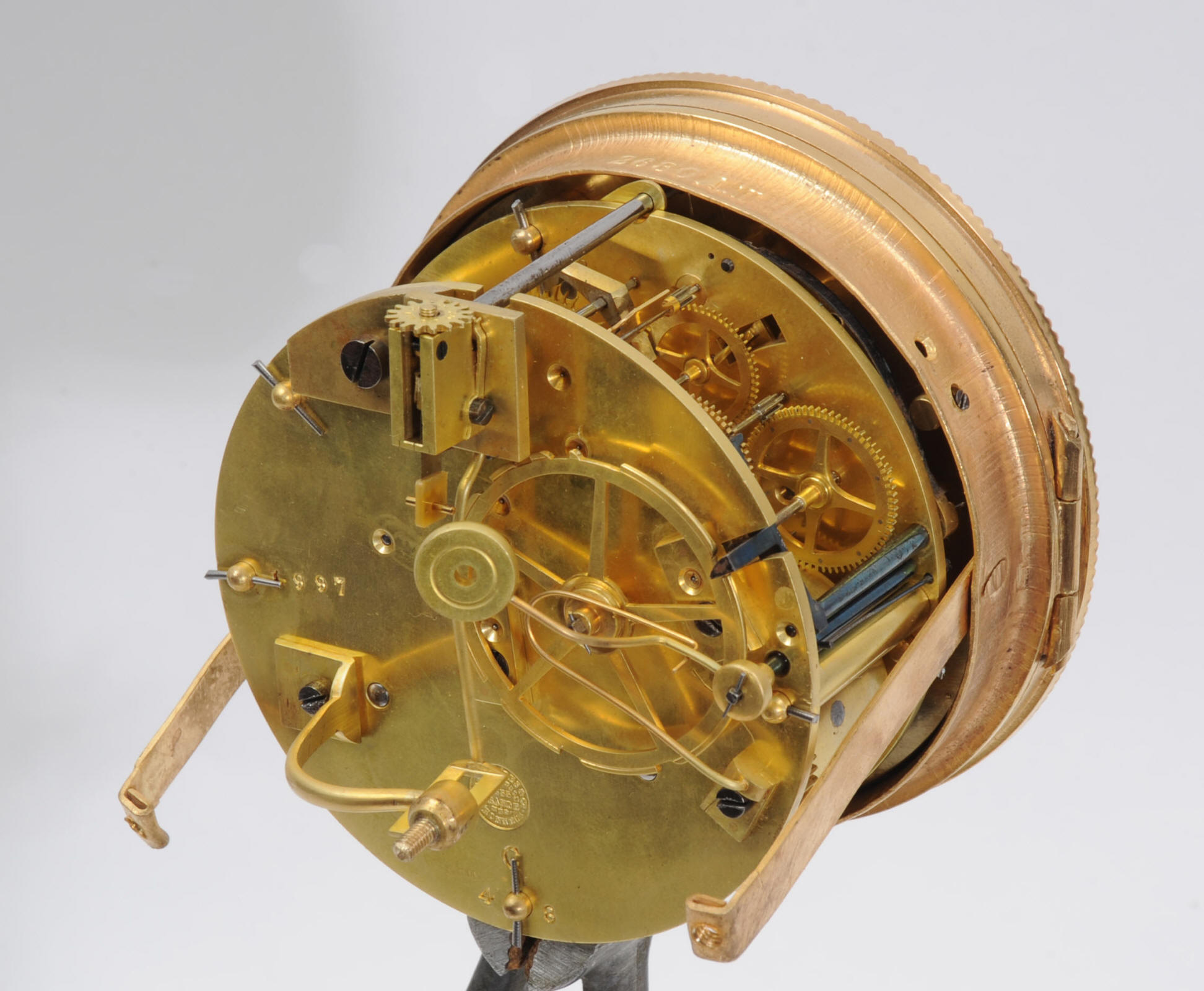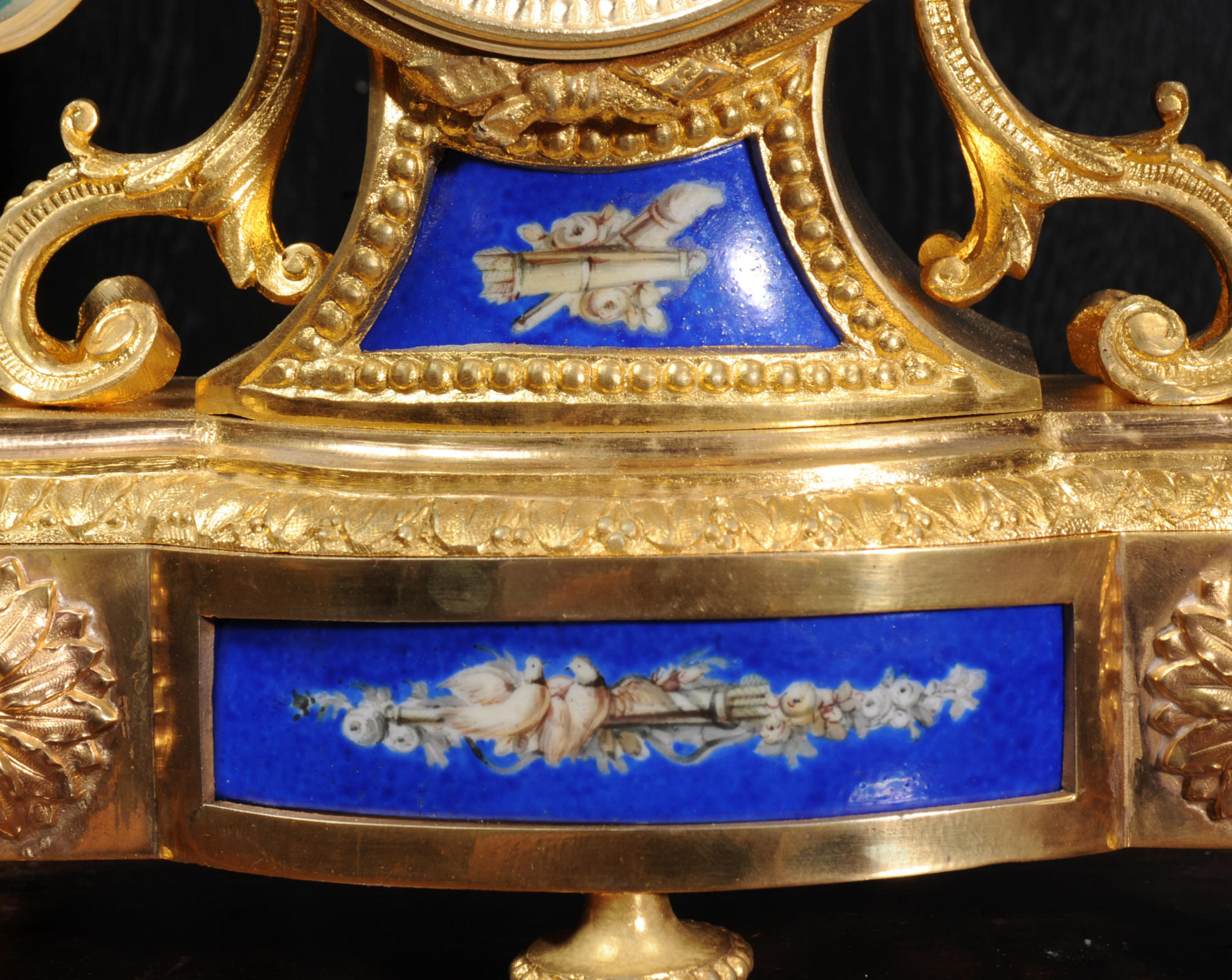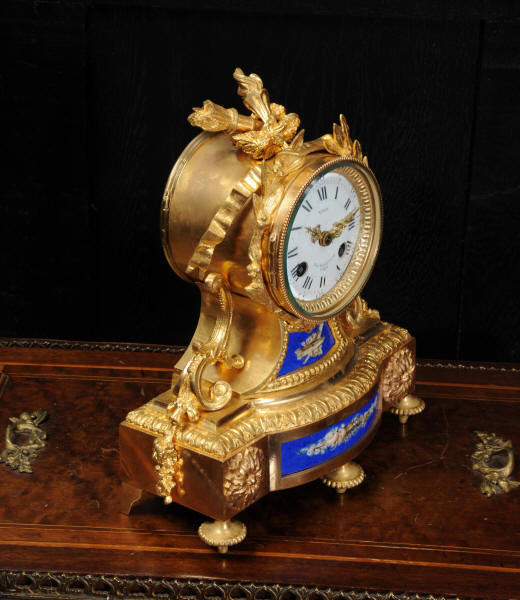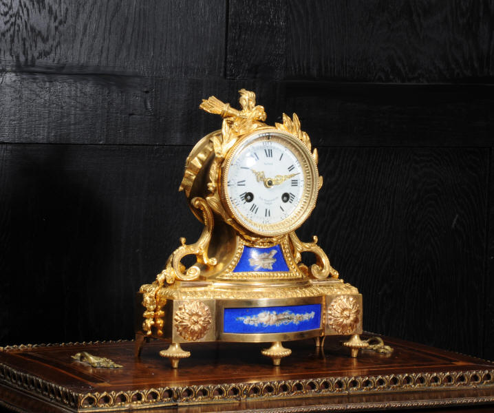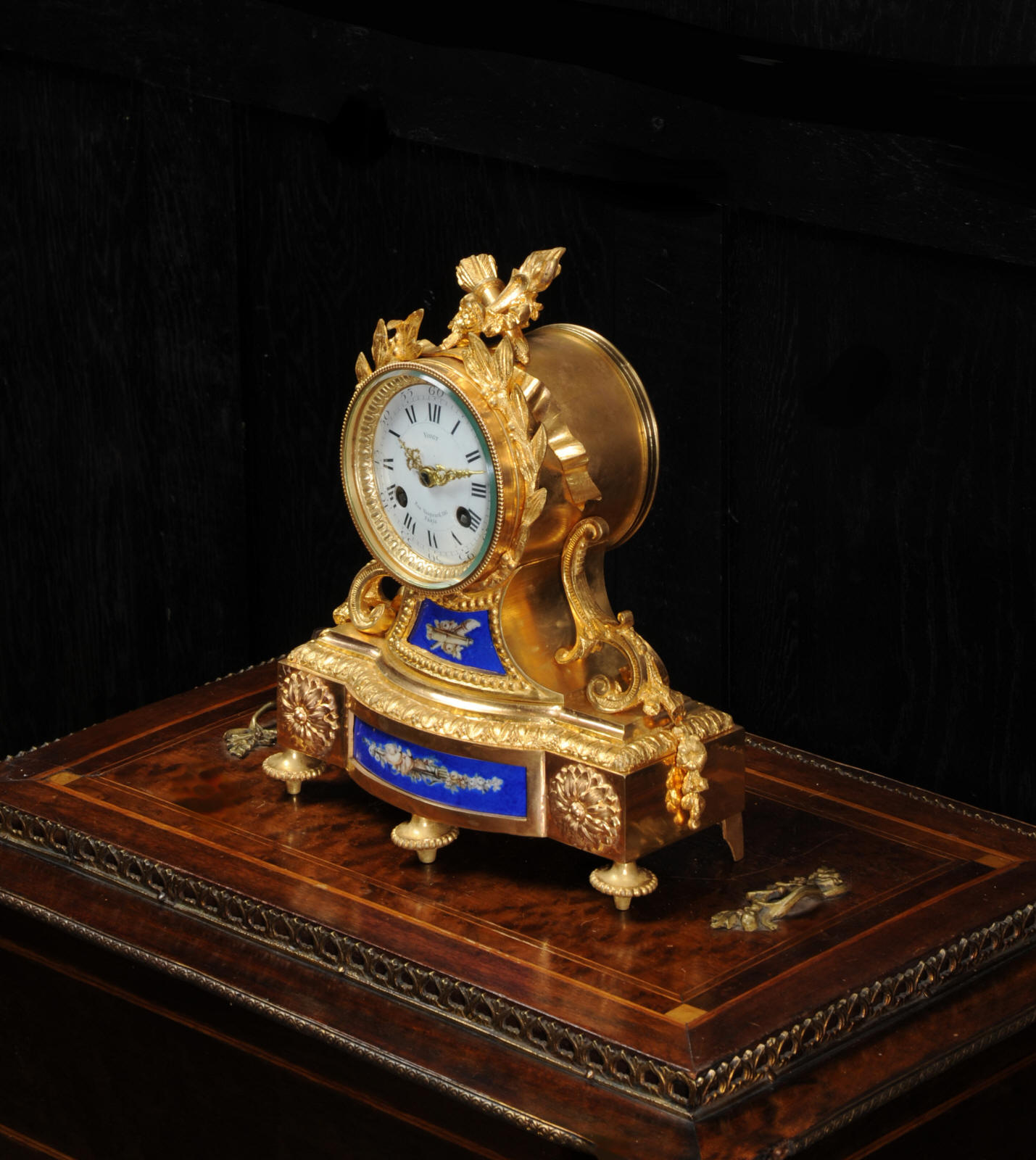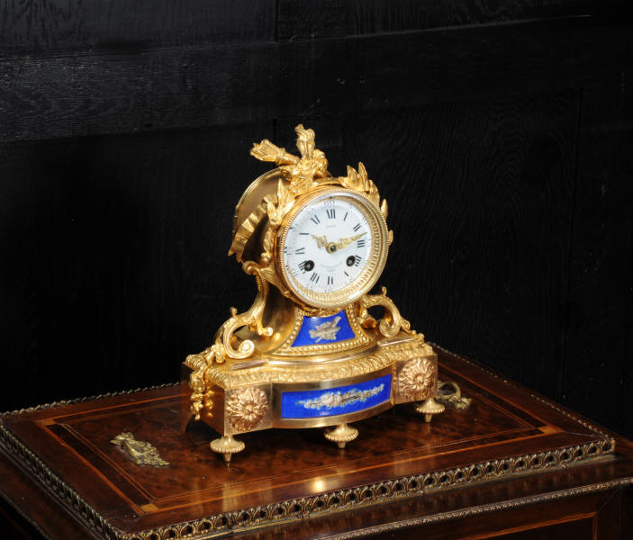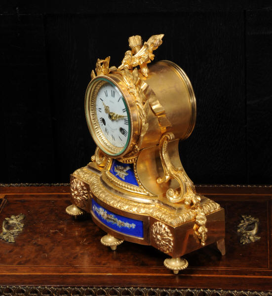 The dial porcelain enamel on copper with finely fretted gilt hands. It is signed for the Paris retailer Voigt. The rear door is also glazed to allow the movement to be seen. The French movement is of high quality and is by Japy Freres. It has the early Japy mark of 1855. It is in excellent clean and running condition having been fully overhauled by our clockmaker. Pendulum is a replacement. It runs for 8 days and strikes the hours and halves on a bell. Click the video clip below to hear the bell and watch the clock running! Condition of the case is excellent, beautifully clean and bright with slight wear and discolouration. The dial is also in excellent condition just small nibbles to the next to the winding holes.