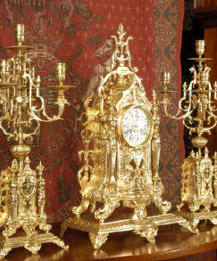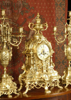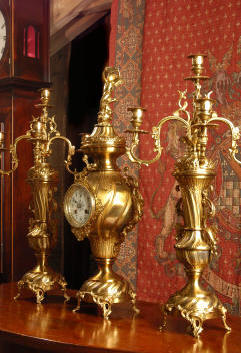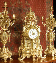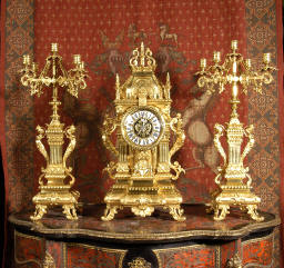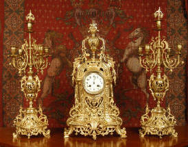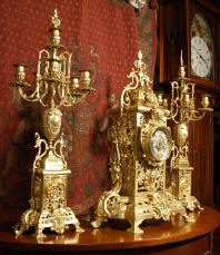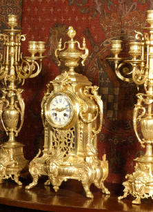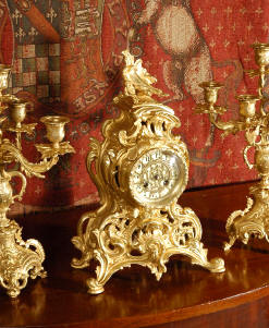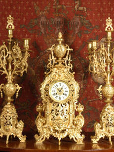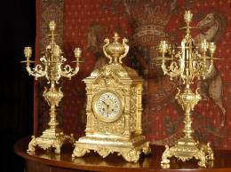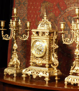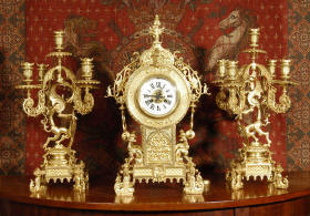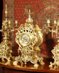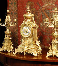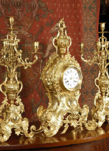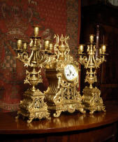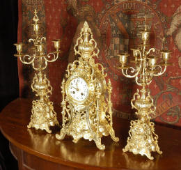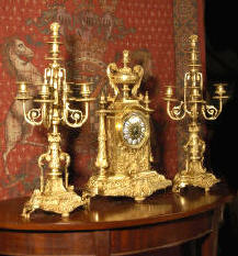 candelabra clock set. It is beautifully modelled in gilt brass which has its