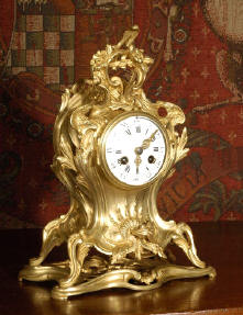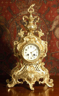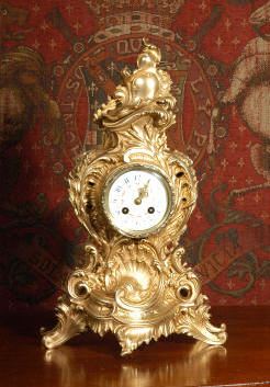 ~ French - Circa 1870 ~ ~~ Excellent condition ~~ A small and delicate French Rococo clock of typical Rococo design, with C scrolls, and swirling foliage. The modelling of the case is beautiful and is of the highest quality with sharp detail, the finish is clean and bright. |