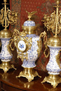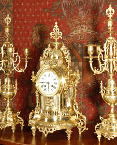 original antique gold finish. The body of the clock and the candelabra are