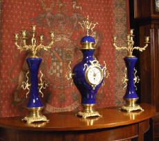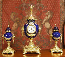 large and impressive clock set of very unusual shape and superb quality, fire
