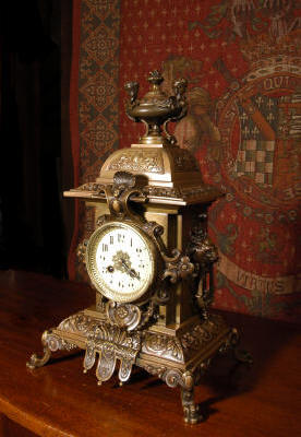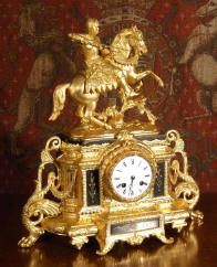 ~ French - Circa 1880 ~ ~~ Excellent original condition ~~ Stunningly decorative clock in excellent original condition. It features a Knight mounted on his war horse amidst oak leaf and acorn foliage. Knight and war horse are beautifully modelled with plenty of movement and life......Click here for full details! |