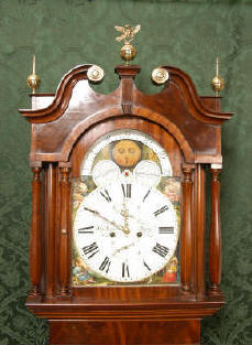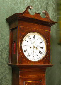 Circa 1820 ~~ Excellent very original Condition ~~ A beautiful Scottish mahogany longcase clock of well figured mahogany. The elegant mahogany case is highlighted with stringing and cross banding and has a good rich colour. It is unusual in being a wedding clock - the round white dial has the names of the bride and groom |